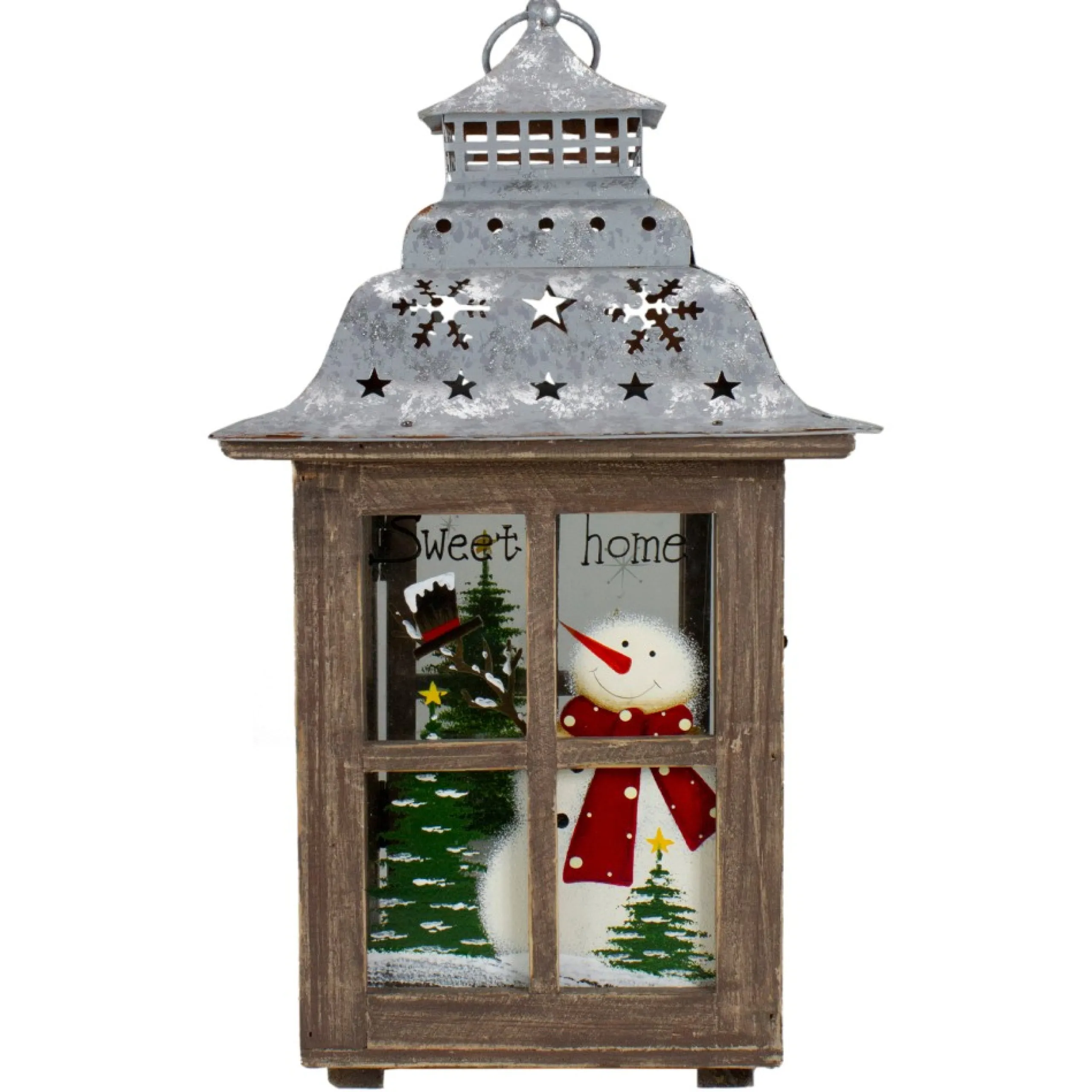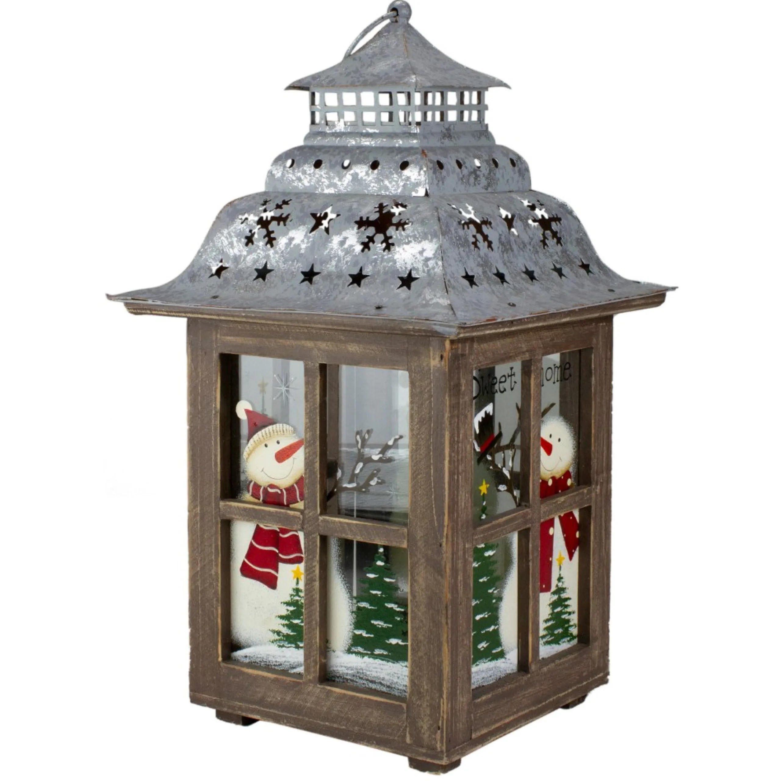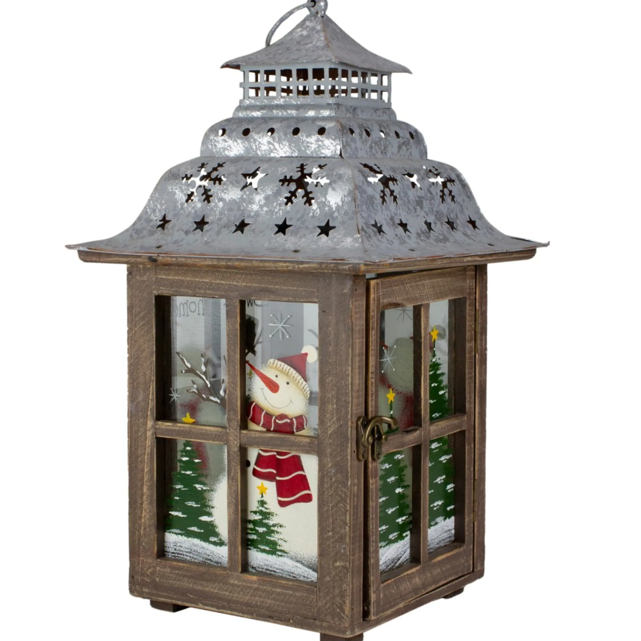 Add This Rustic Holiday Lantern To Your Holiday Decor. The Lantern Features A Brown Wooden Frame And Surrounding Glass Panes Painted With Snow, 3 Pine Trees, And Snowmen, Just The Right Piece To Impress Your Guests. You Can Place The Lantern On Your Mantel, End Table Or Even Given Away As A Gift To That Special Someone On Your List.