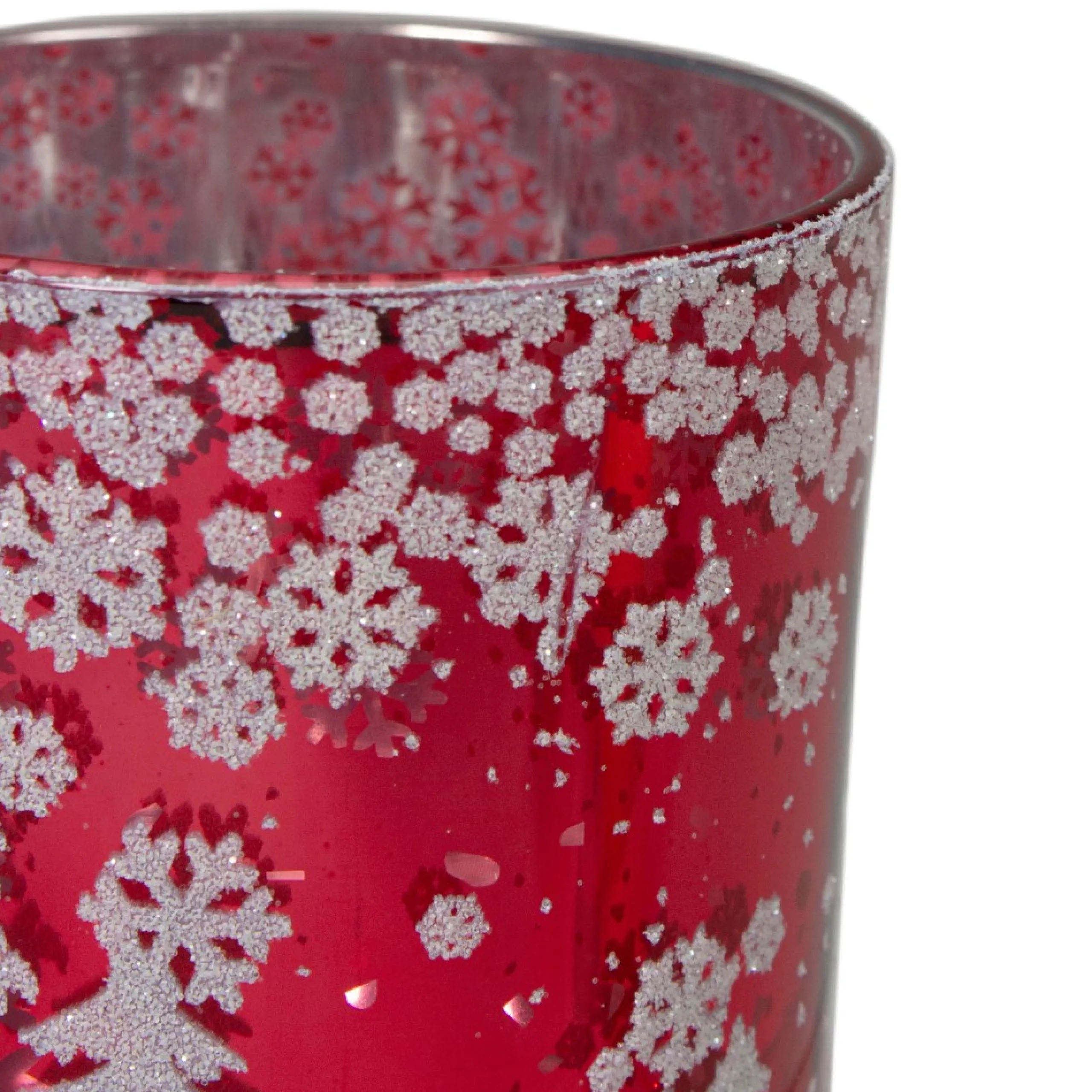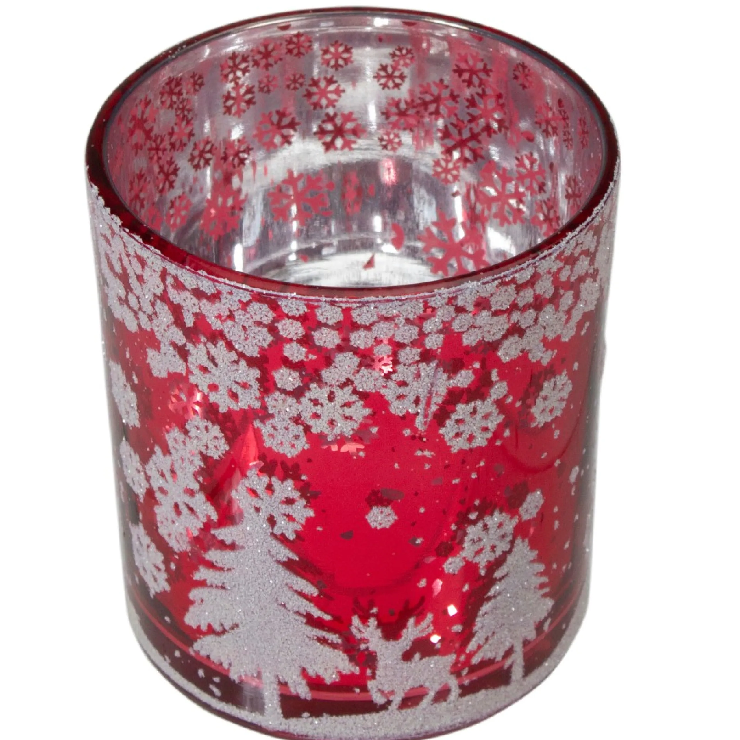 Bring The Beauty Of Winter Into Your Home With This Elegant Red And Silver Flameless Candle Holder. Multiple Types Of Snowflakes Adorn This Holder Falling On A Wintery Forest And A Deer. The Flameless Candle Gives You A Safer Option Than A Traditional Candle And This Holder Is A Beautiful Depiction Of A Cold Winter Day. This Makes A Great Addition To Your Home Or A Gift To Your Friends Or Family!