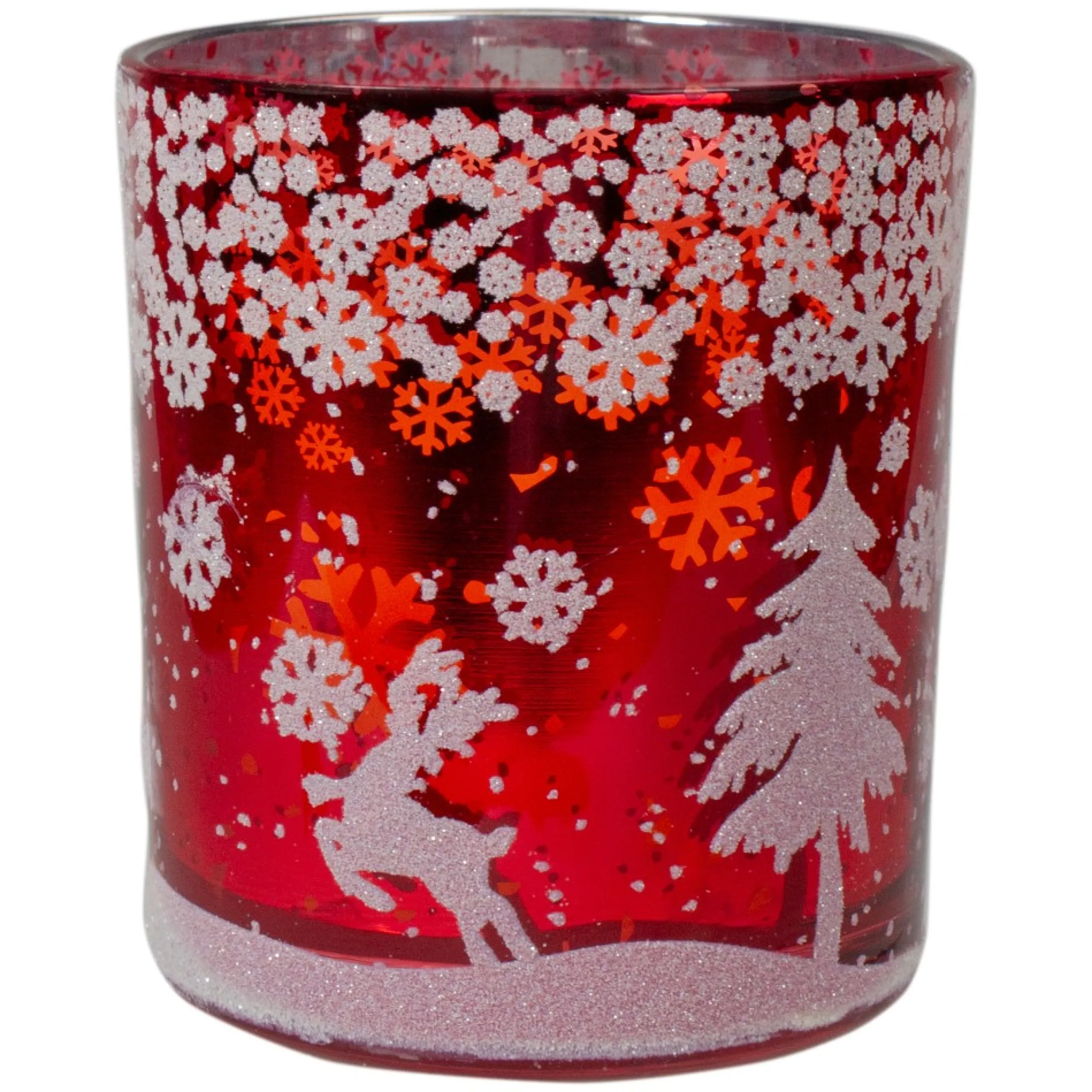 Candles & Holders*Northlight 3″ Red And Shiny Silver Deer In Winter Woods Flameless Glass Candle Holder