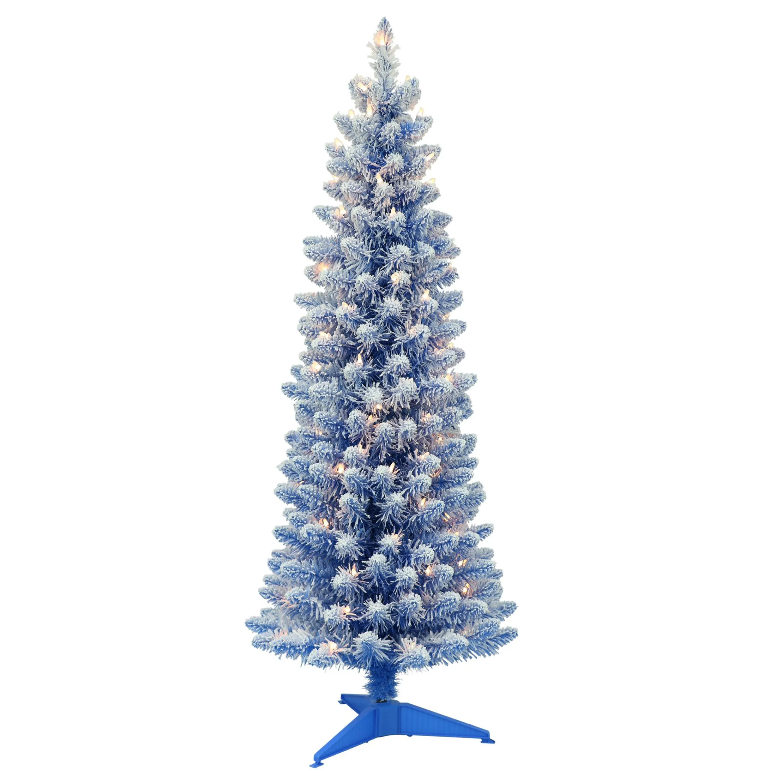 CC Christmas Decor 4 And 4.5 Feet Tall>4.5′ Pre-Lit Pencil Flocked Blue Artificial Christmas Tree, Clear Lights