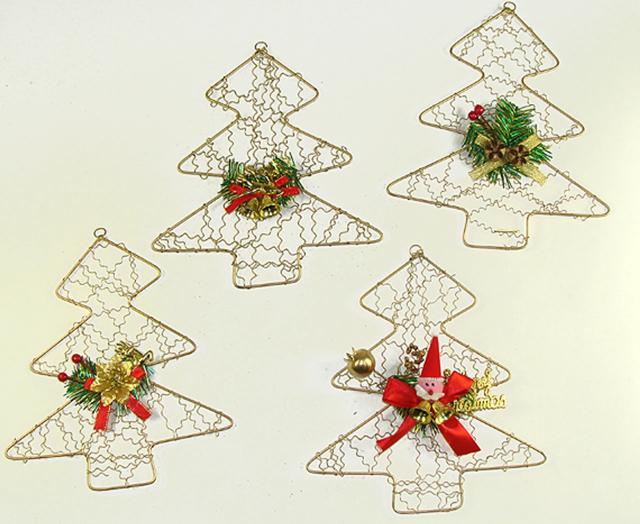 Winter Up Your Home The Proper Way! These Christmas Tree Ornaments Are Gold Wired And Come Accented With Pine Branches, Bells, Poinsettias, And Santas. And With That Round Hooped Top, These Pieces Are The Only Trees That Will Snug Into Any Part Of Your Winter Wonderland.