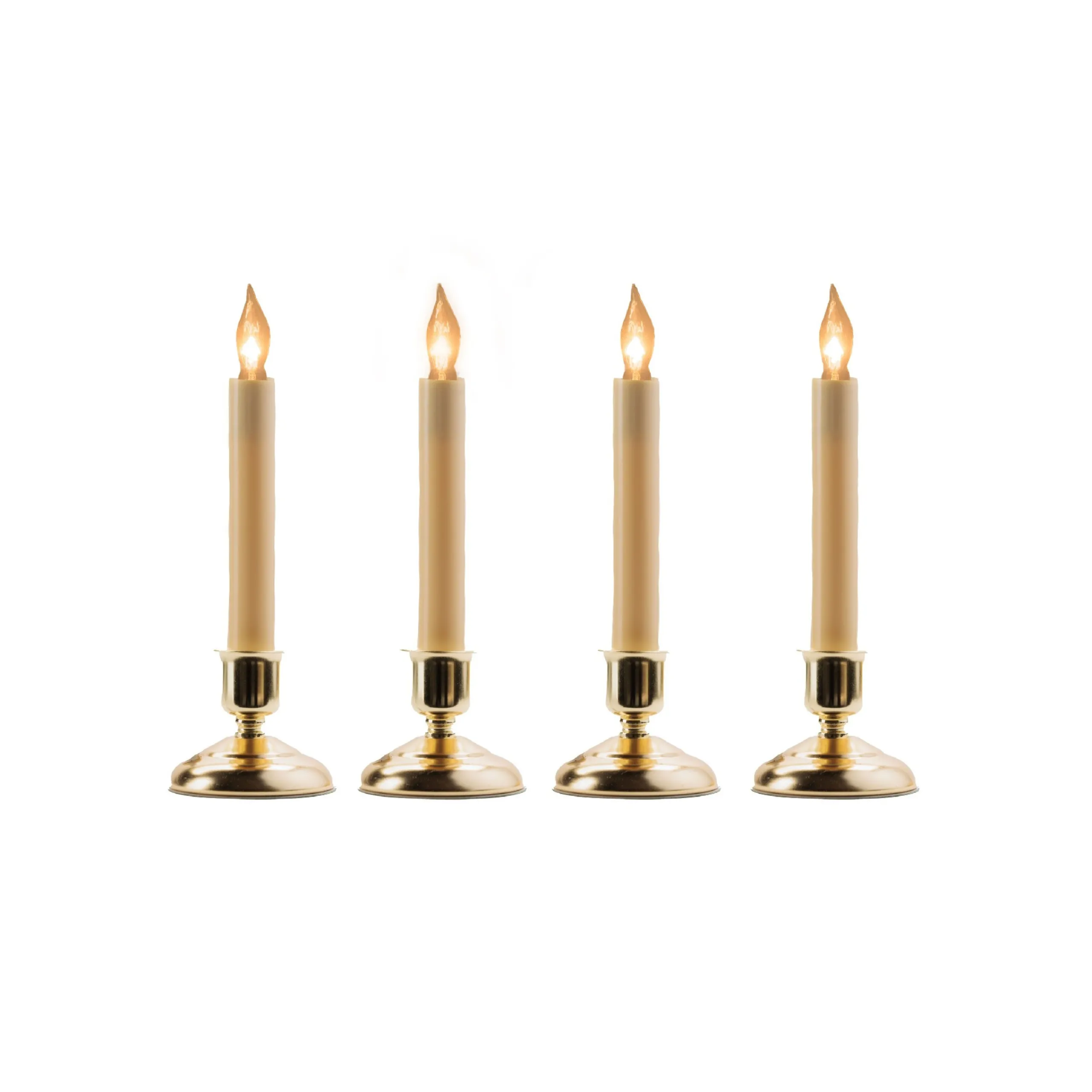 CC Christmas Decor Set Of 4 Christmas Window Candle Lamps With Gold Holder 9″