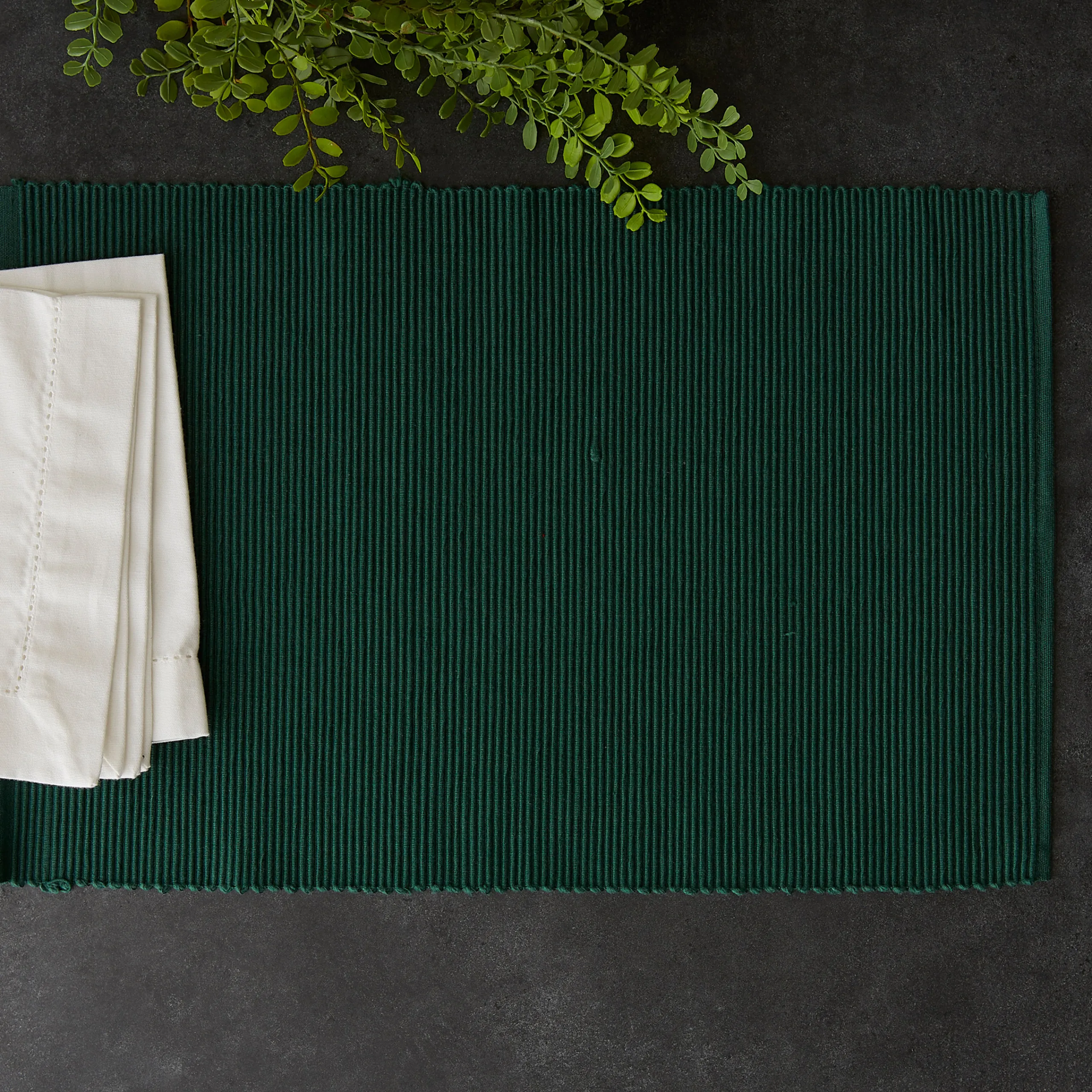 CC Home Furnishings Set Of 6 Dark Green Stripe Pattern Rectangular Placemats 19″