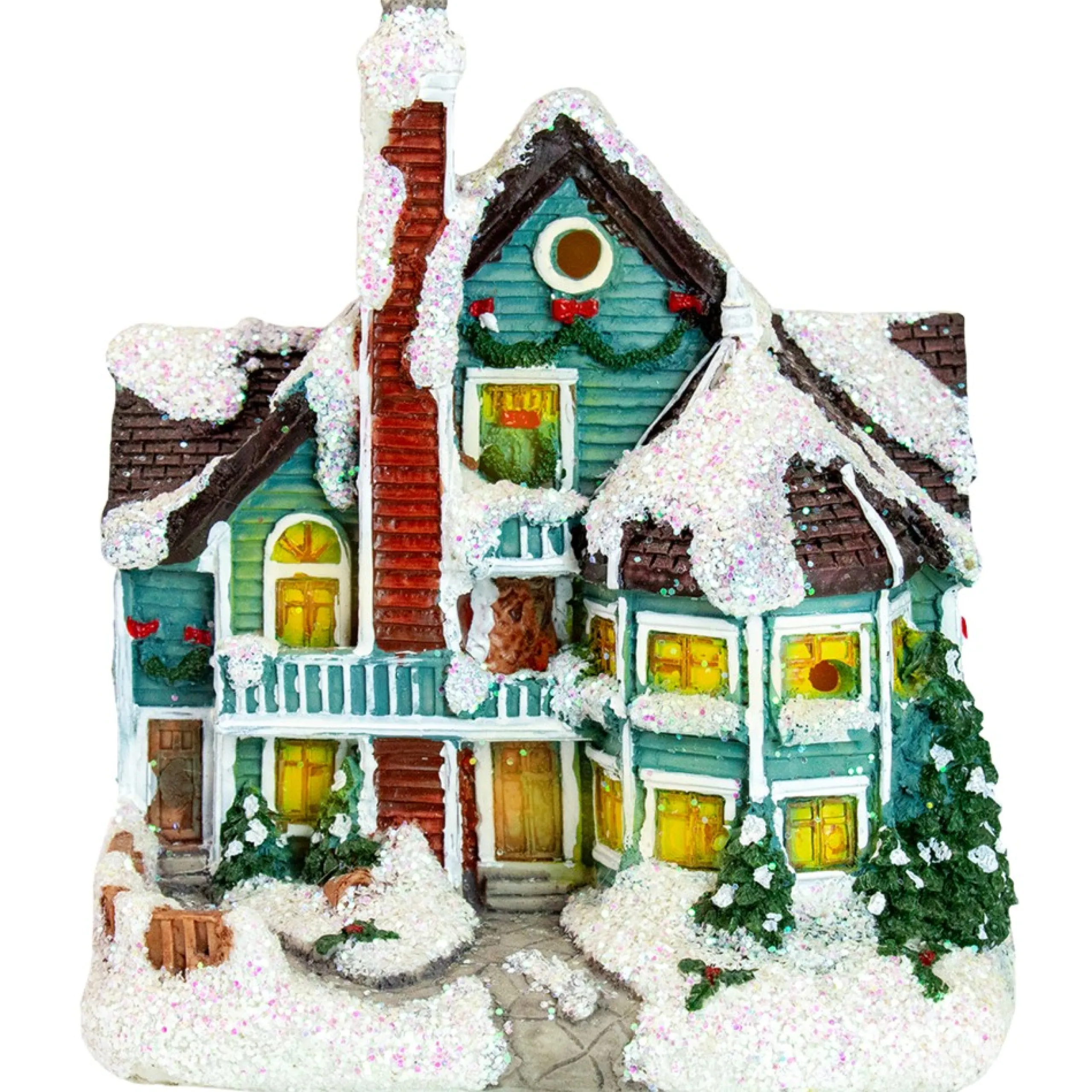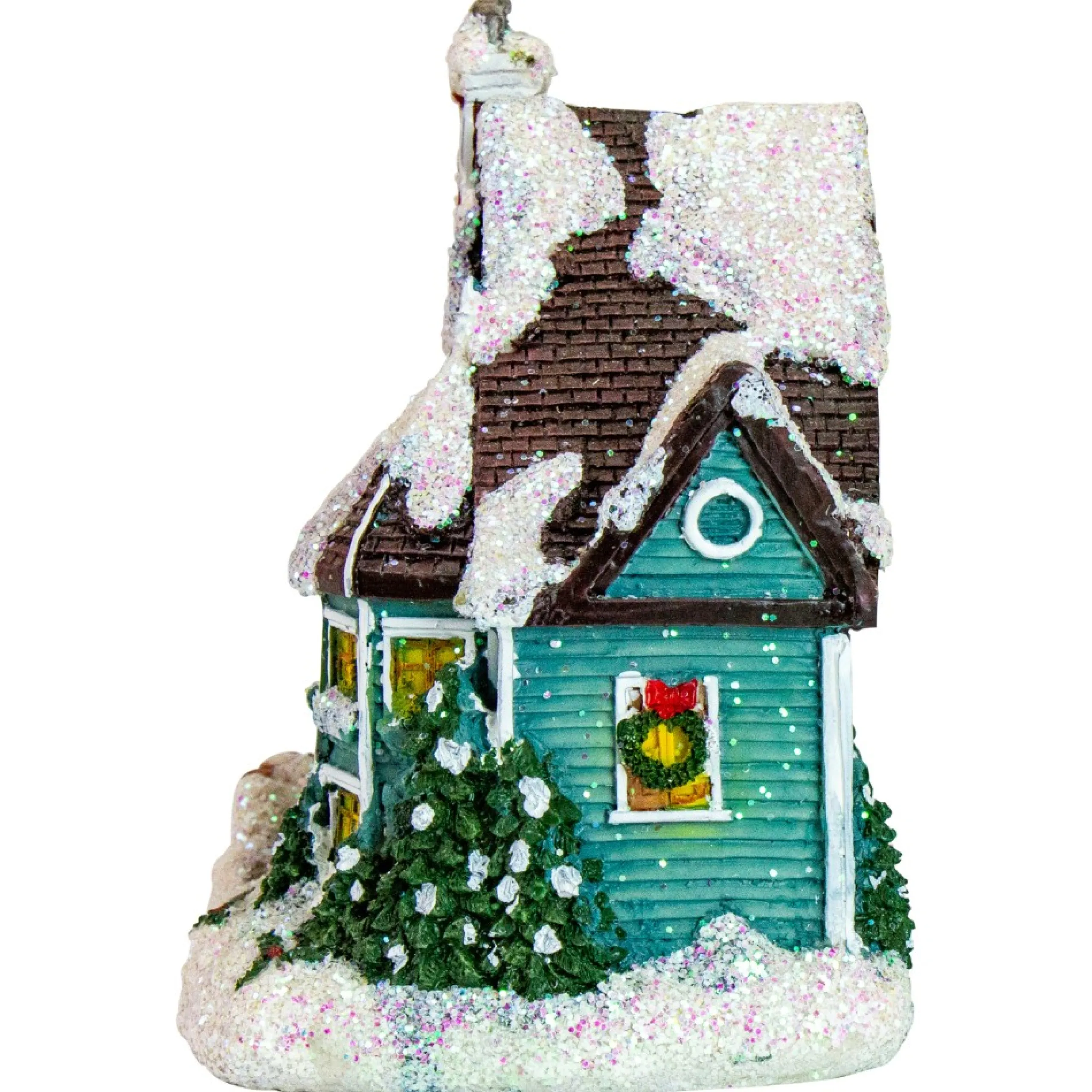 Christmas Villages*Northlight 5.5″ Green Led Lighted Snowy House Christmas Village Decoration