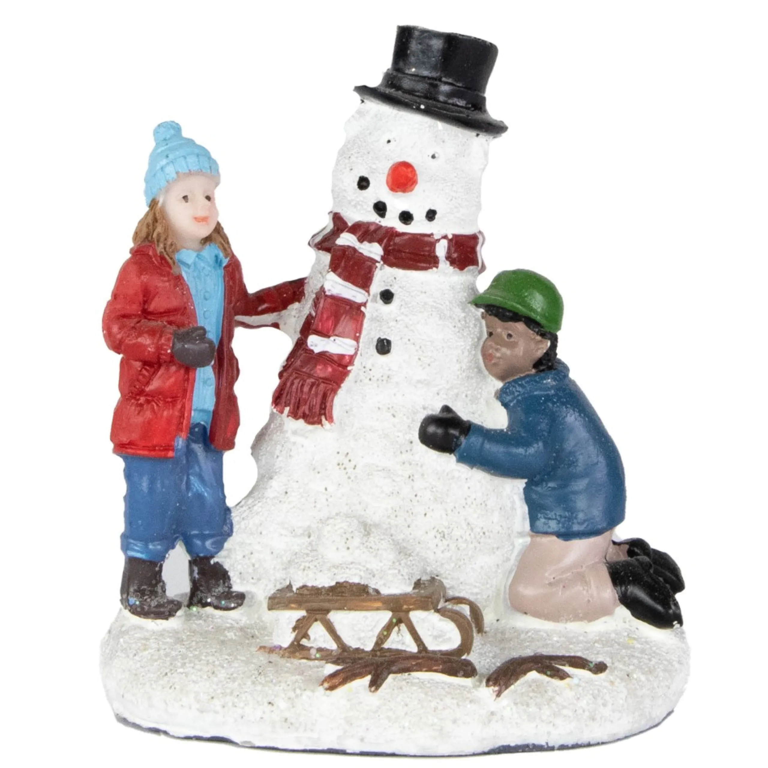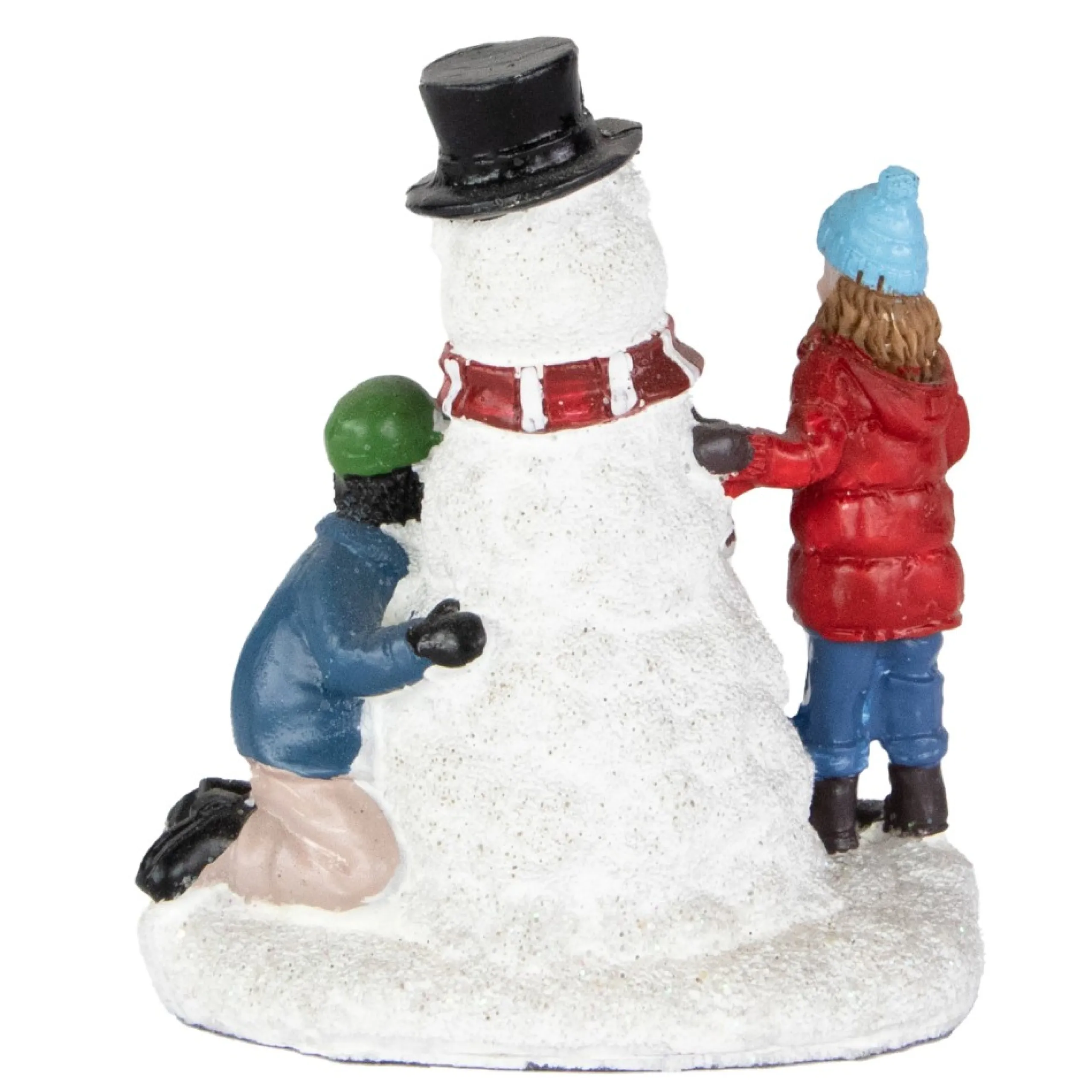 This Sweet Snowman Scene Makes The Perfect Addition To Any Christmas Village. Depicts 2 Children Building A Snowman. One Single Piece Makes Placement A Breeze.