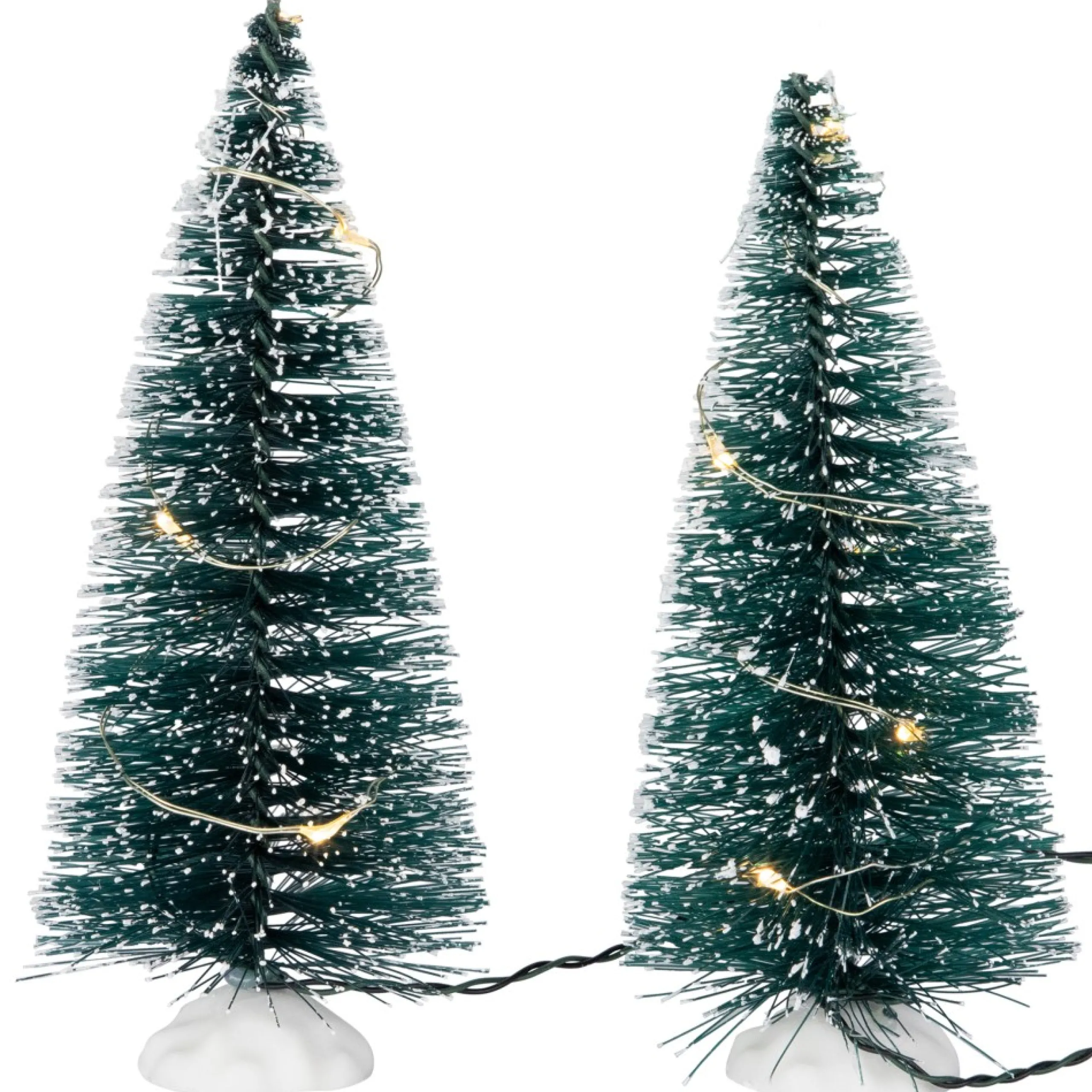 Christmas Villages*Northlight Set Of 2 Led Lighted Frosted Mini Bottle Brush Pine Christmas Village Trees – 6″