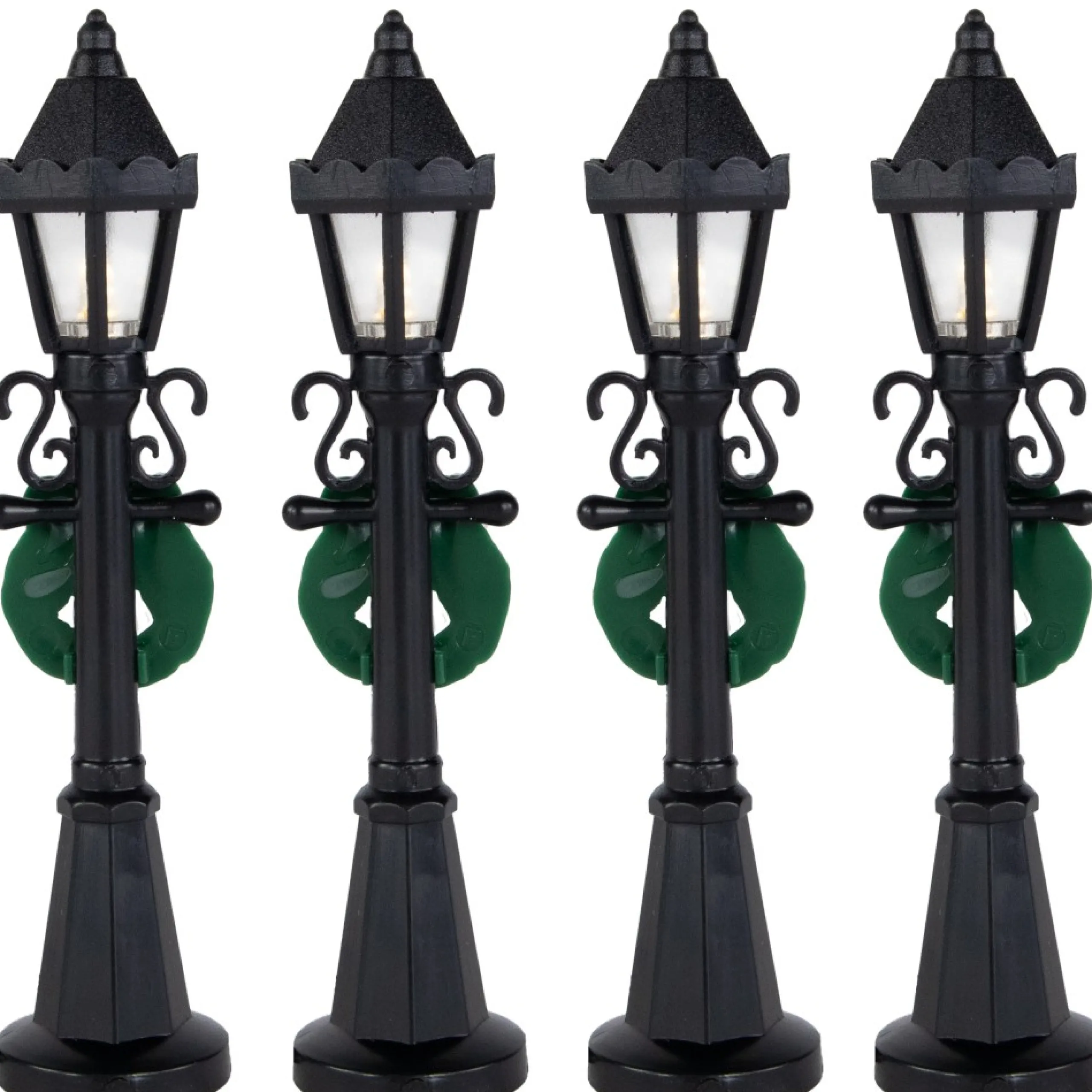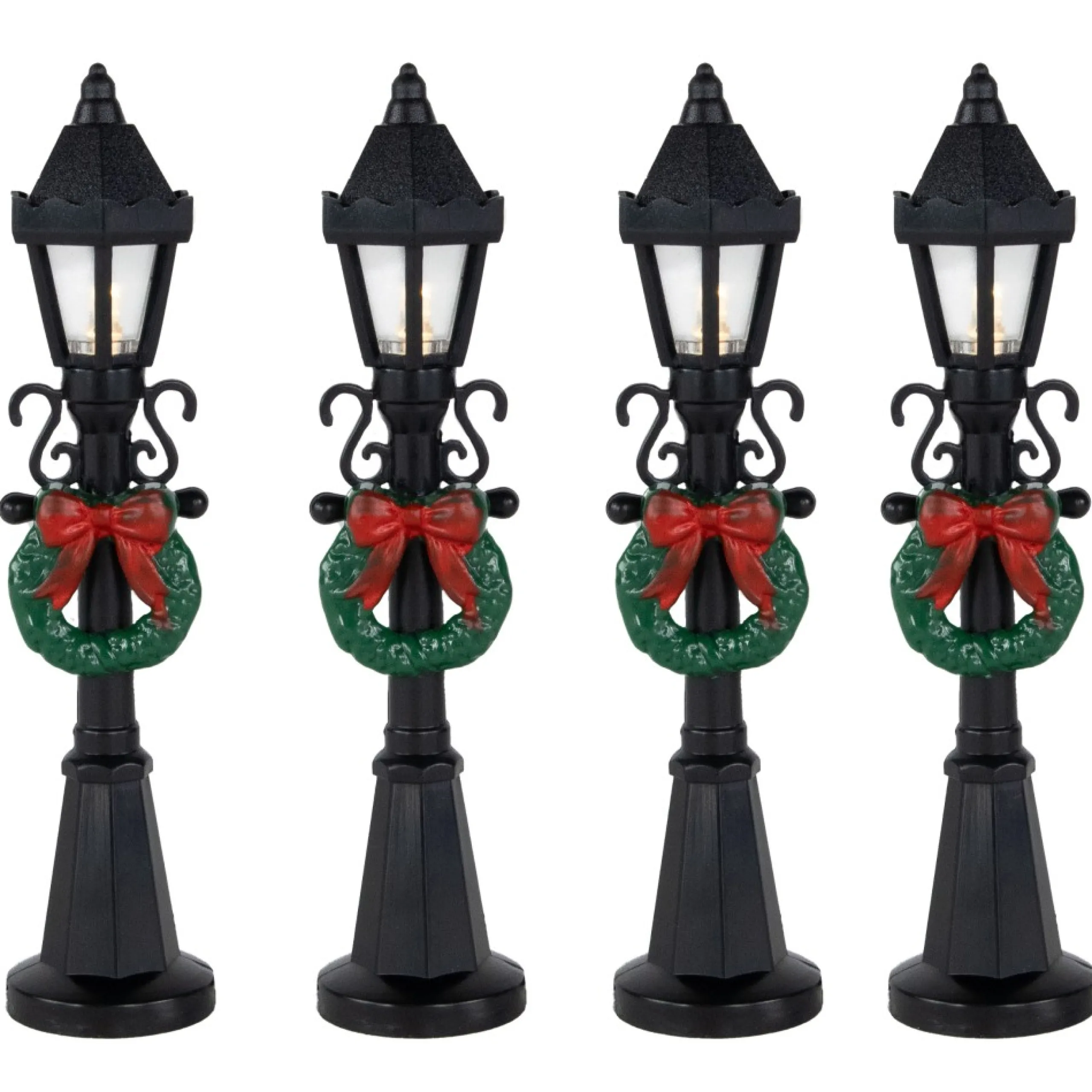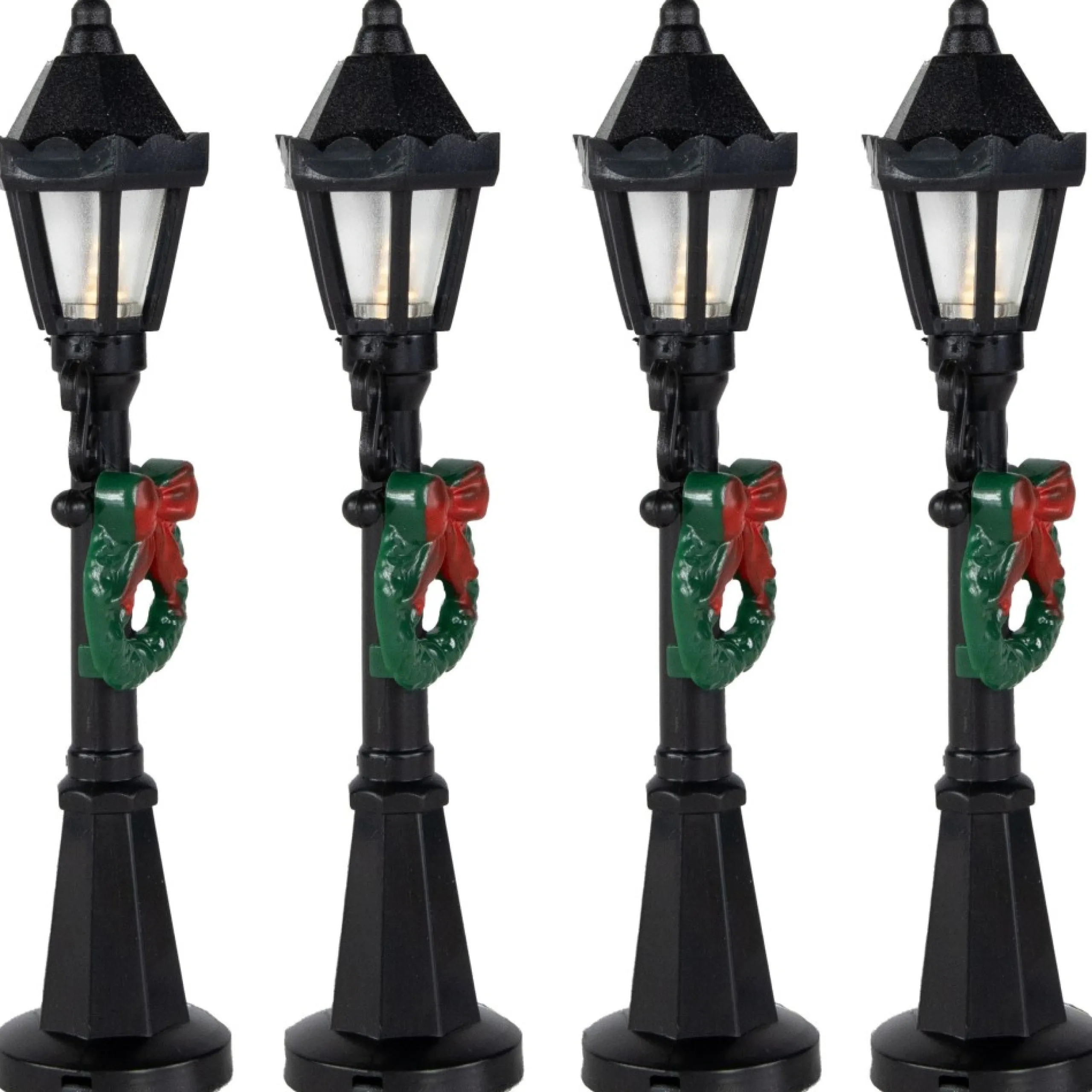 These Festive, Battery Operated Street Lamps Are The Perfect Addition To Any Christmas Village Scene. Each One Is Adorned With A Christmas Wreath. The Warm White Lights, Add The Perfect Amount Of Glow. Small In Size, These Pieces Are Ideal For Nativity And Village Scenes.