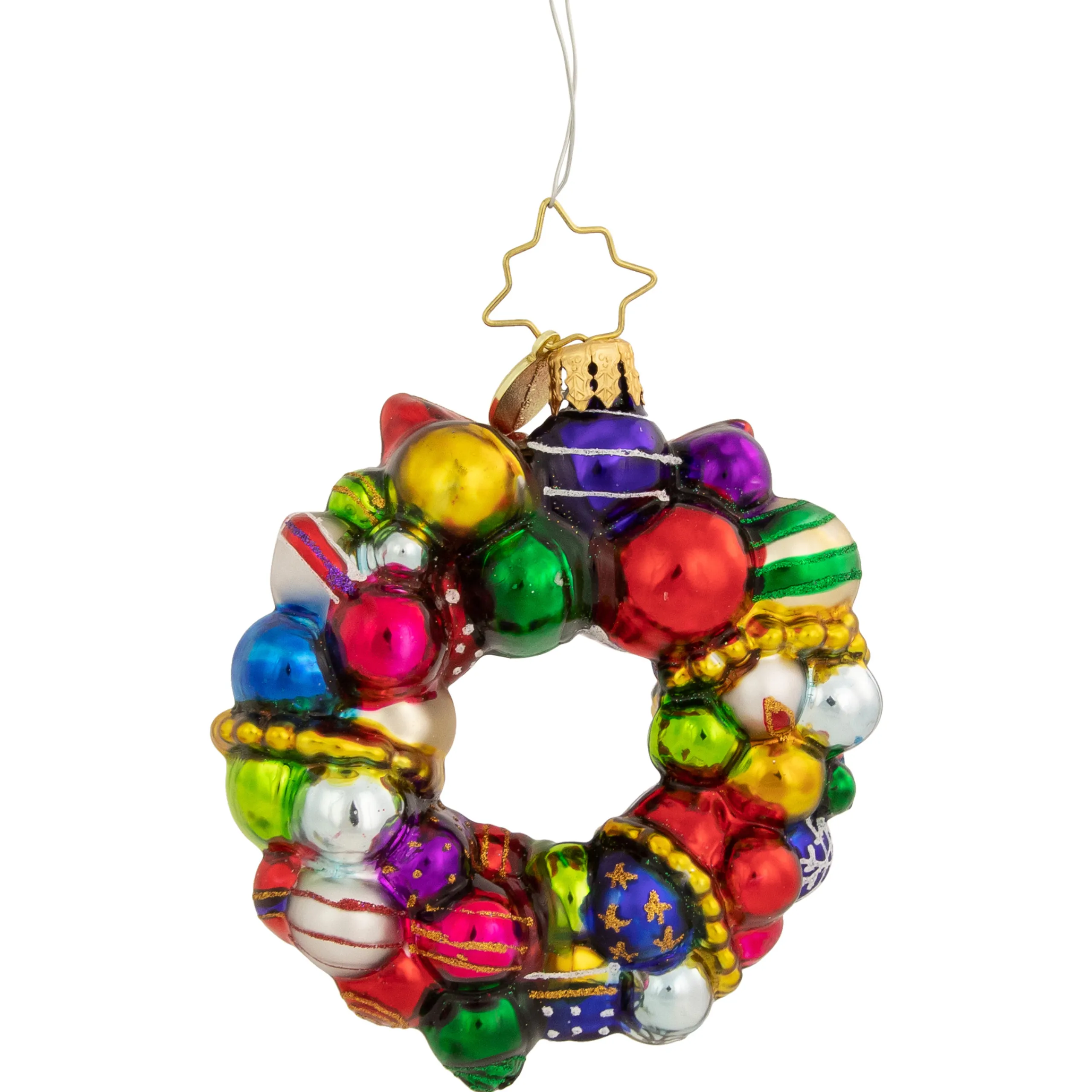 Christopher Radko Collectible> Joyful Wreath Gem Glass Christmas Ornament 1018354