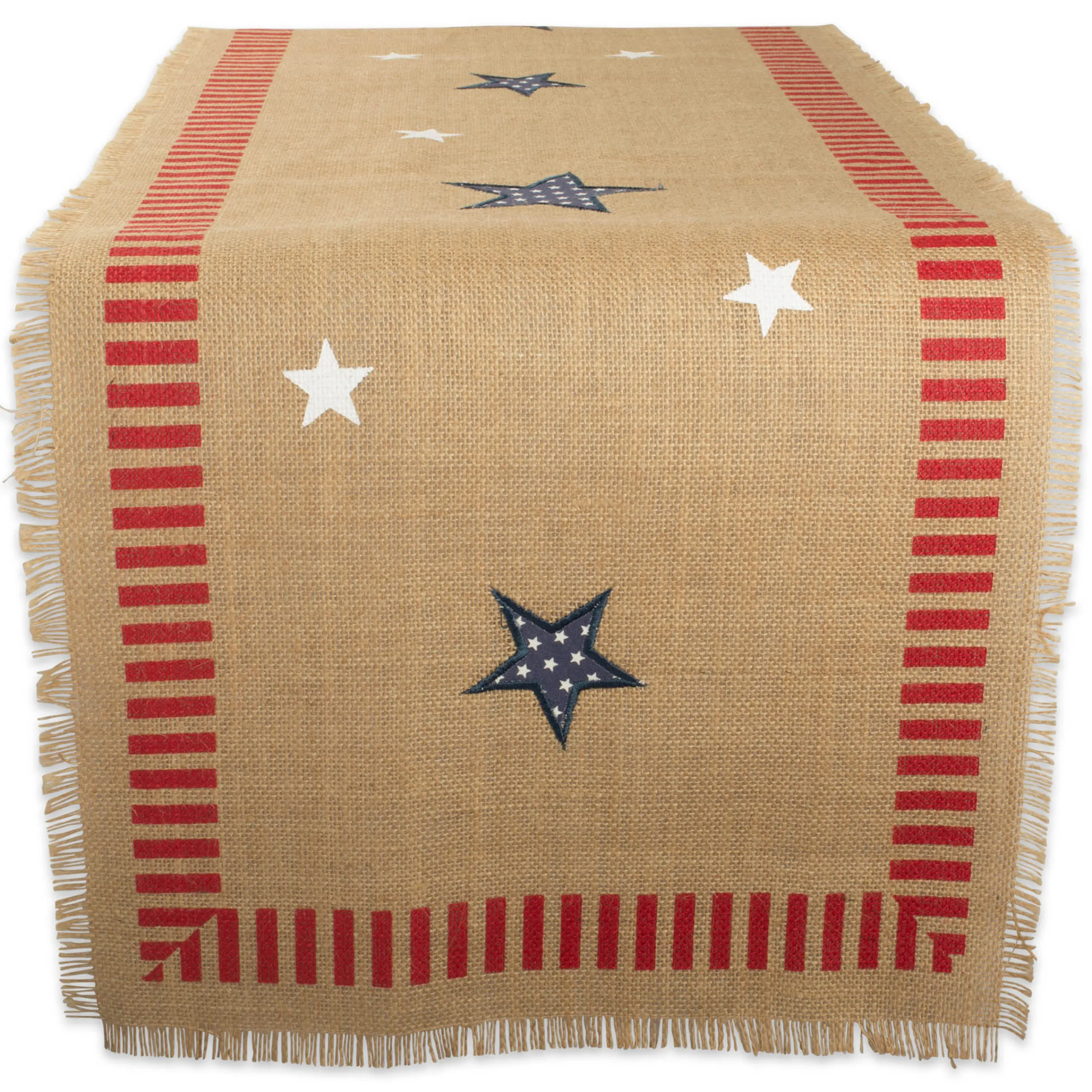 Contemporary Home Living 74″ Stars And Stripes Americana Burlap 4Th Of July Table Runner