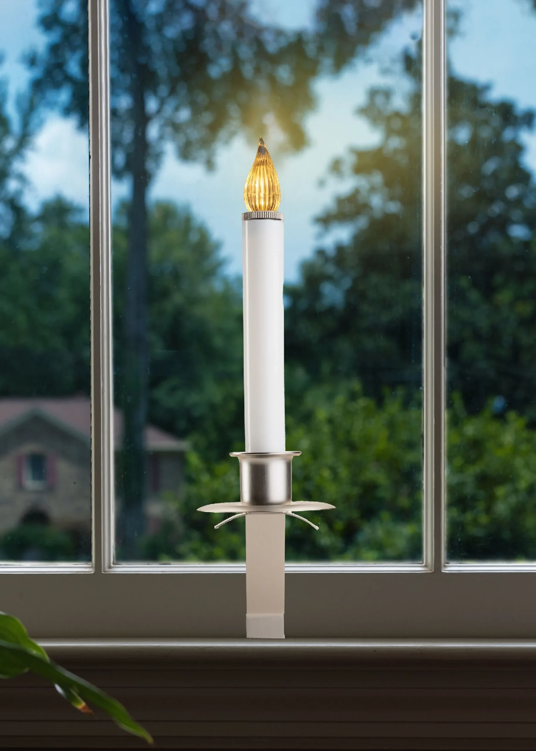 Add A Touch Of Elegance To Your Holiday Decor With These Led White Sensor Christmas Candles Accompanied By A Sleek Silver Slant Bracket. The Slant Bracket Led Battery Operated Candle Set Features A Light Sensor That Automatically Turns The Candles On And Off, Providing Hassle Free Illumination. Crafted For Windows Without Sills, The Bracket Securely Clamps Into Place, While The Patented Double Led Bulb Ensures Long Lasting Performance For Up To 120,000 Hours. With Low Wattage Requirements, These Candles Can Create A Warm And Welcoming Atmosphere For Months On Just Two Aa Batteries (Not Included).