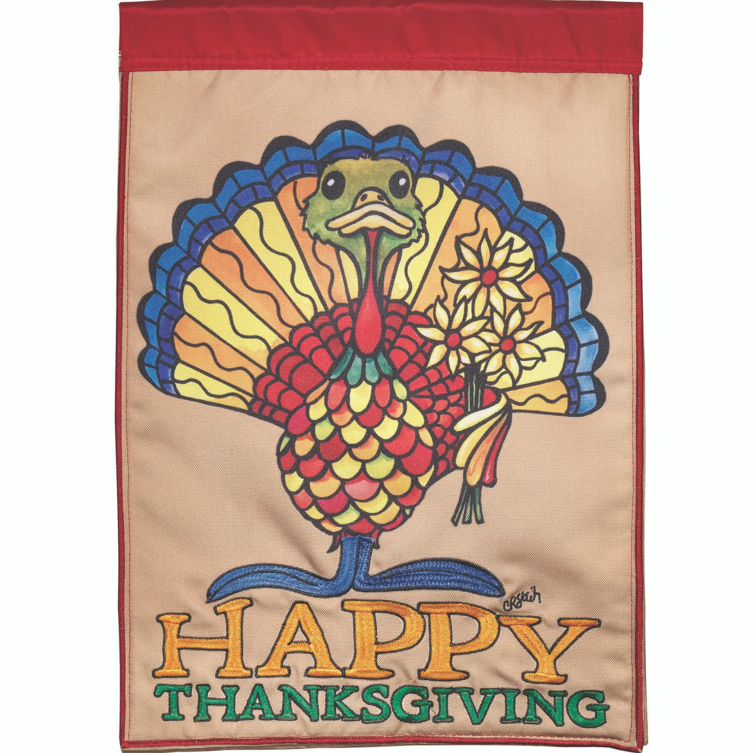 Contemporary Home Living Turkey Giving Flowers “Happy Thanksgiving” Double Applique Garden Flag 18″ X 13″