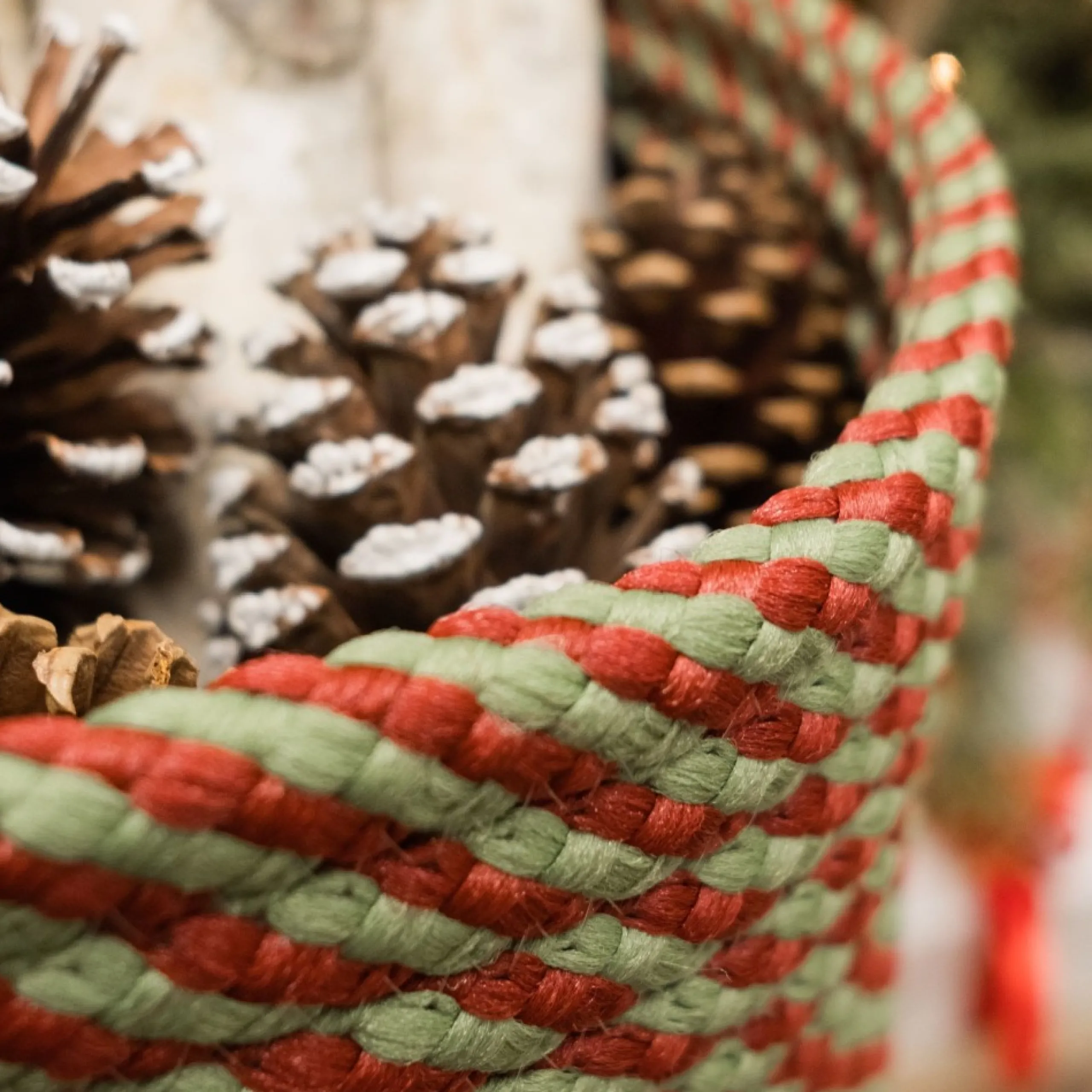 Decoration Storage*Colonial Mills 16″ Braided Round Candy Cane Basket With Green Handles