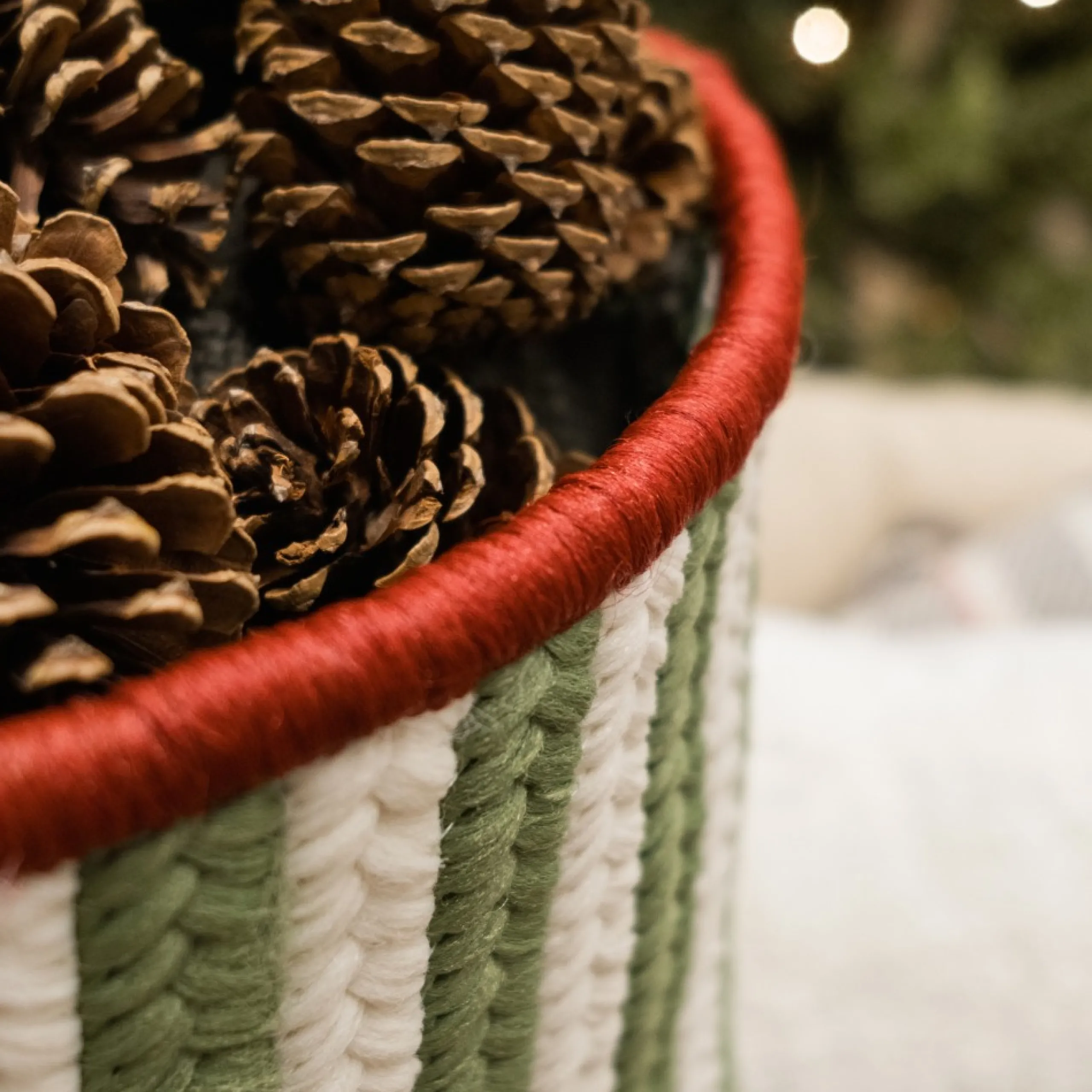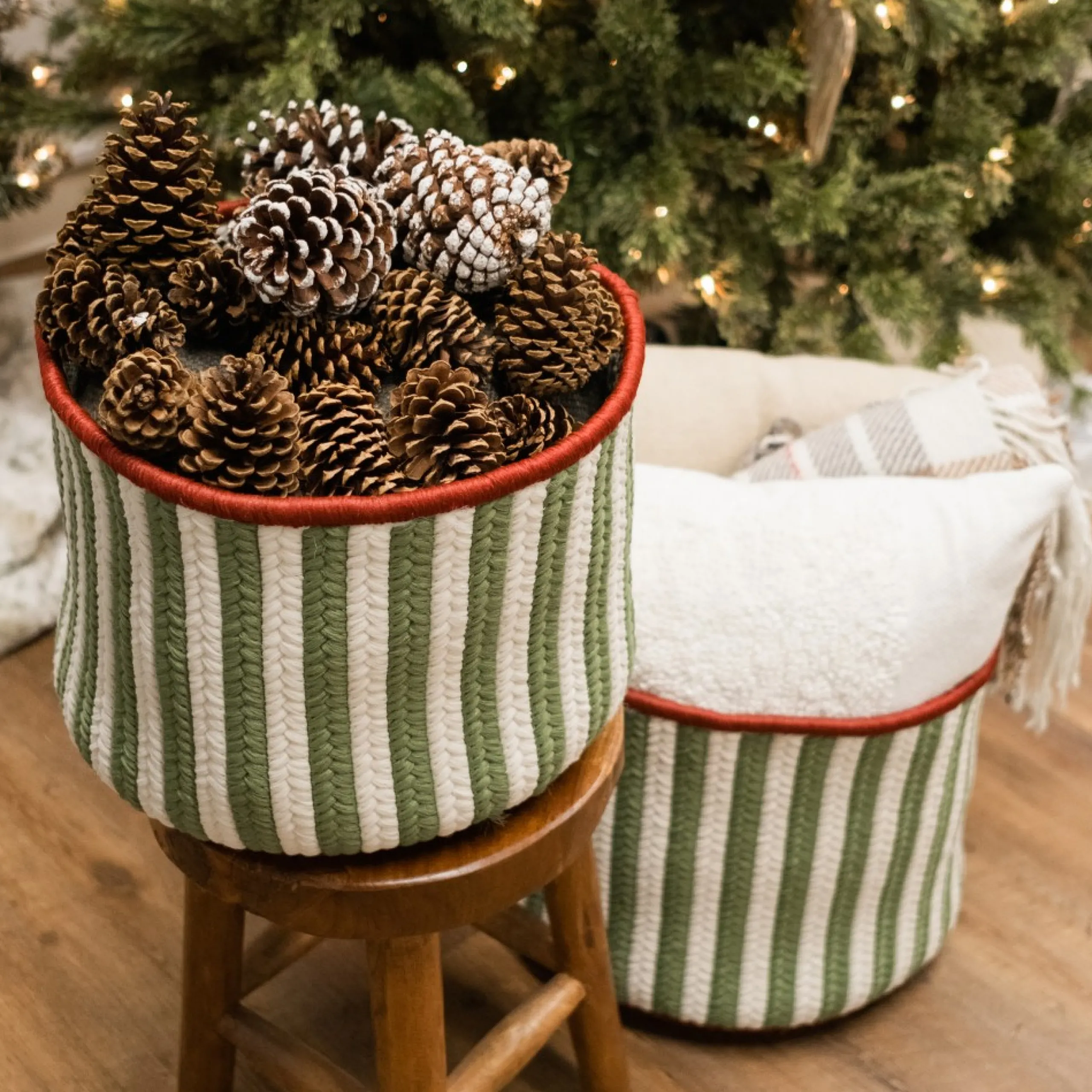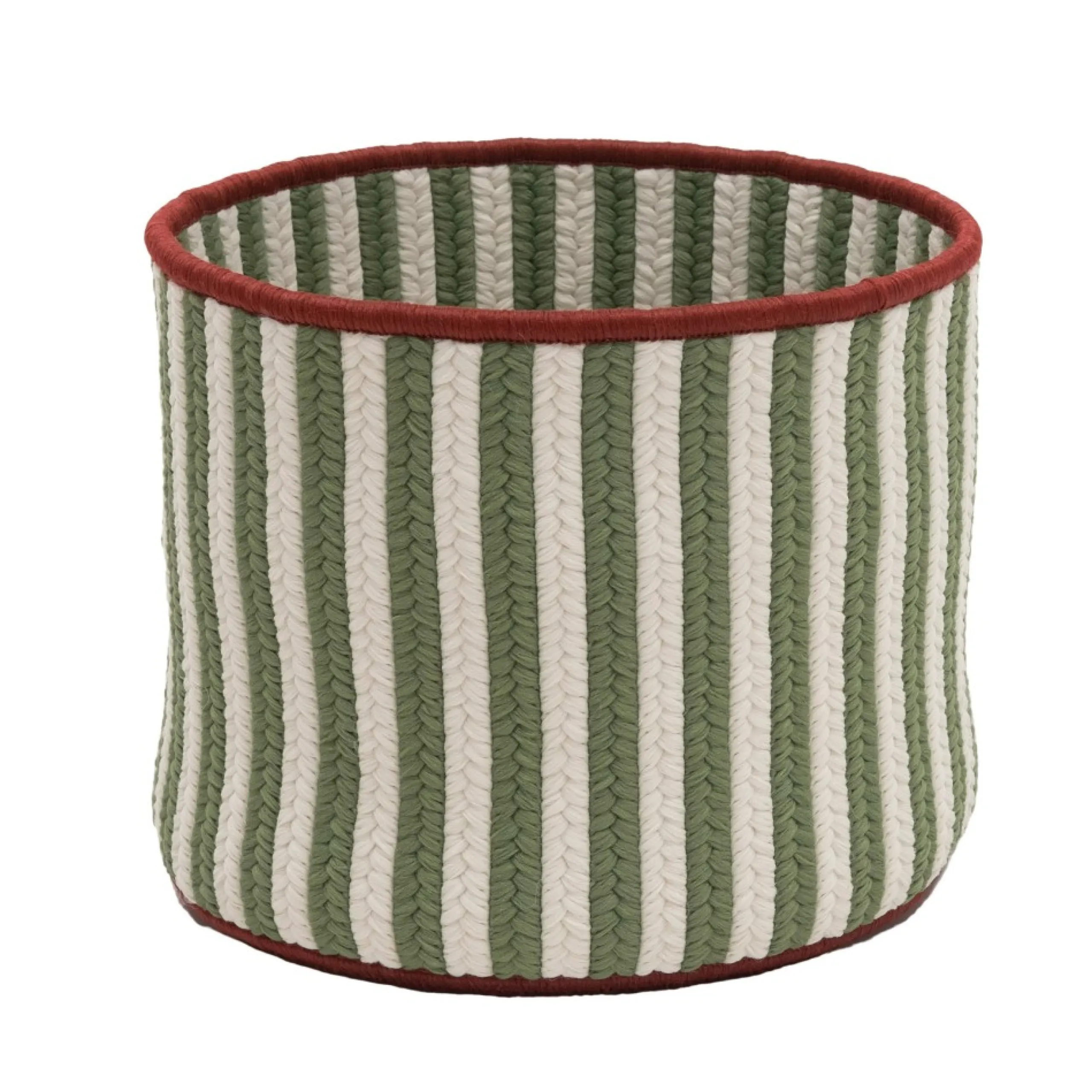 Decoration Storage*Colonial Mills 14″ White And Green Vertical Striped Braided Round Christmas Storage Basket