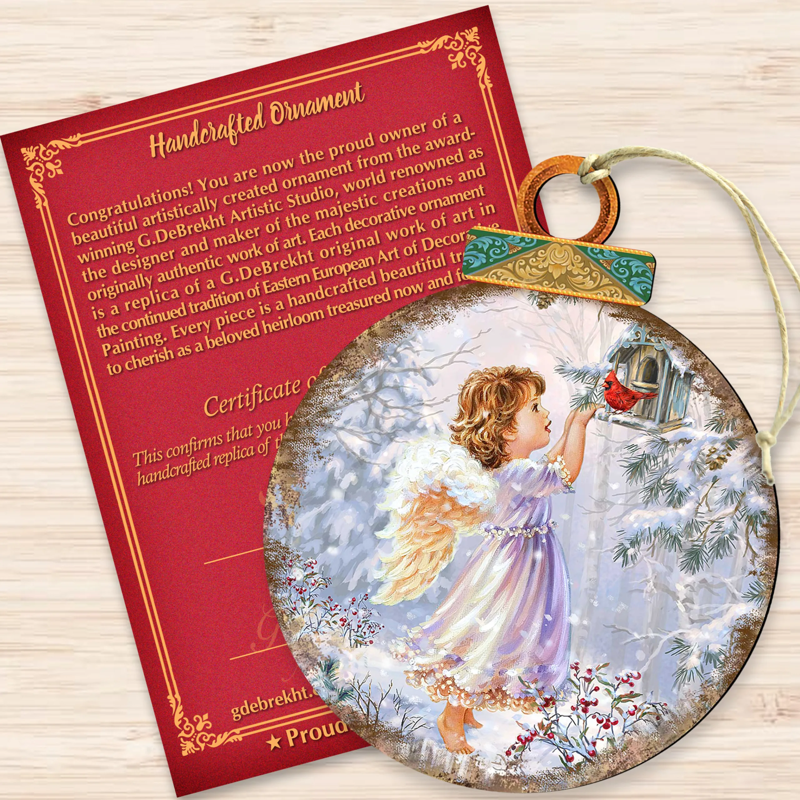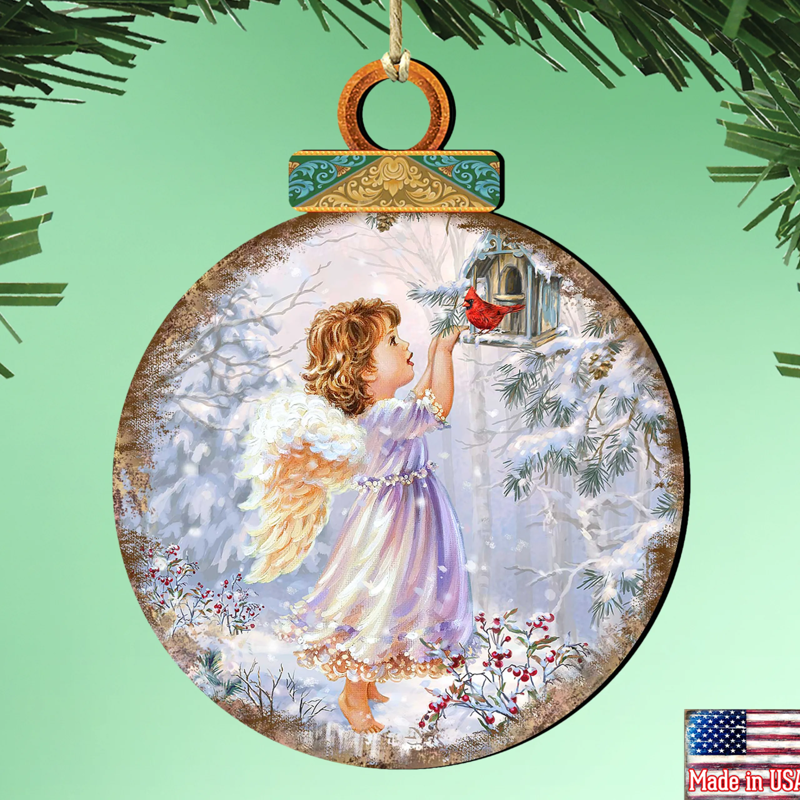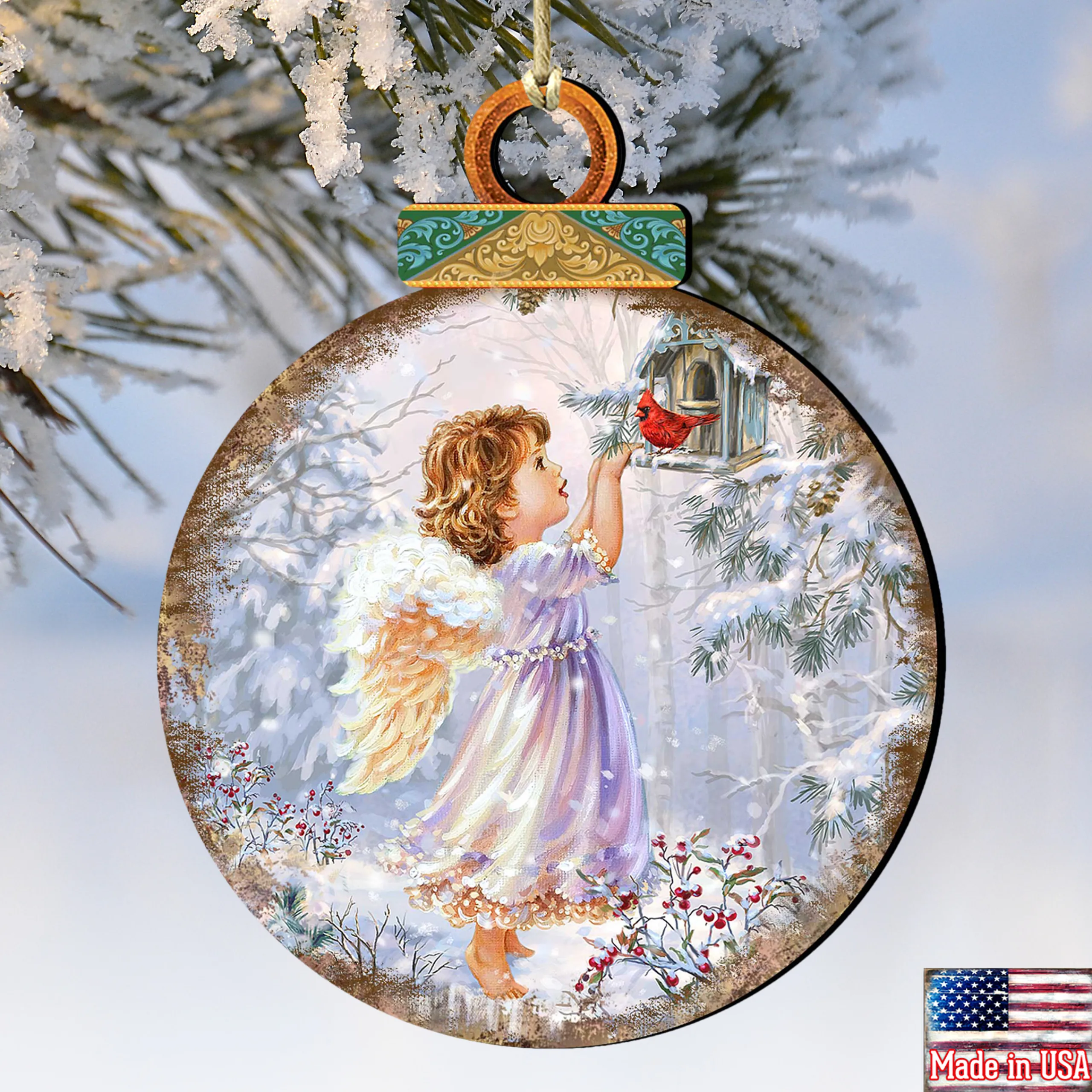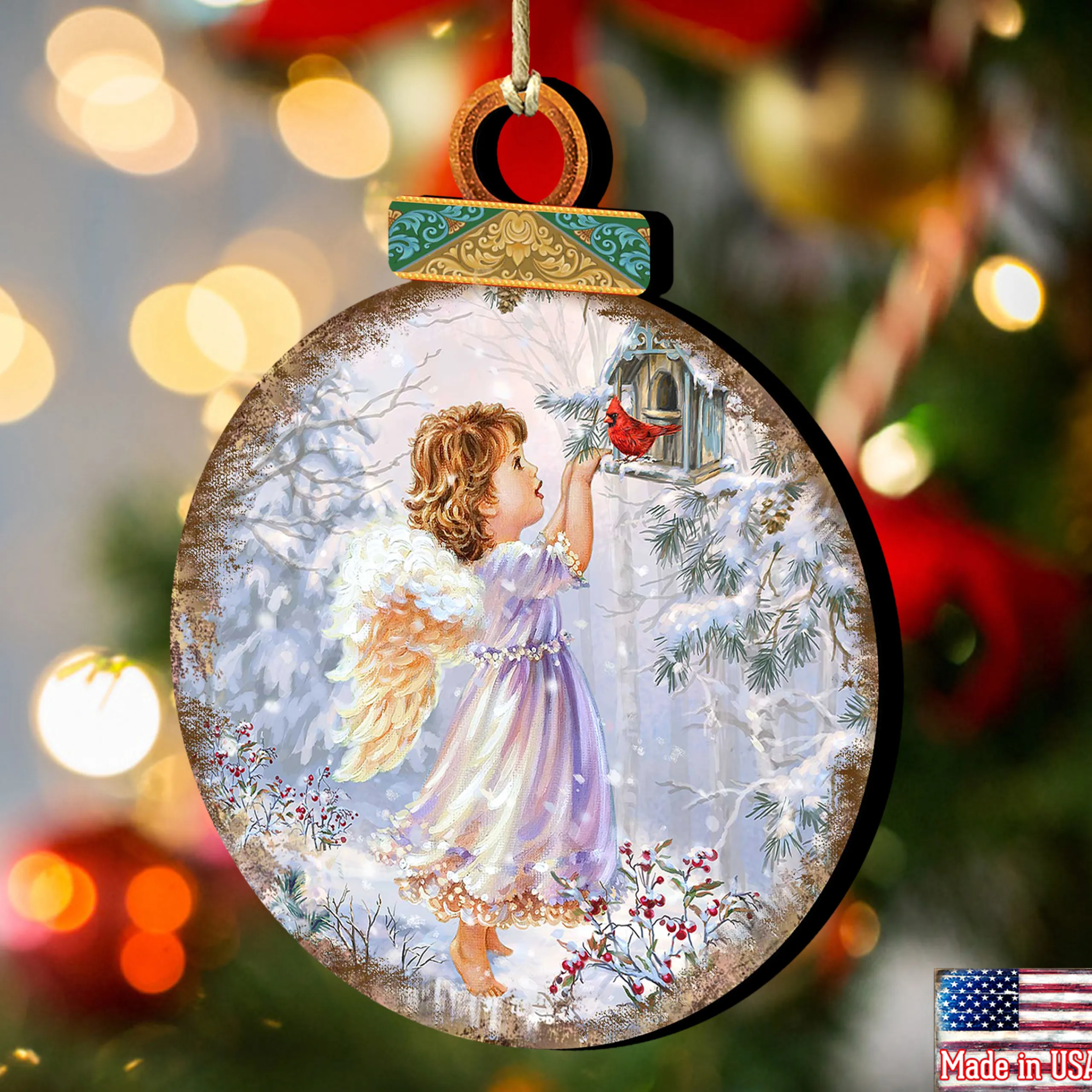 Invite The Beauty Of Christmas Into Your Home With This Set Of Charming Ornaments. These Ornaments Depict An Angel Looking At A Red Cardinal. Each Ornament Was Handcrafted From Birch Wood And Designed By Dona Gelsinger. These Would Be A Perfect Addition To Your Home Christmas Decoration Or A Great Gift.