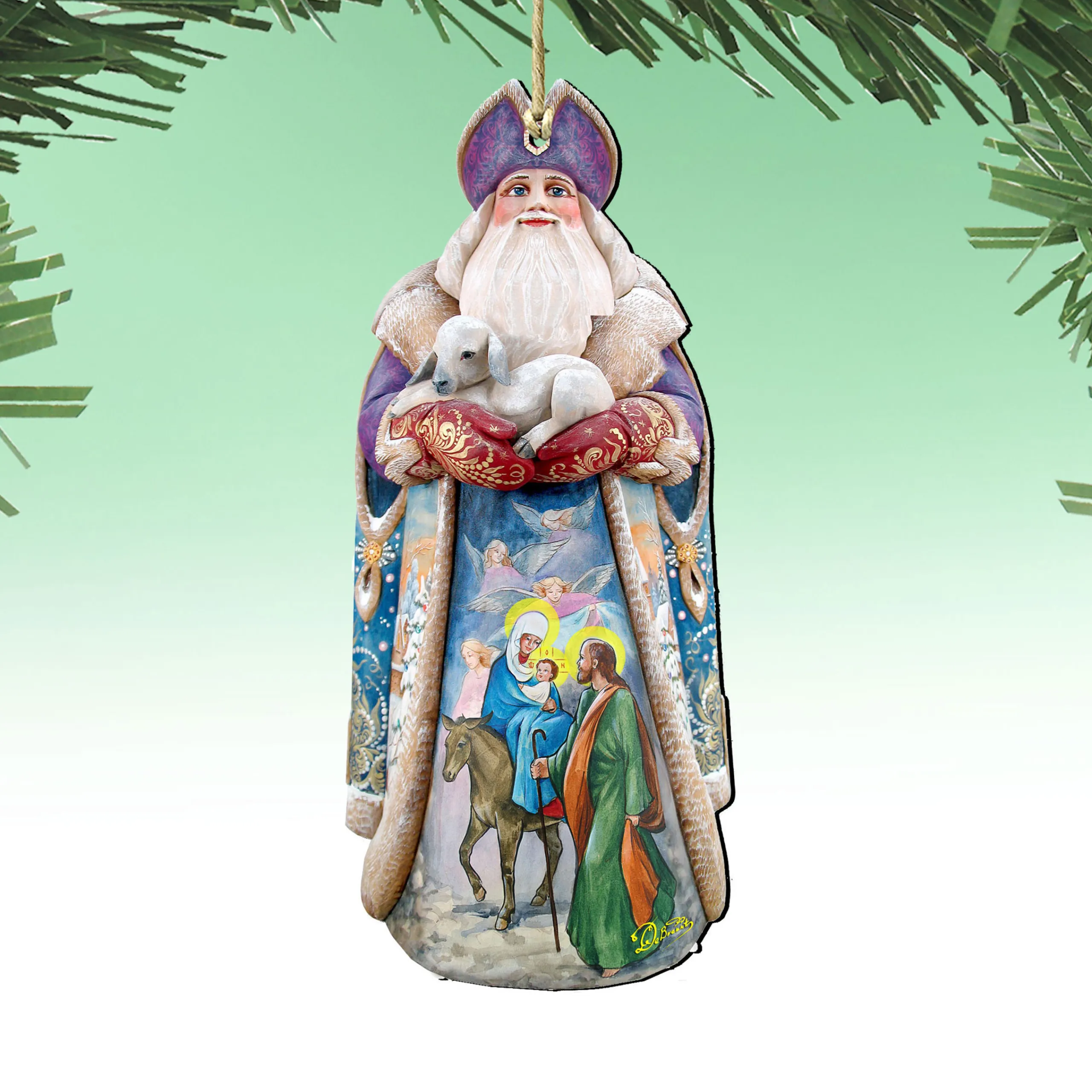 Ornaments Depict Santa Claus Carrying A Goat With The Guardian Angels