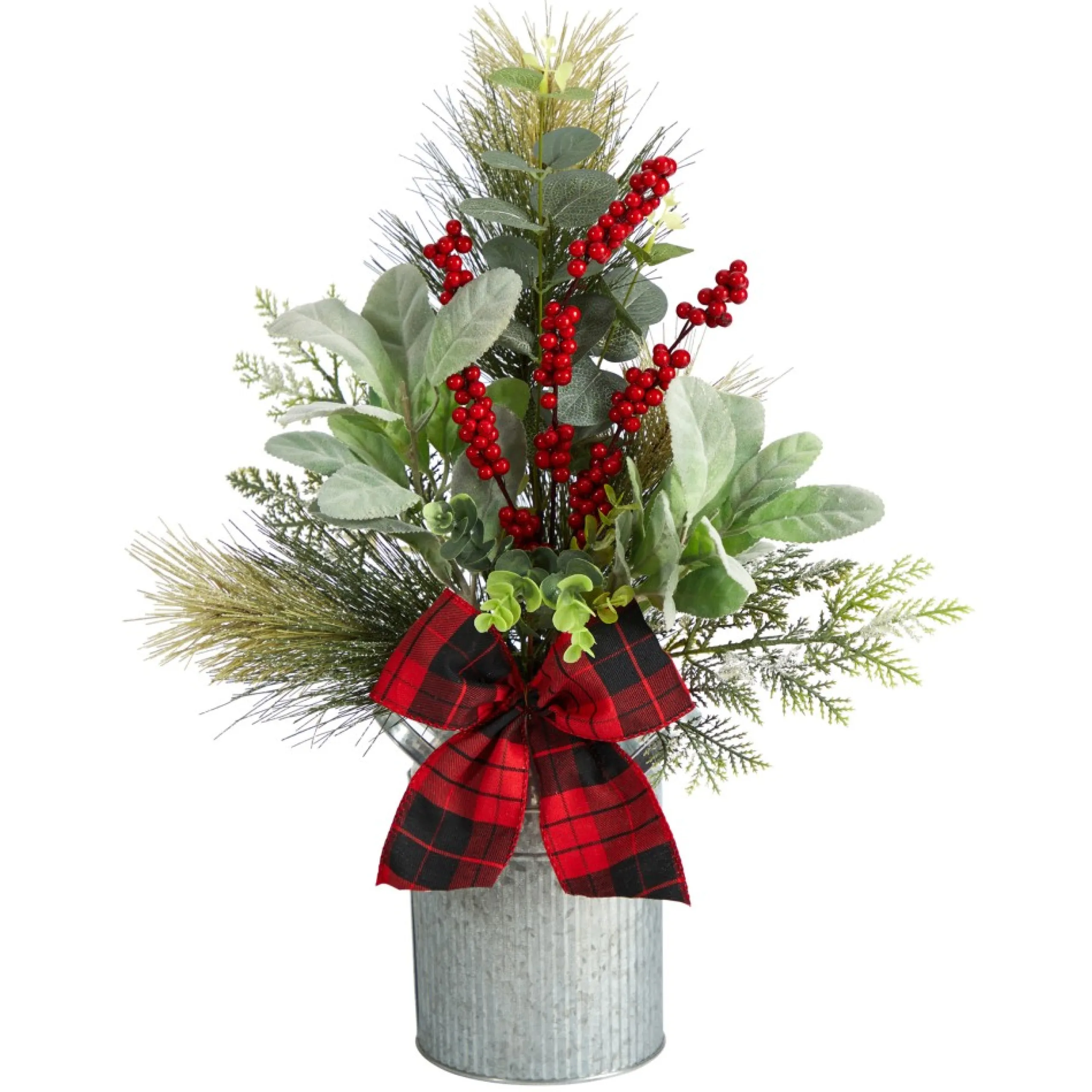 Floral*Nearly Natural 20″ Berries And Pine Artificial Christmas Arrangement With Tin Vase