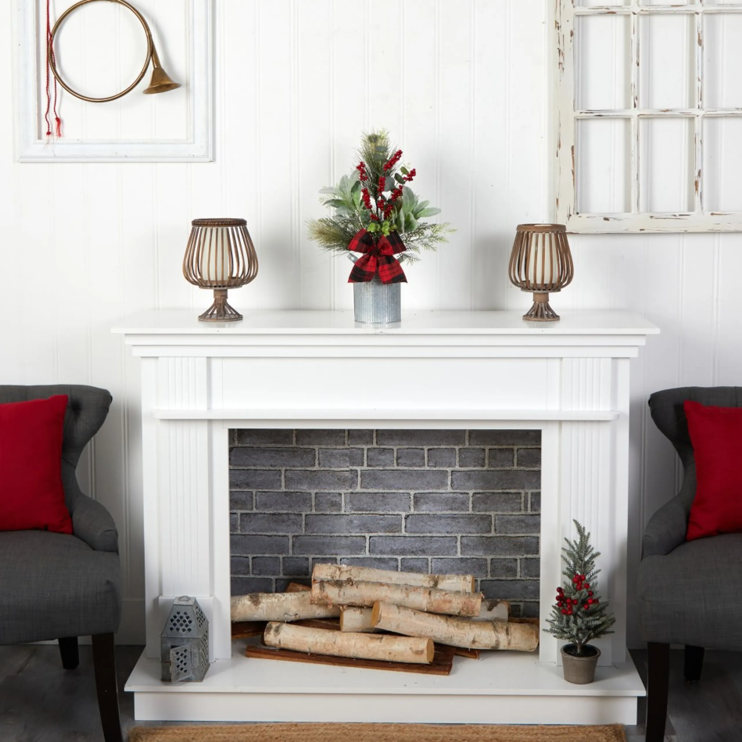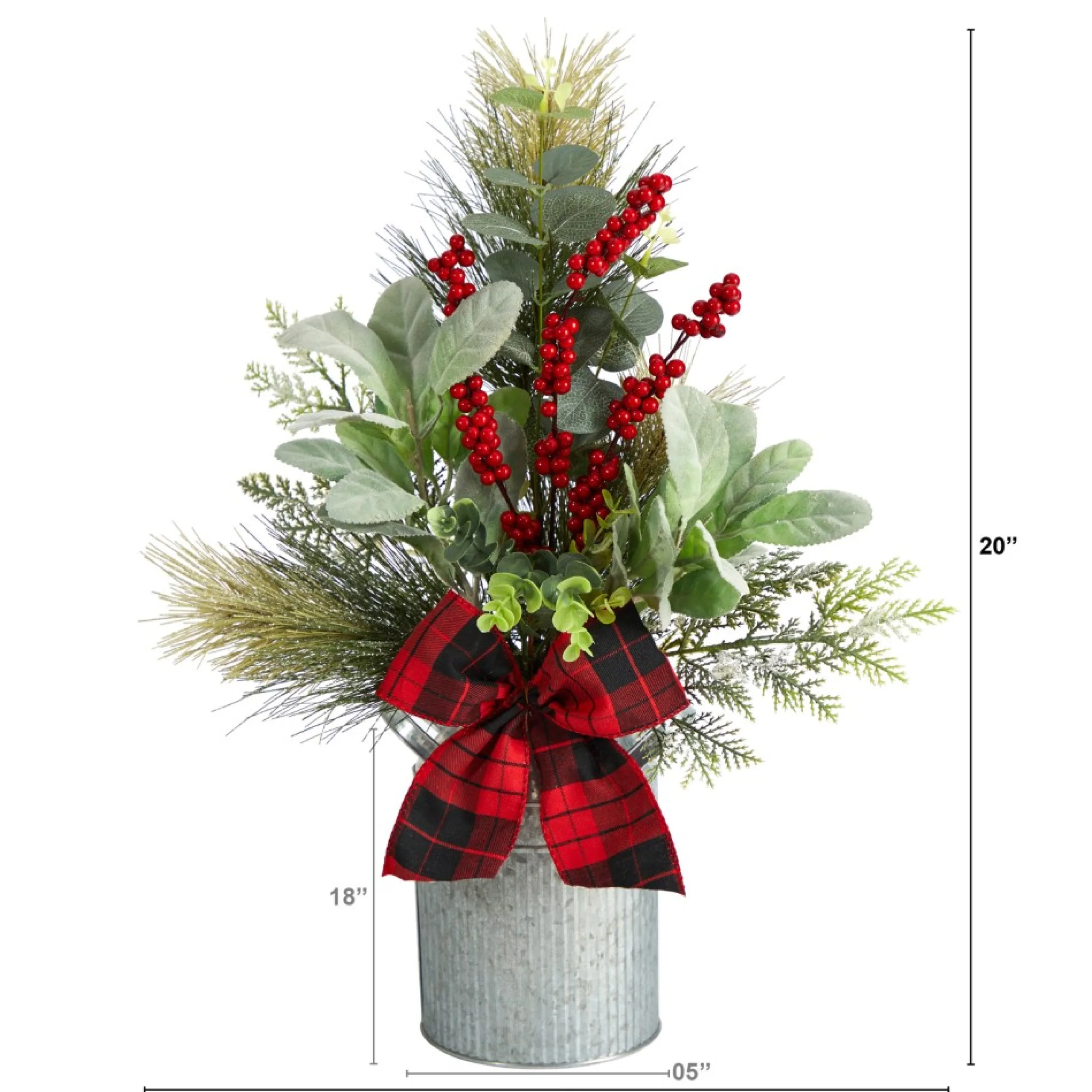 Bring The Magic Of The Winter Season To Your Home With This Charming Arrangement. The Realistic Looking Berries And Pine Provide A Touch Of Holiday Cheer That Will Last All Season Long. Housed In A Rustic Inspired Tin Vase With Plaid Ribbon, This Piece Is Perfect For Adding A Cozy Farmhouse Feel To Any Space.