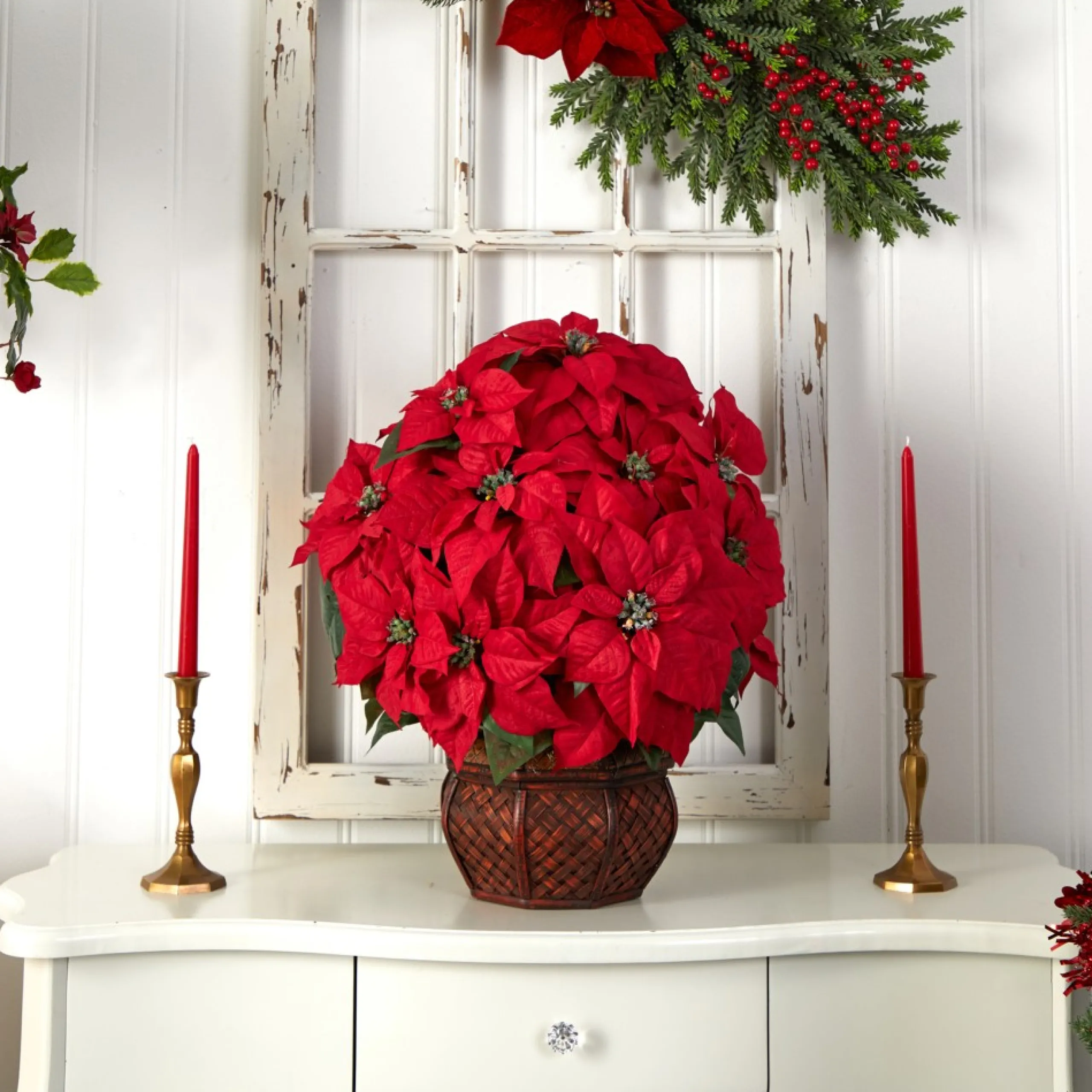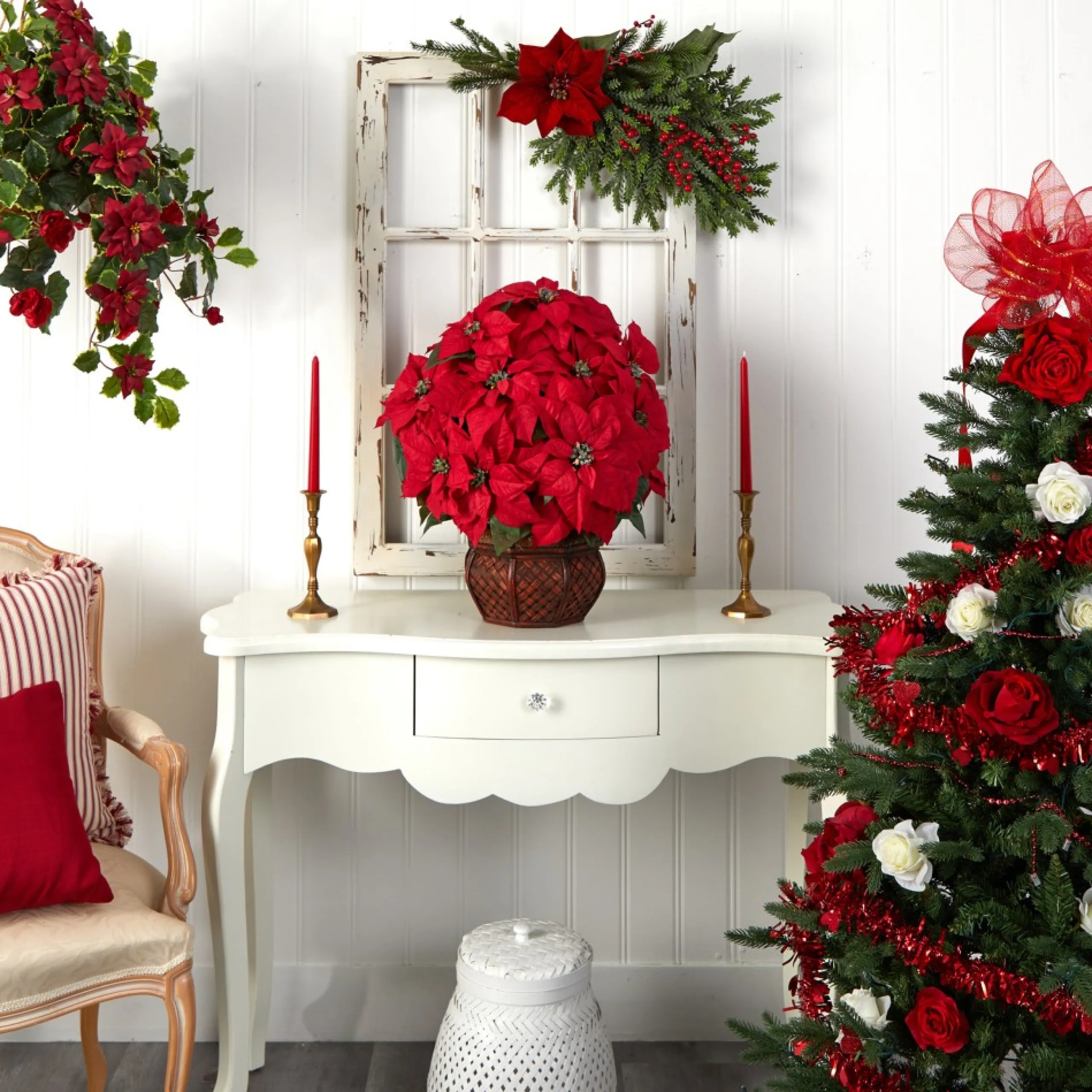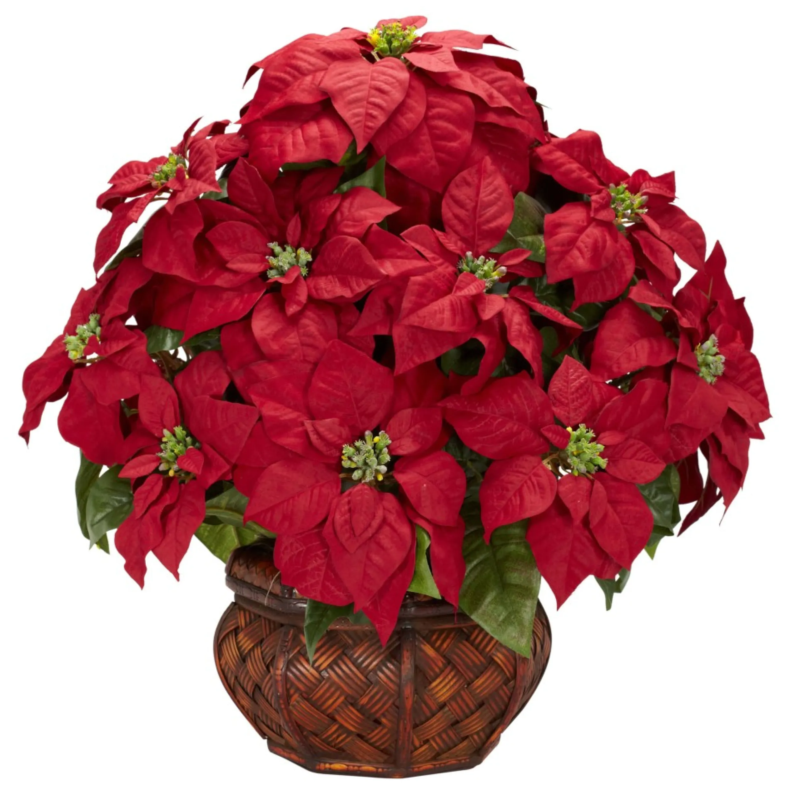 Floral*Nearly Natural 22″ Red Poinsettia Silk Christmas Artificial Floral Arrangement With Decorative Planter
