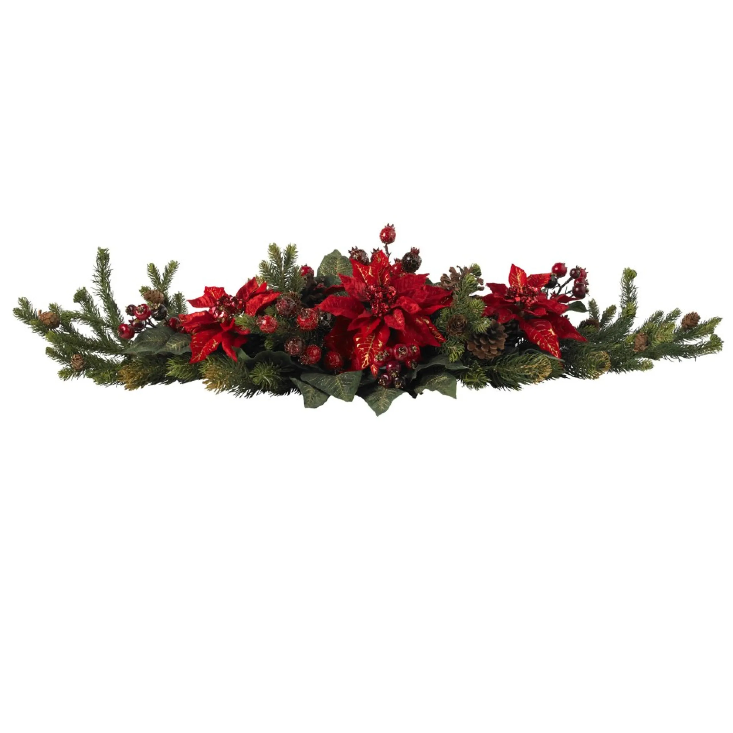 Floral*Nearly Natural 36″ Poinsettia And Berries Artificial Floral Christmas Centerpiece
