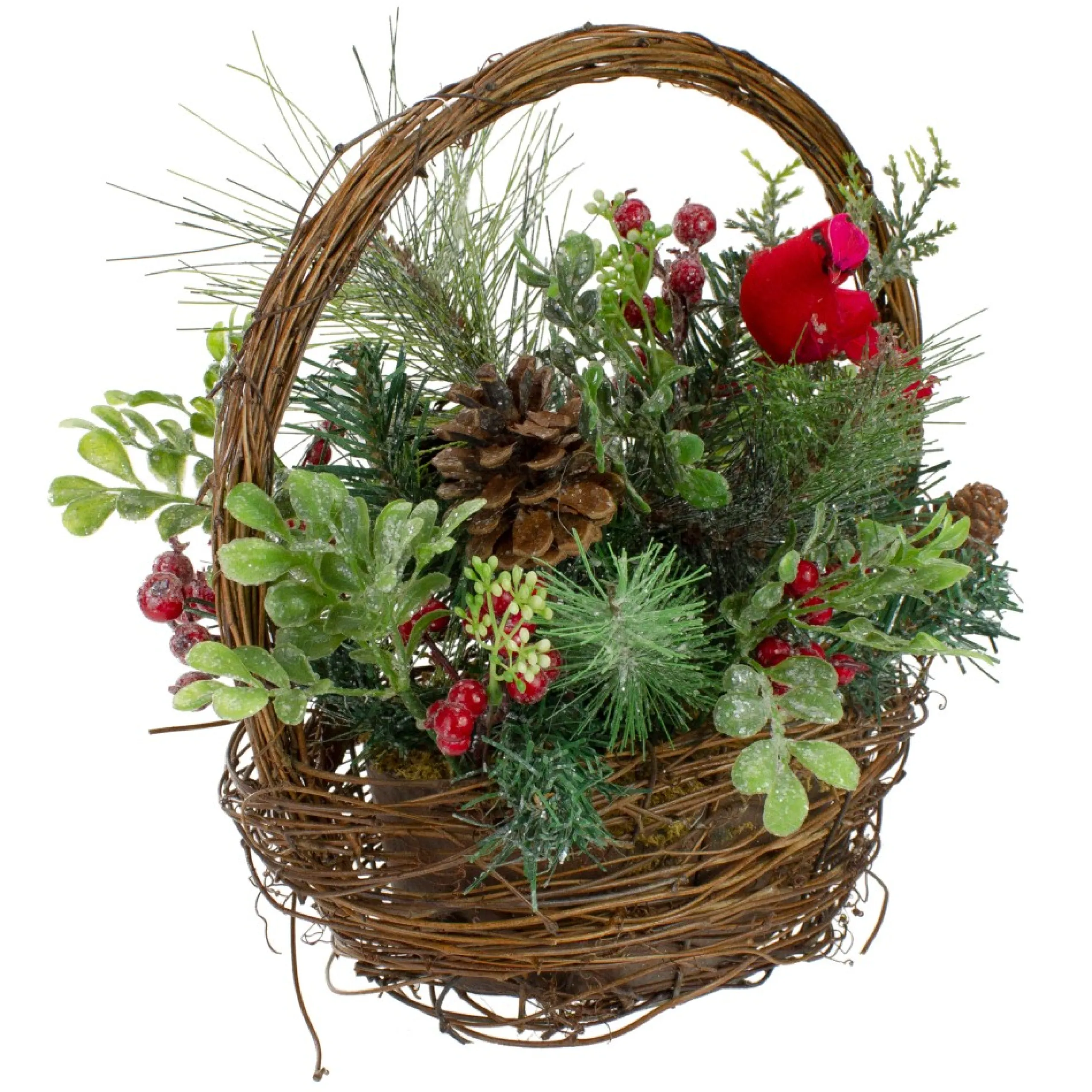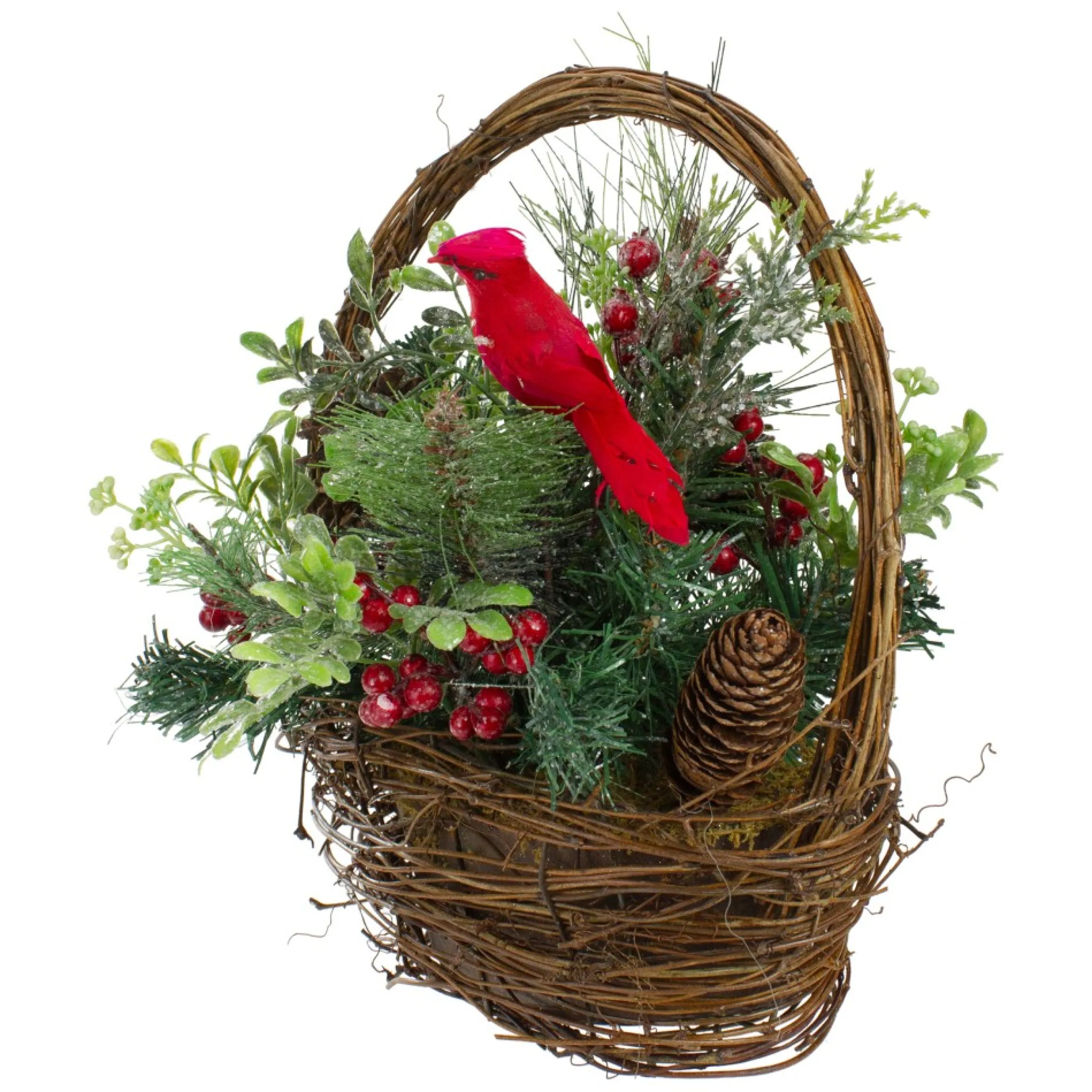 Floral*Northlight 12″ Red Cardinal With Winter Foliage Twig Basket Christmas Decoration