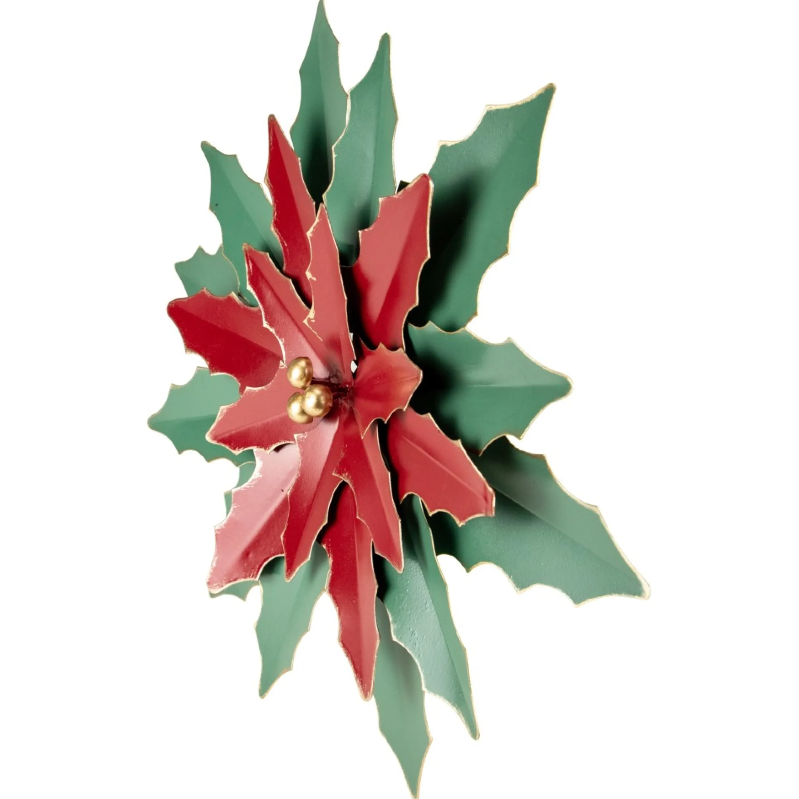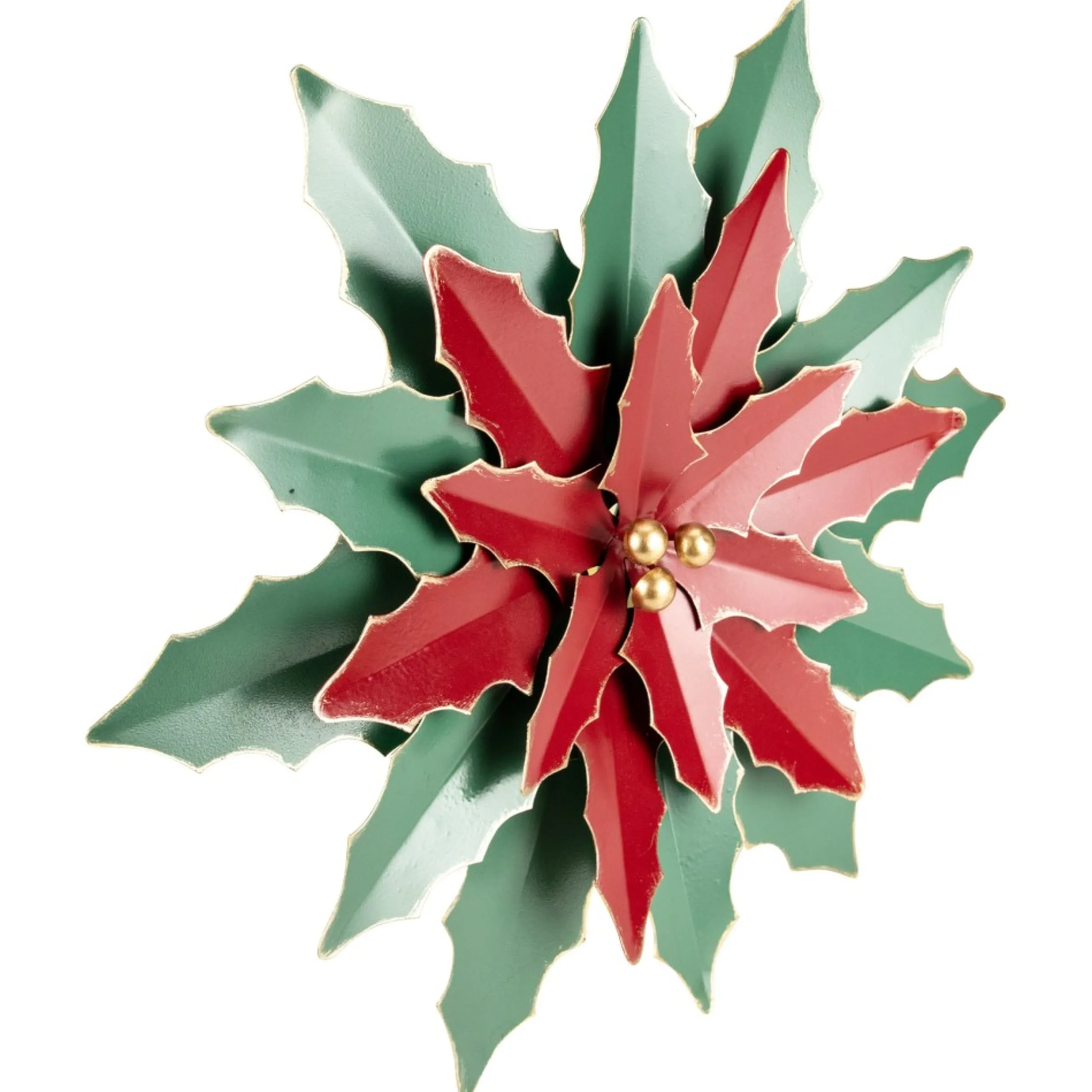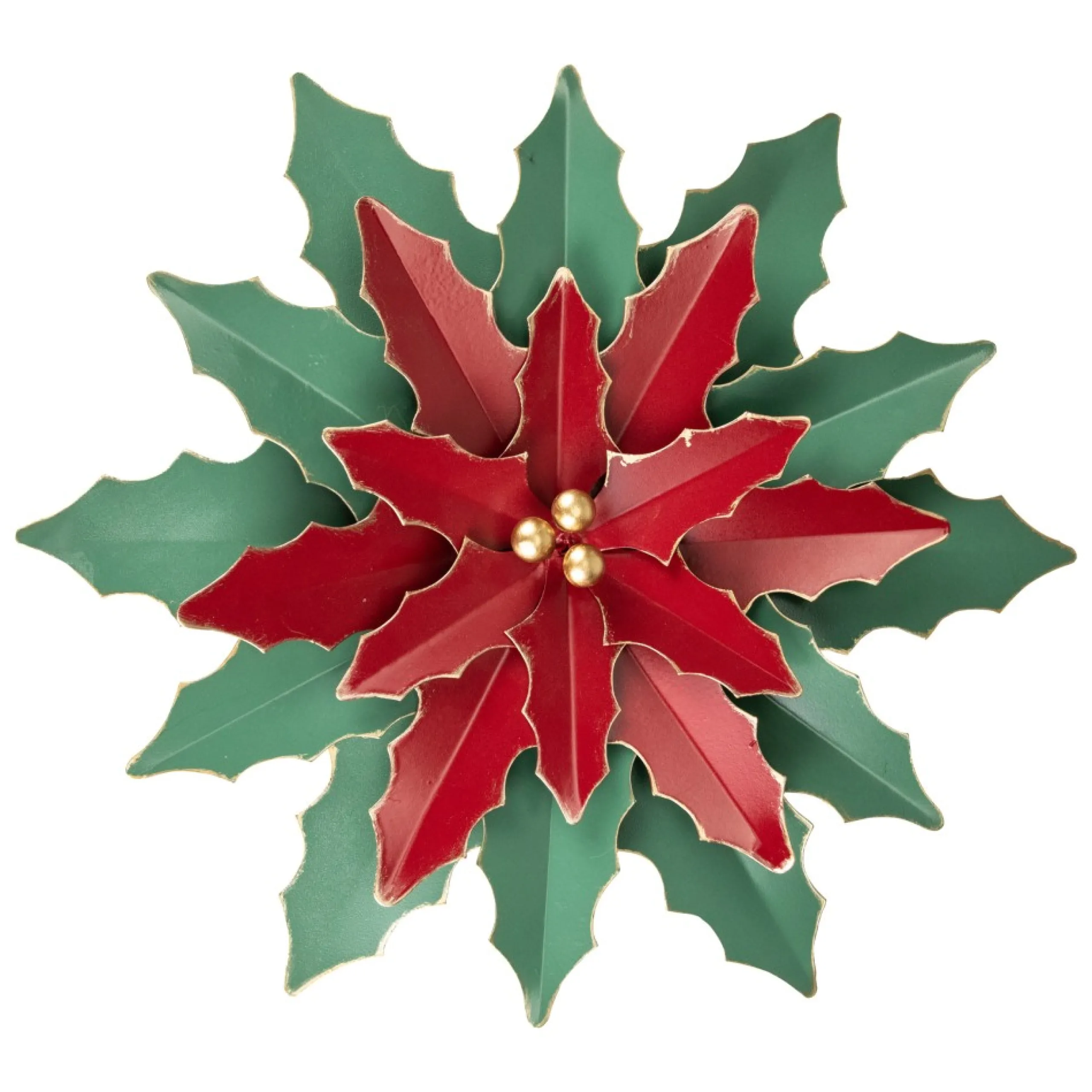 Floral*Northlight 16.25″ Large Red And Green Metal Poinsettia Christmas Wall Hanging