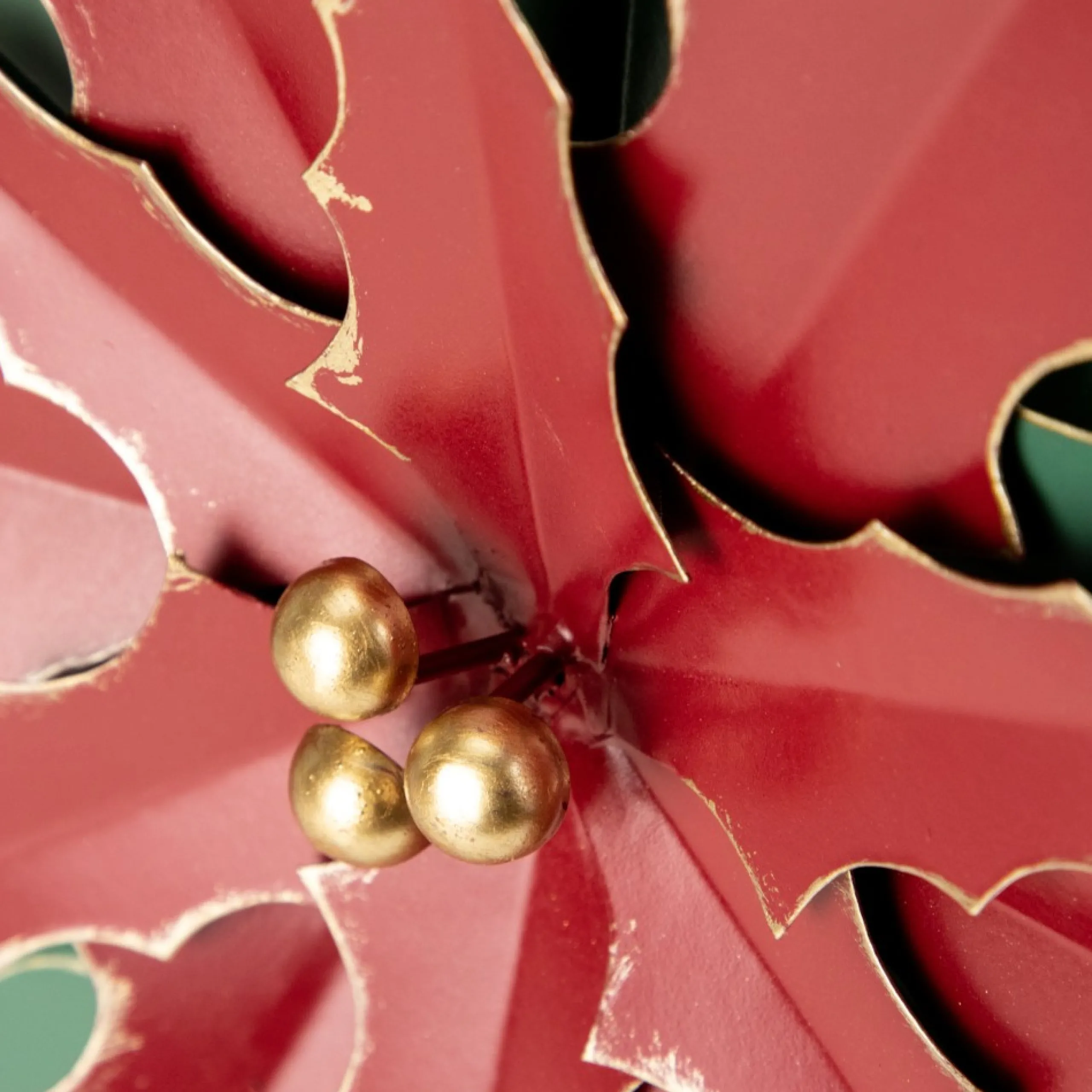 This Metal Poinsettia Flower Is The Perfect Accessory To Your Holiday Decorations. Embellished With Gold Accents, It Packs A Punch Of Christmas Charm. An Everlasting Floral Piece That Will Enhance Your Home From Season To Season.