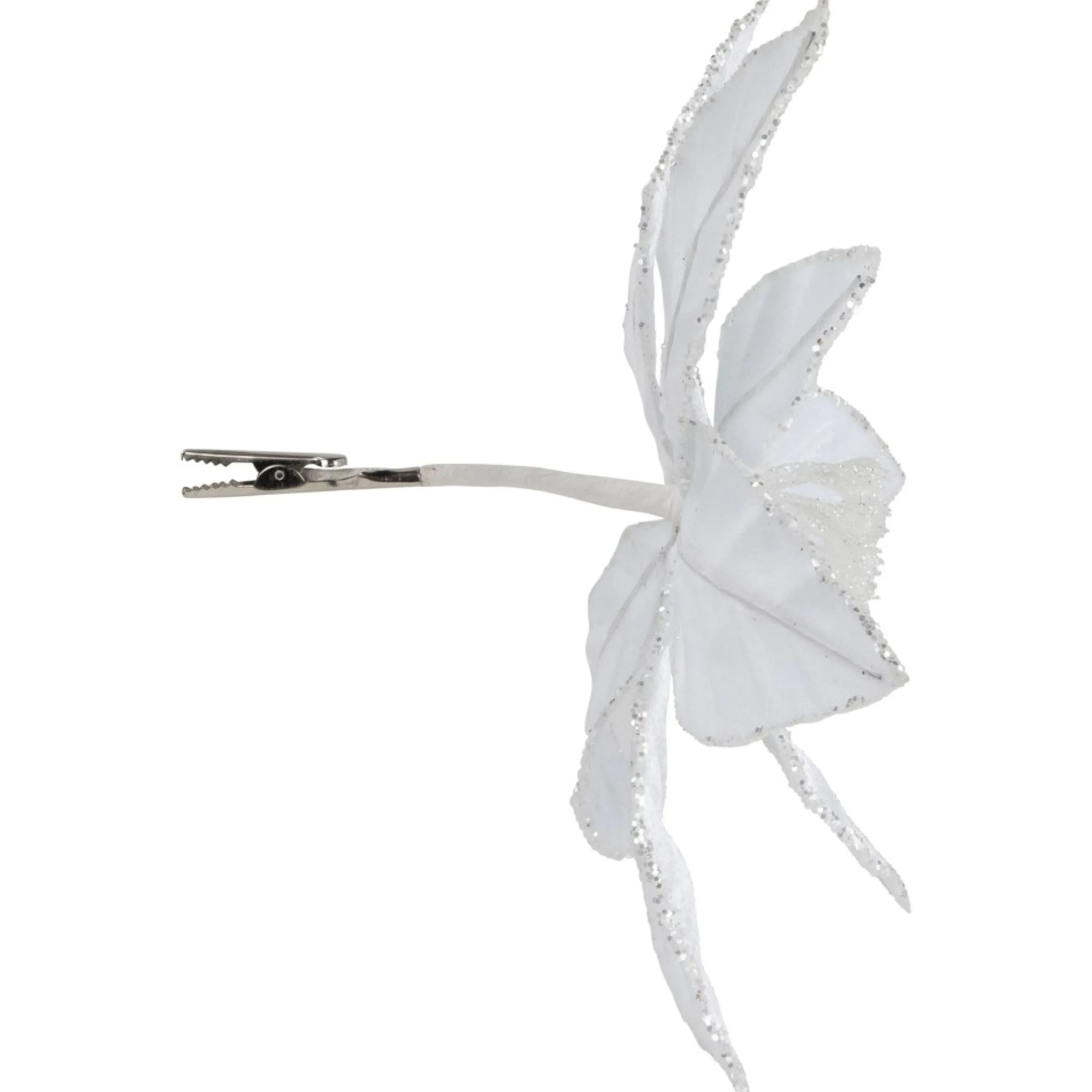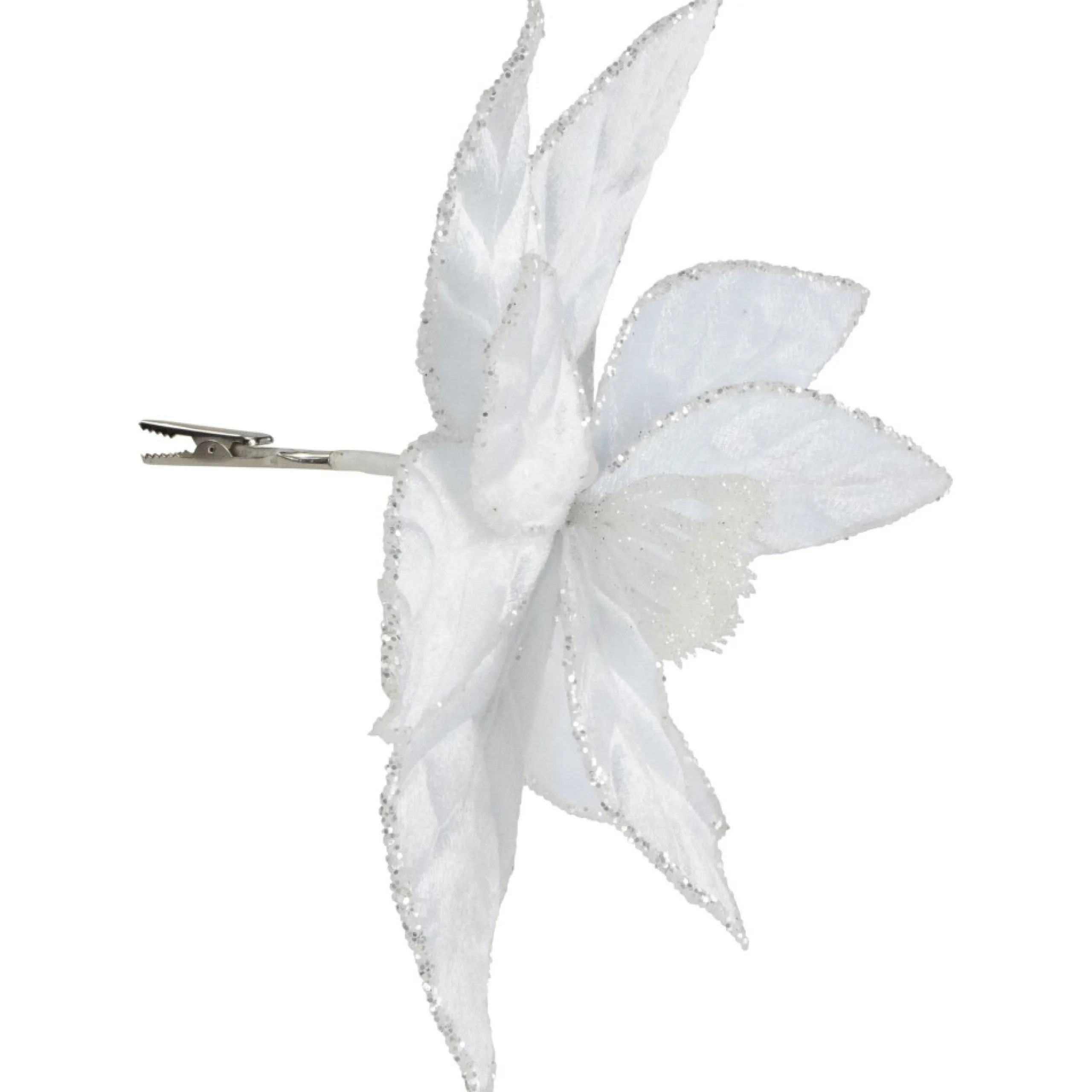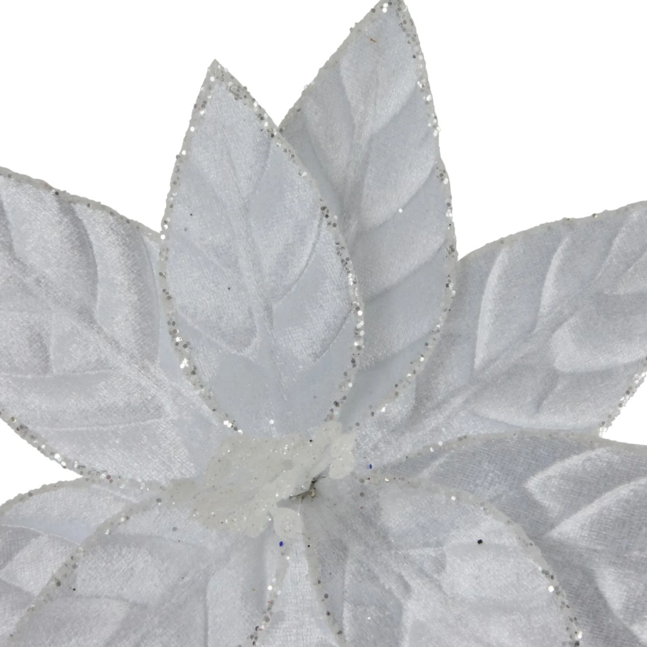 Floral*Northlight 9.5″ Snow White Glittered Poinsettia Floral Christmas Clip