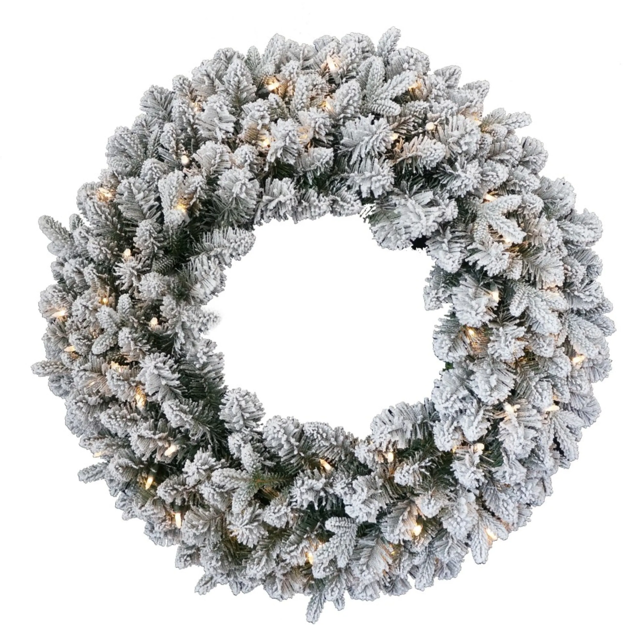 Frosted, Flocked, Iced Wreaths*National Tree Company Pre-Lit Snowy Iceland Fir Artificial Christmas Wreath, 24-Inch, Warm White Lights