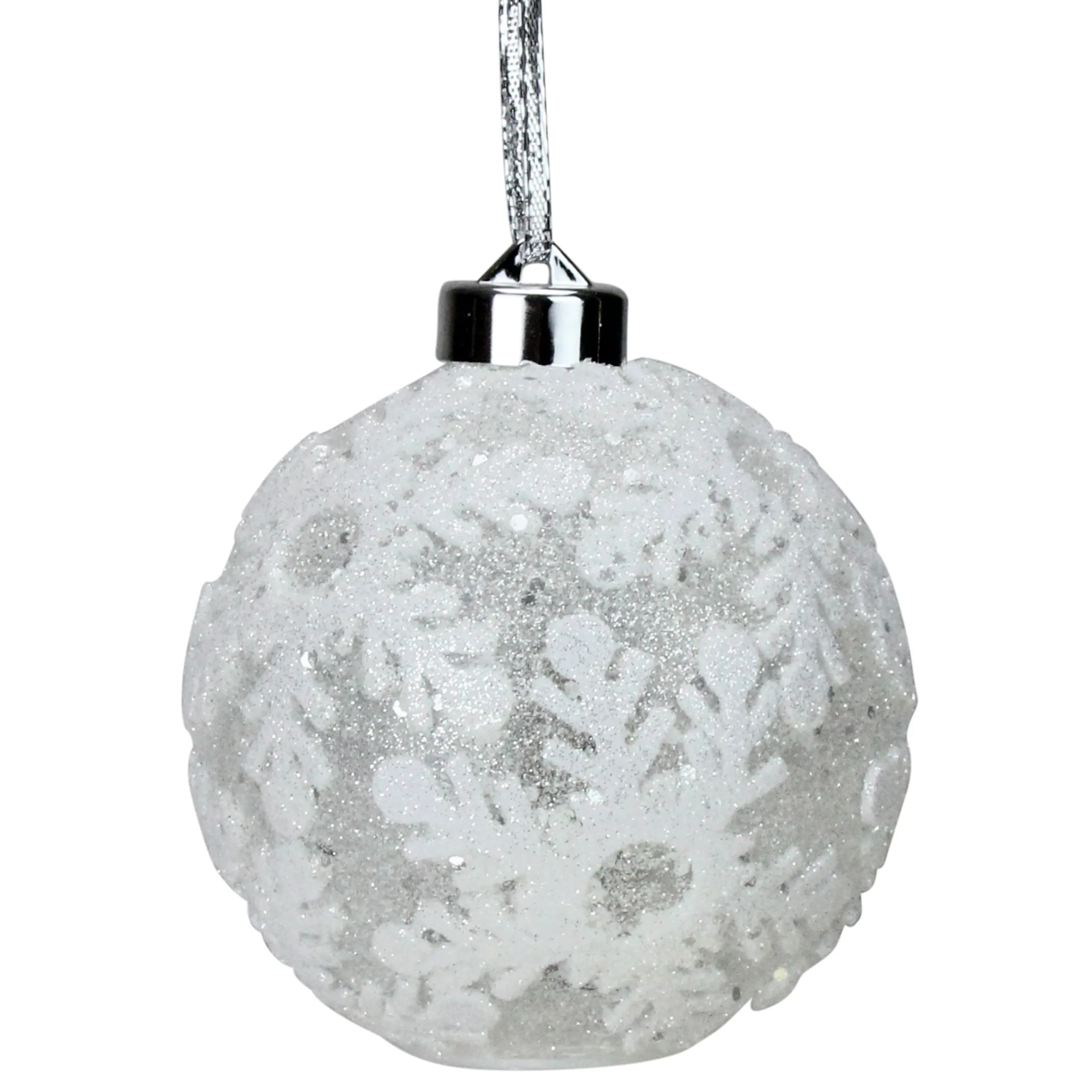 Gerson Snowflakes>6Ct Battery Operated Pre-Lit Silver Glitter Snowflake Christmas Ball Ornaments 4.25″ (105Mm)