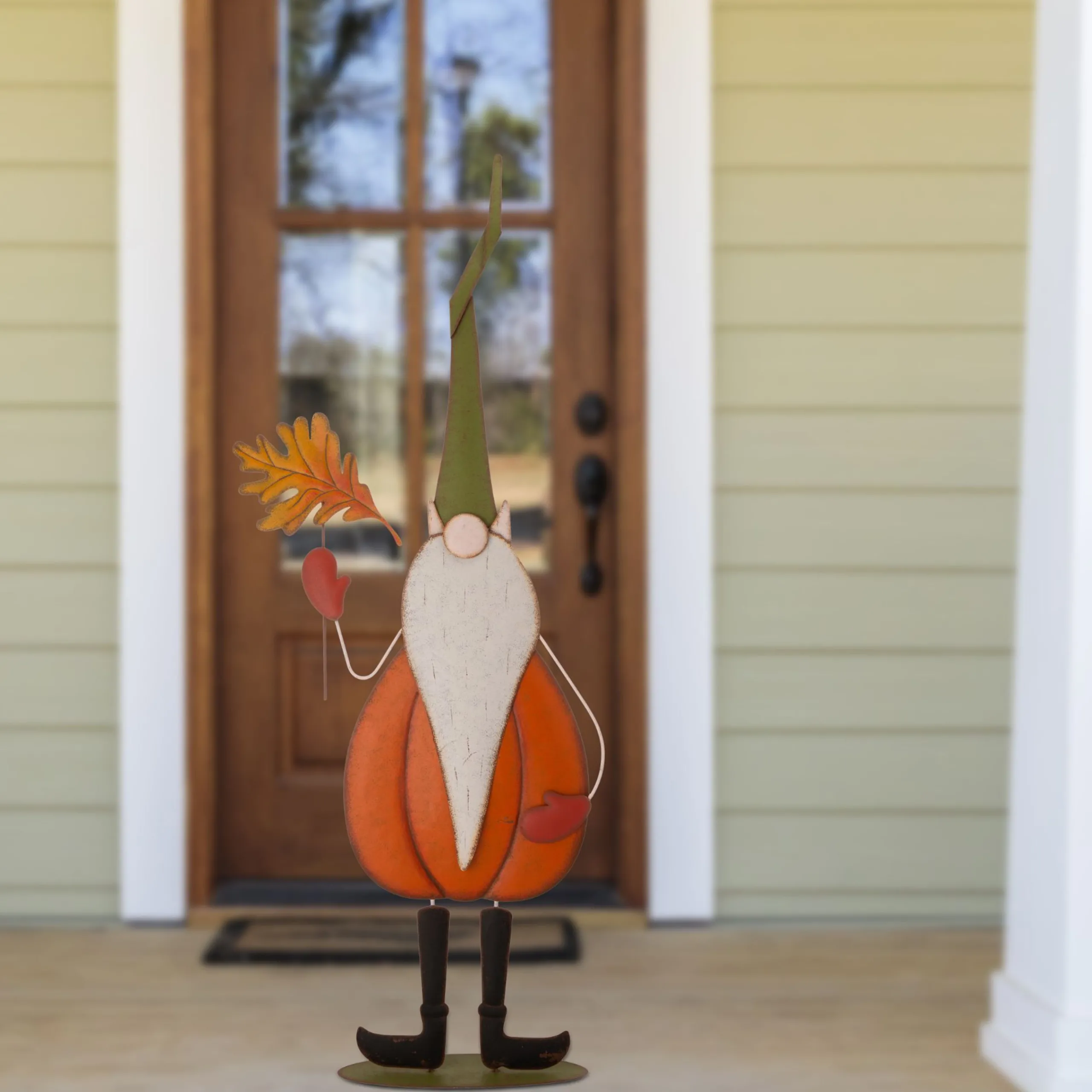 Fall Metal Gnome Standing Decor With A Lovely Pumpkin Body, Embellished With Leaf
