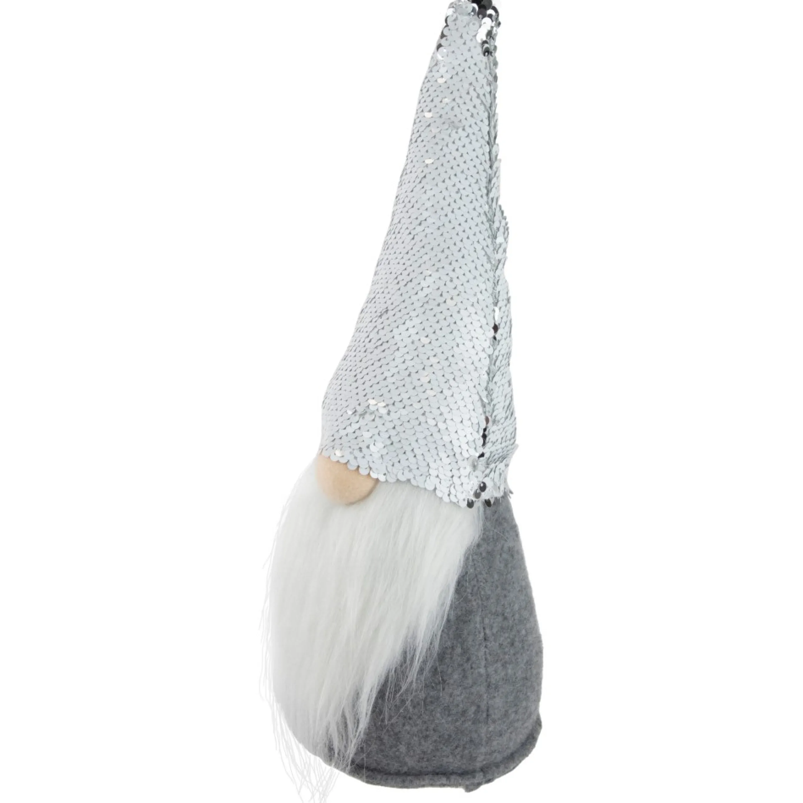 Add A Touch Of Whimsy And Sparkle To Your Holiday Decor With Our Gnome Christmas Decoration. This Adorable Gnome Features A Plush Gray Body With A Silver Sequin Hat And A Long White Beard. The Silver Sequins On The Hat Catch The Light Beautifully And Add A Touch Of Glamour To Your Holiday Decor. This Decoration Is A Perfect Addition To Any Holiday Display. Place It On A Tabletop, Mantel, Or Shelf To Add A Charming Touch To Your Home.