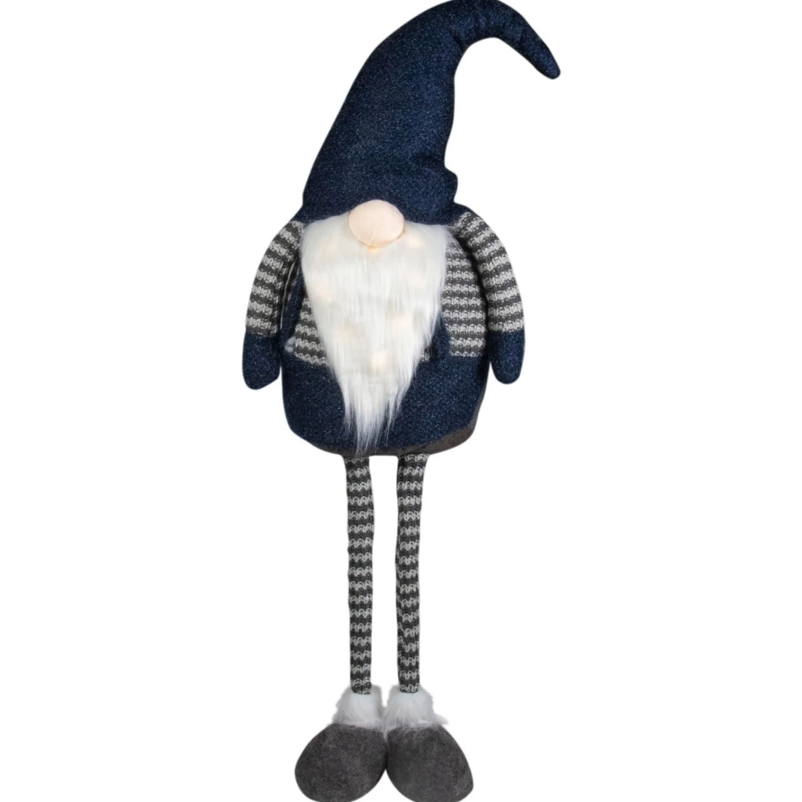 Add Some Mystical Enchantment To Your Holiday Decor With This Charming Santa Gnome. The Gnomes Beard Is Illuminated By Warm White Led Lights. He Comes Wearing A Plush Blue Pointed Hat And Has A Gray And White Knit Body And Extendable Legs. This Guy Will Catch The Attention Of Your Guests This Holiday Season. You Can Place Him On Your Mantel Hearth Or To Greet Your Guests At Your Entryway.