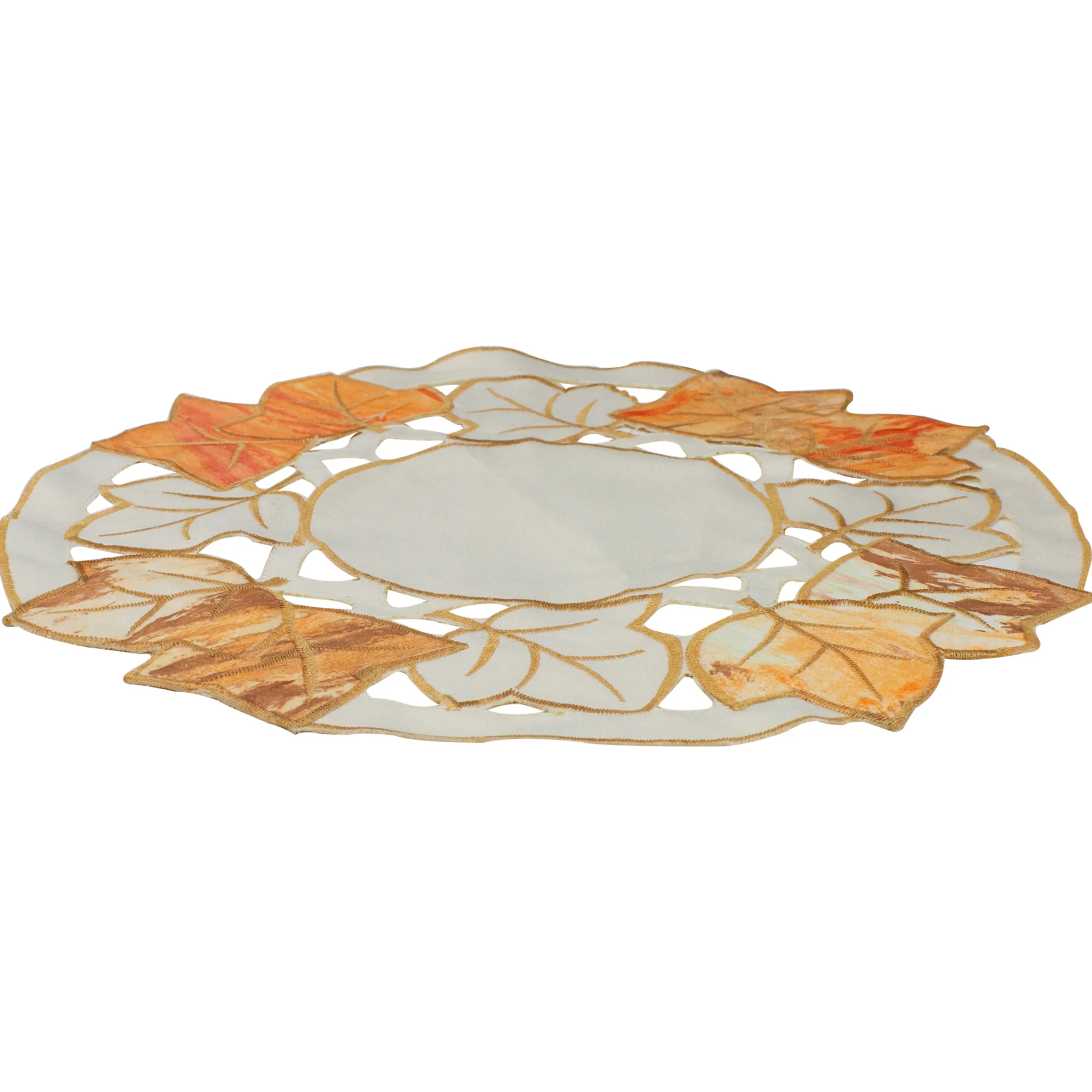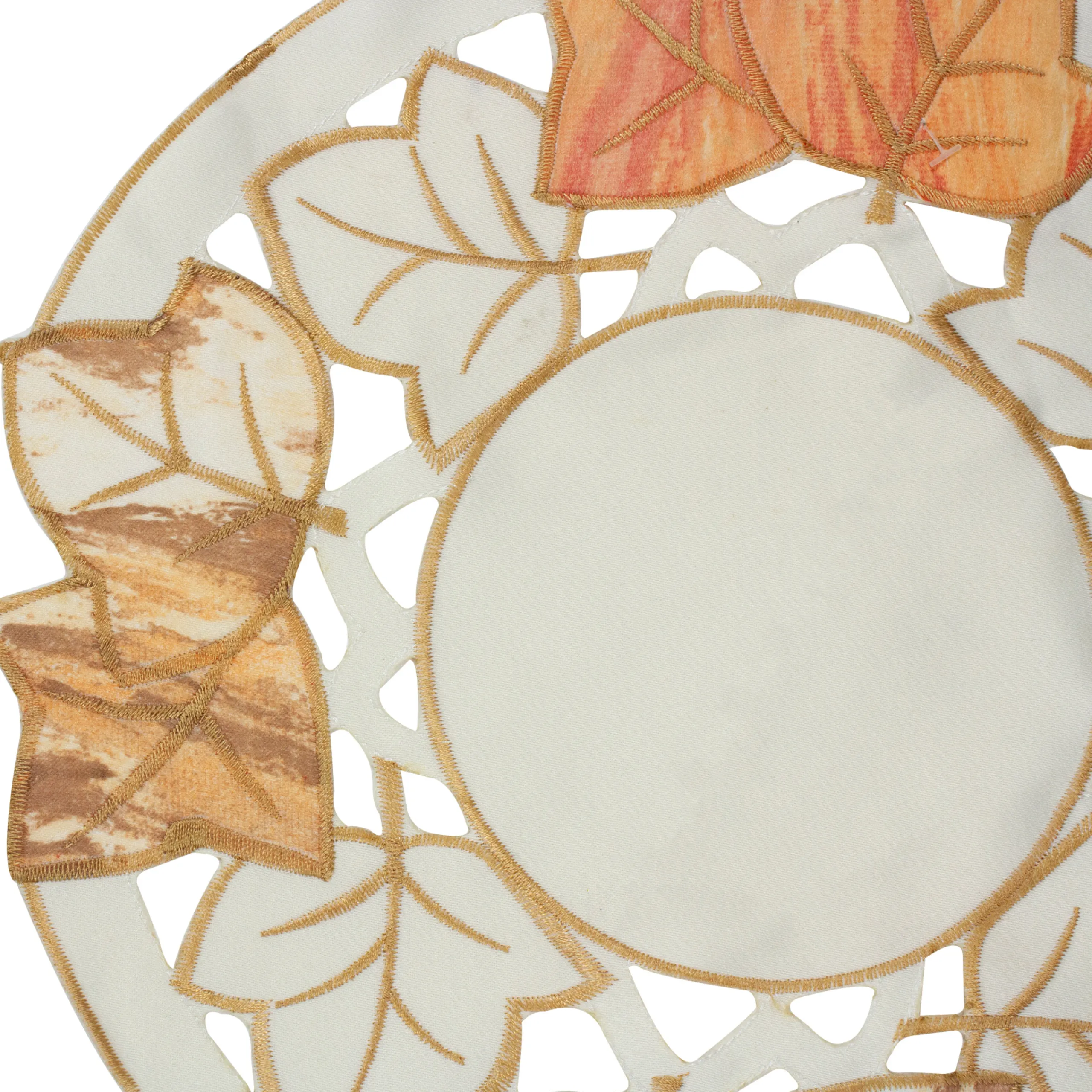 Heritage Lace 12″ White And Beige Embroidered Fall Leaf Thanksgiving Doily