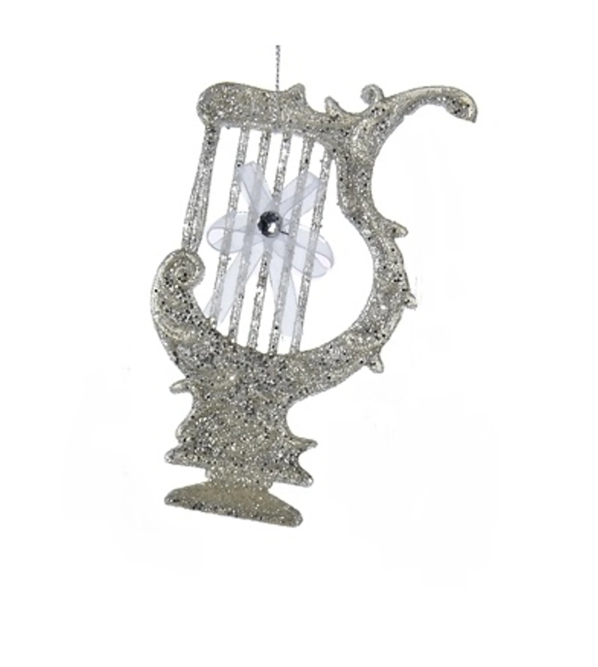KSA Entertainment>4.5″ Silver Glittered Harp With White Bow Musical Instrument Christmas Ornament