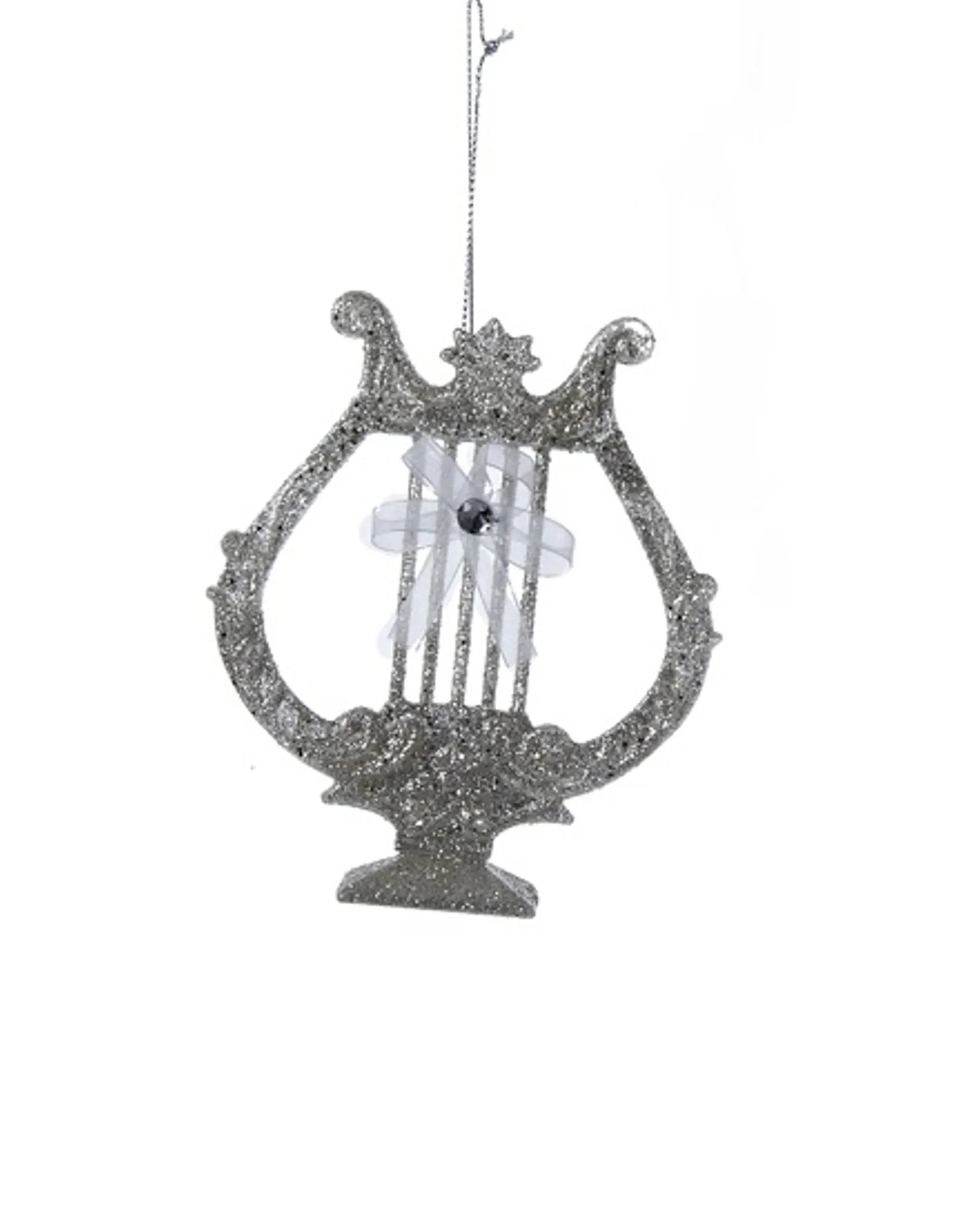 KSA Entertainment>5″ Silver Glittered Lyre Harp With White Bow Musical Instrument Christmas Ornament