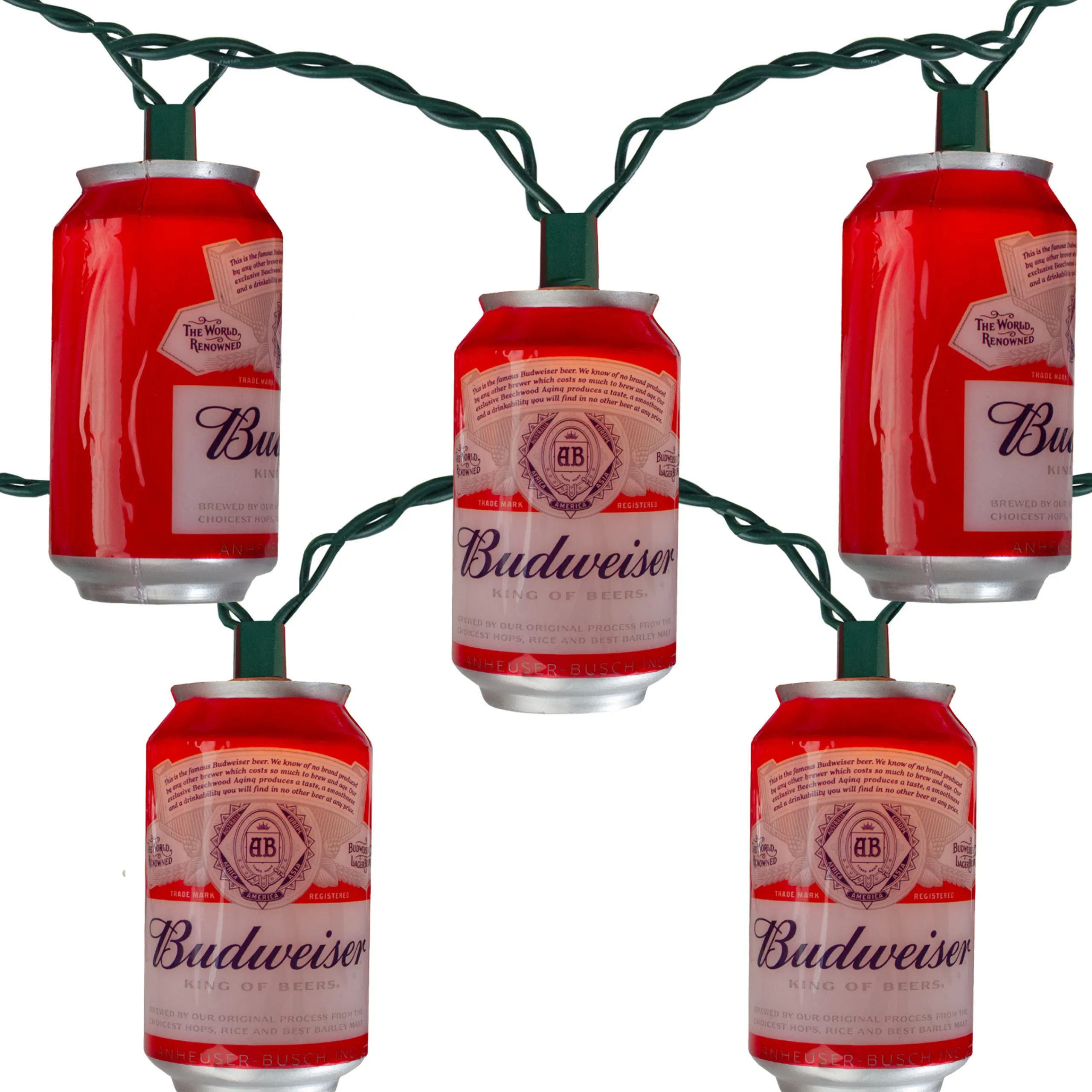 Kurt Adler 10 Red Anheuser-Busch Budweiser Can Patio Lights – 9 Ft Green Wire