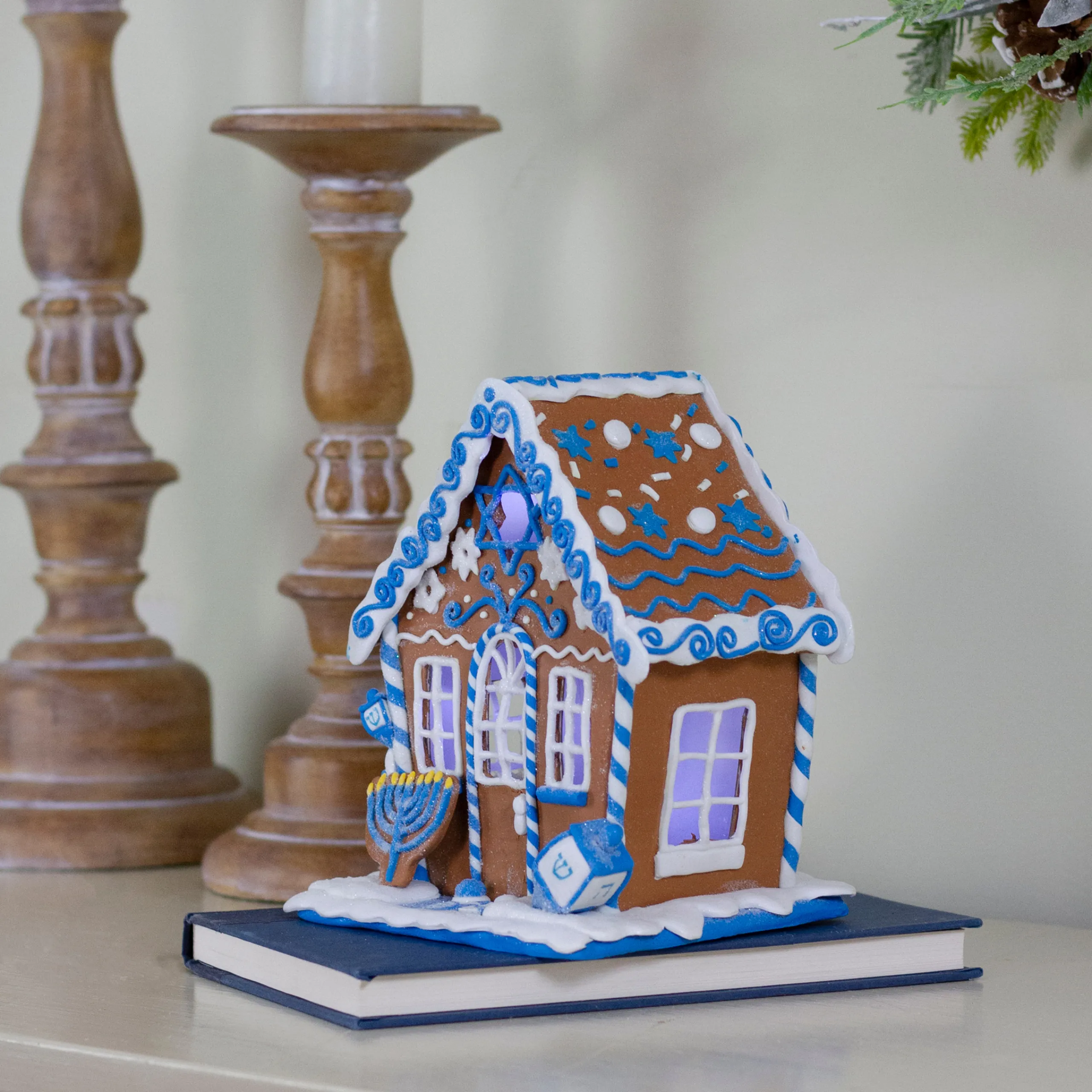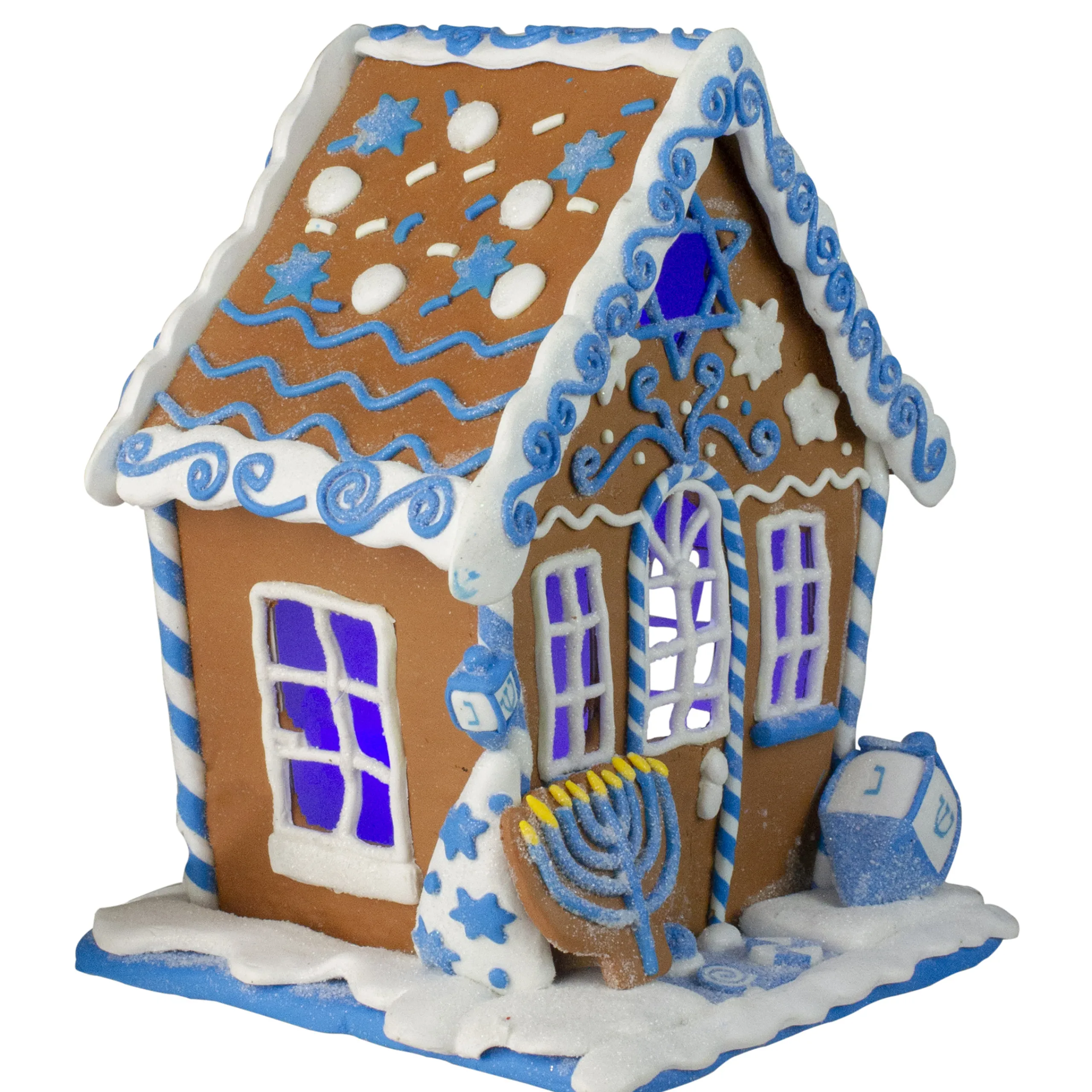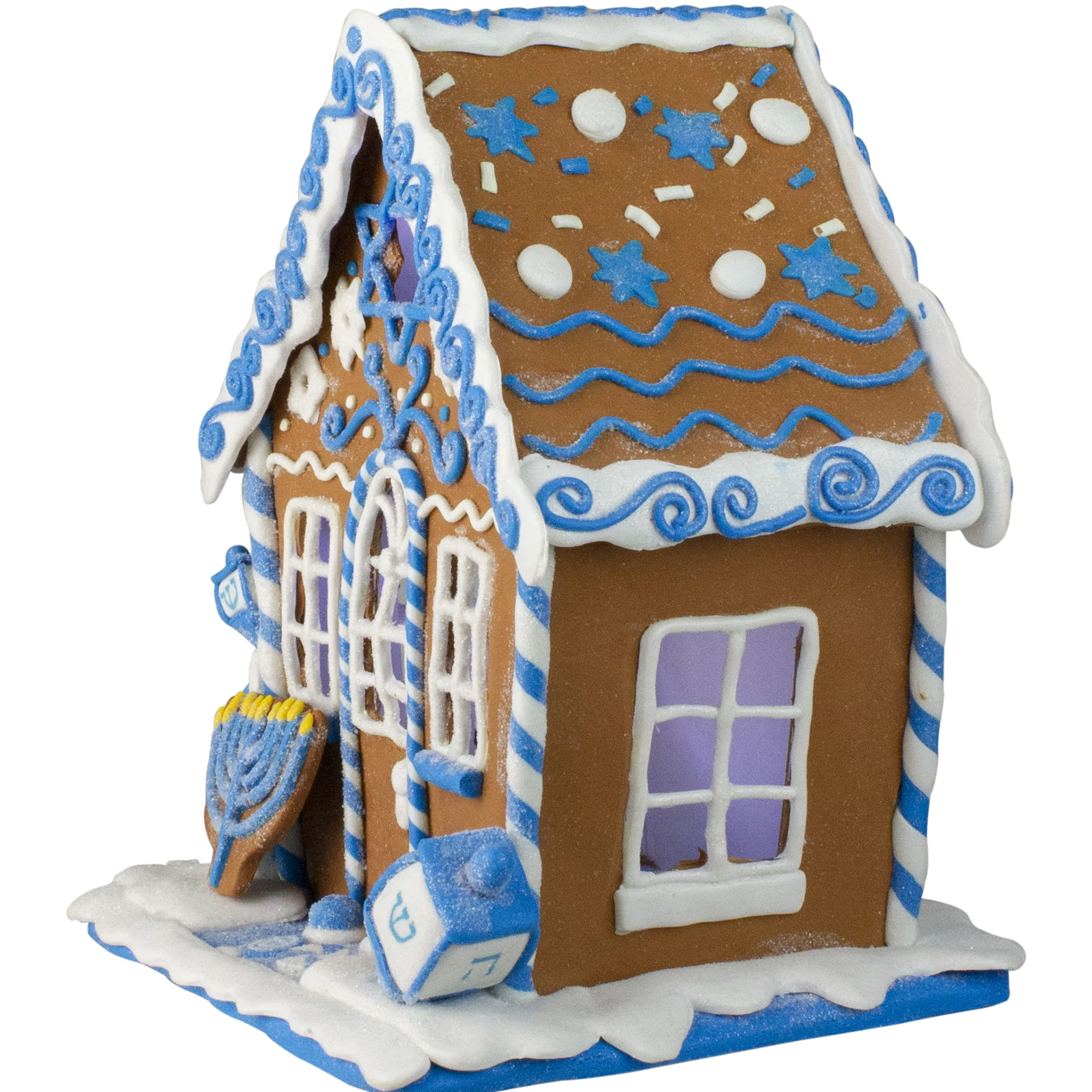 Kurt Adler 8″ White And Blue Festive Hanukkah Gingerbread Led House Tabletop Decor