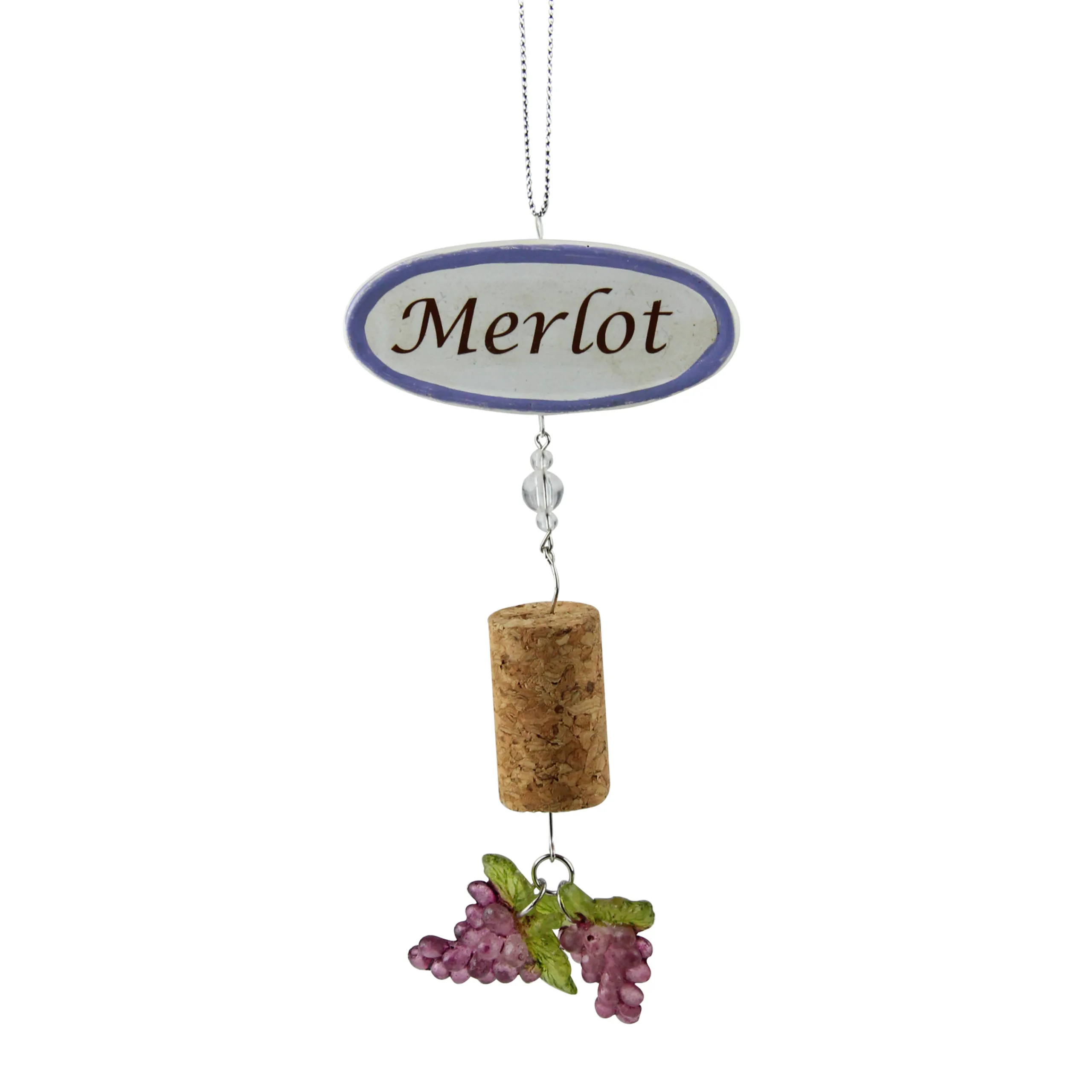 Pendant Ornament Features A Merlot Wine Sign With A Dangling Cork And Grape Cluster Accent