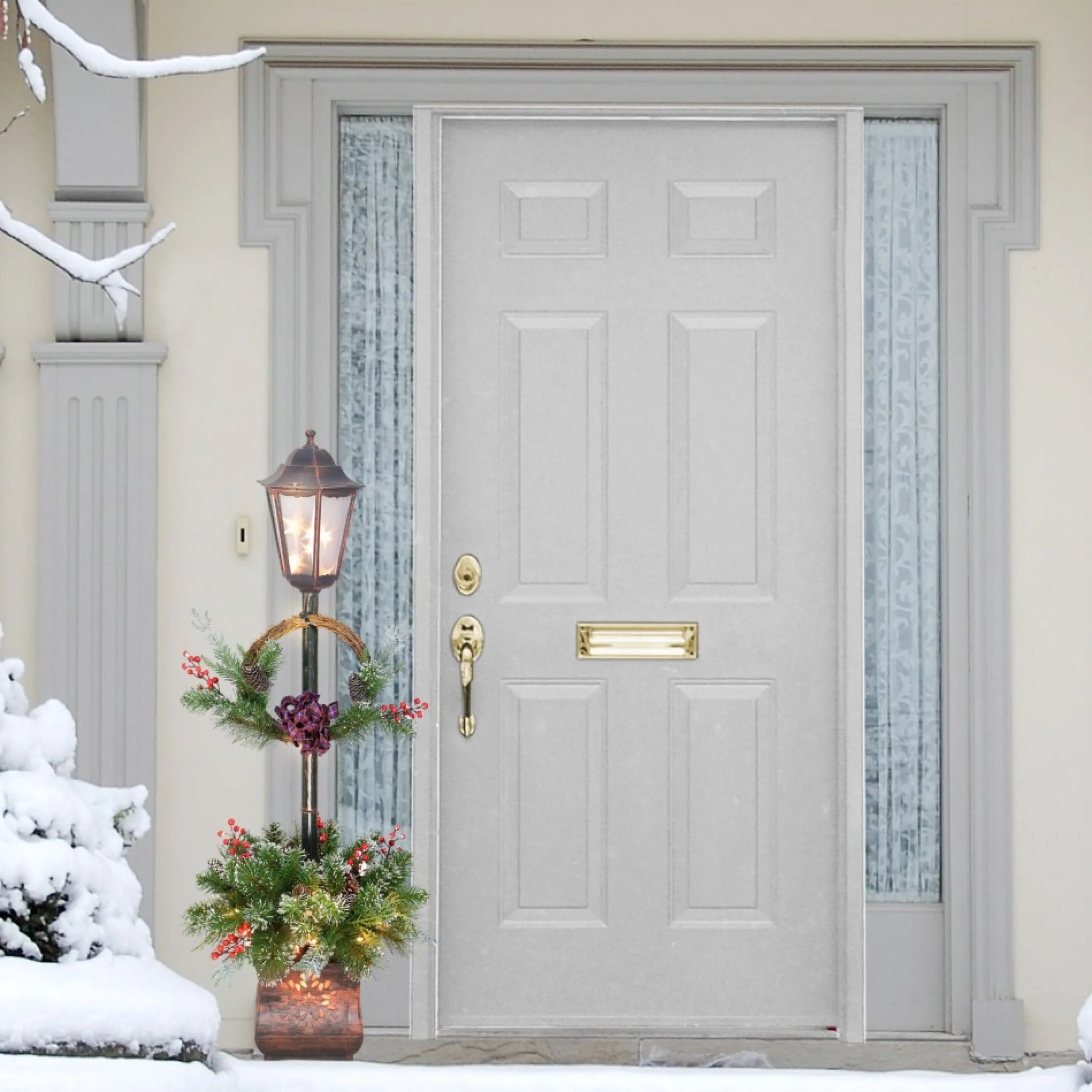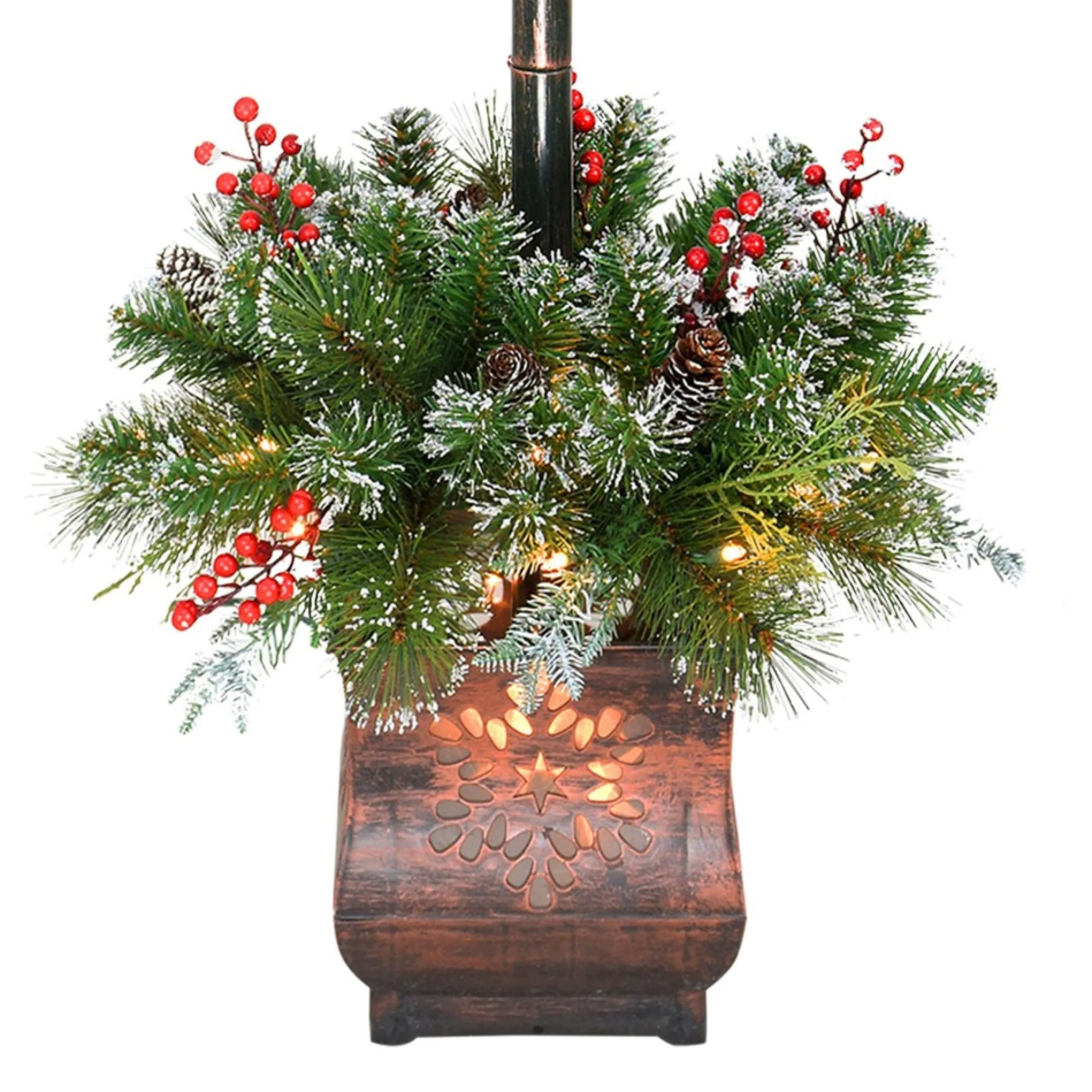 Lights*CC Christmas Decor 4′ Green And Black Pre-Lit Christmas Lamp Post, Clear Lights