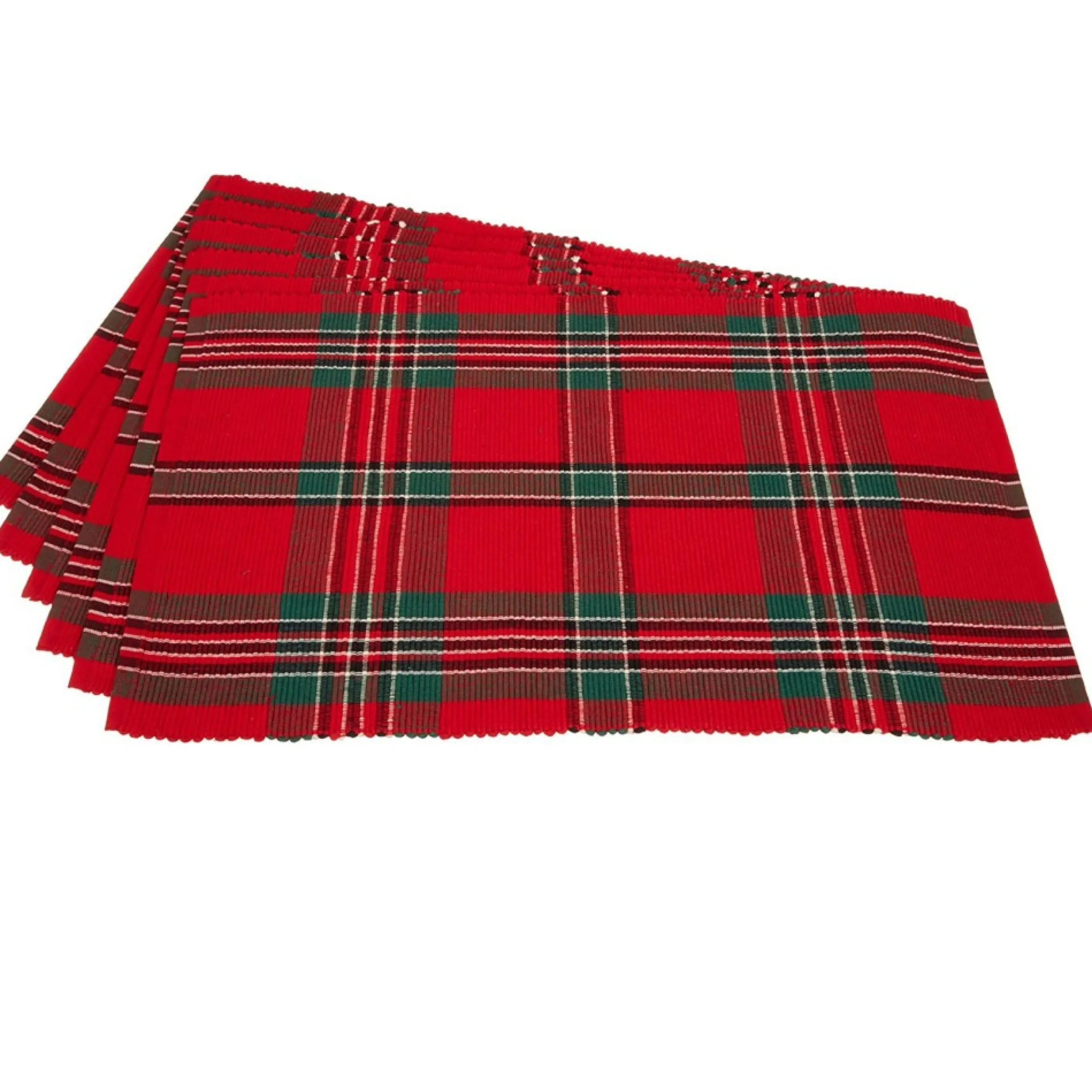 Linens*CC Home Furnishings Set Of 6 Red, Green, And White Plaid Holiday Place Mat 19″