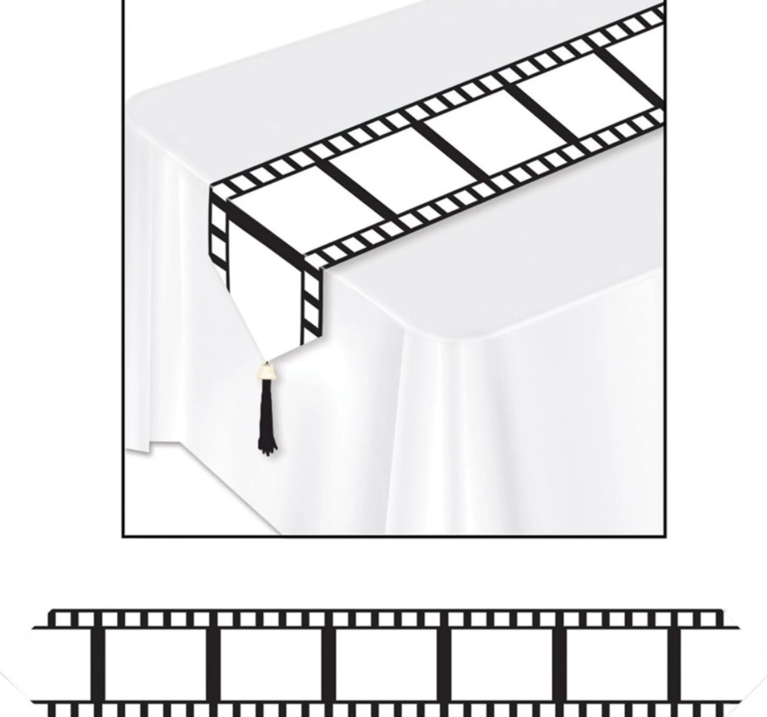 Features White And Black Filmstrip Table Runner