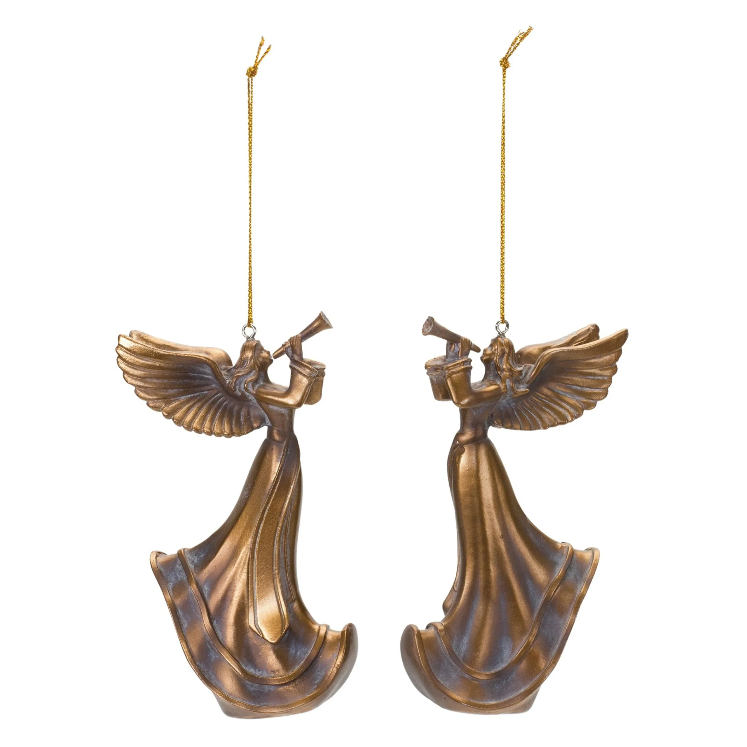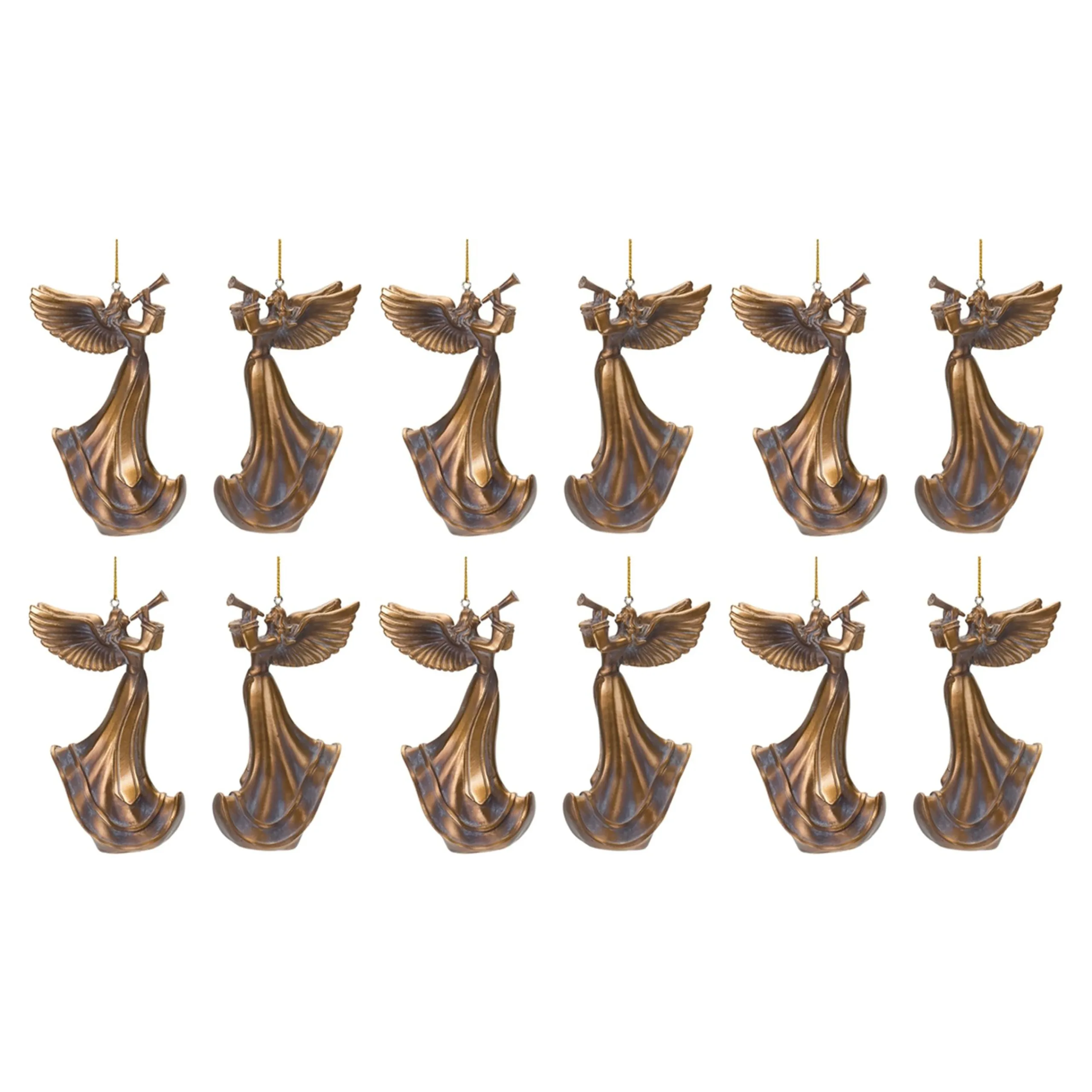 Elevate Your Holiday Decor With These Angel Ornaments. Embodying A Touch Of Religious Elegance, These Are Adorned With Chic Bronze Tones And Showcase Traditional Angels Playing Trumpets. The Distressed Finish Accents Add A Touch Of Vintage Charm To These Graceful Ornaments. Illuminate Your Home With The Timeless Allure Of Trumpet Angel Ornaments!