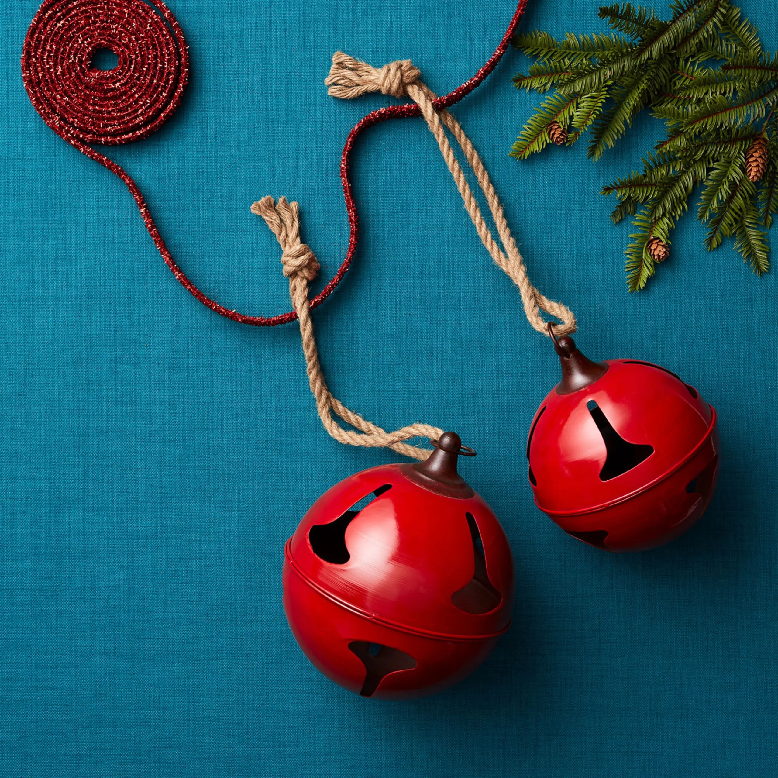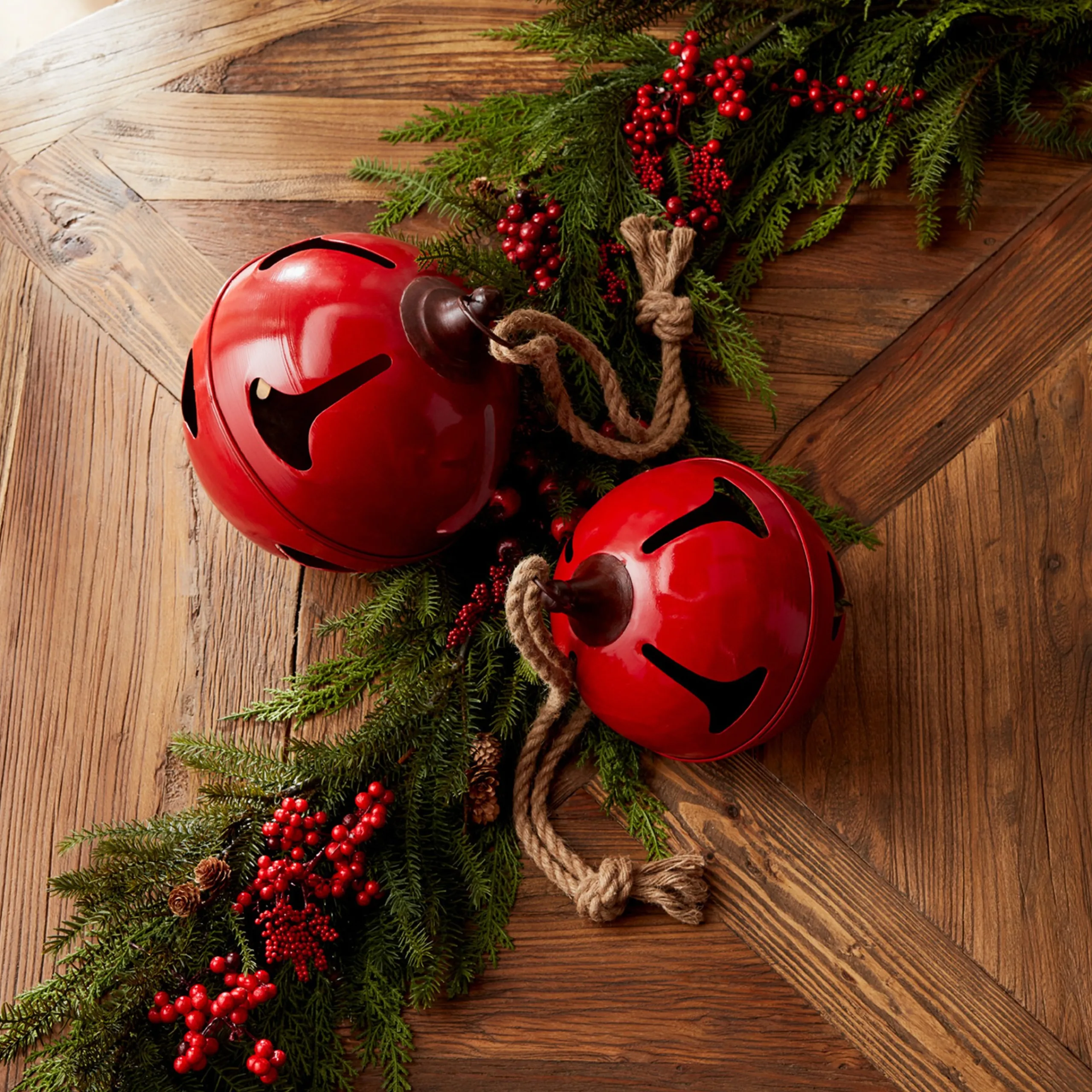 Melrose Bells & Jingle Buddies>Set Of 2 Red And Beige Sleigh Bell Christmas Ornaments 29″
