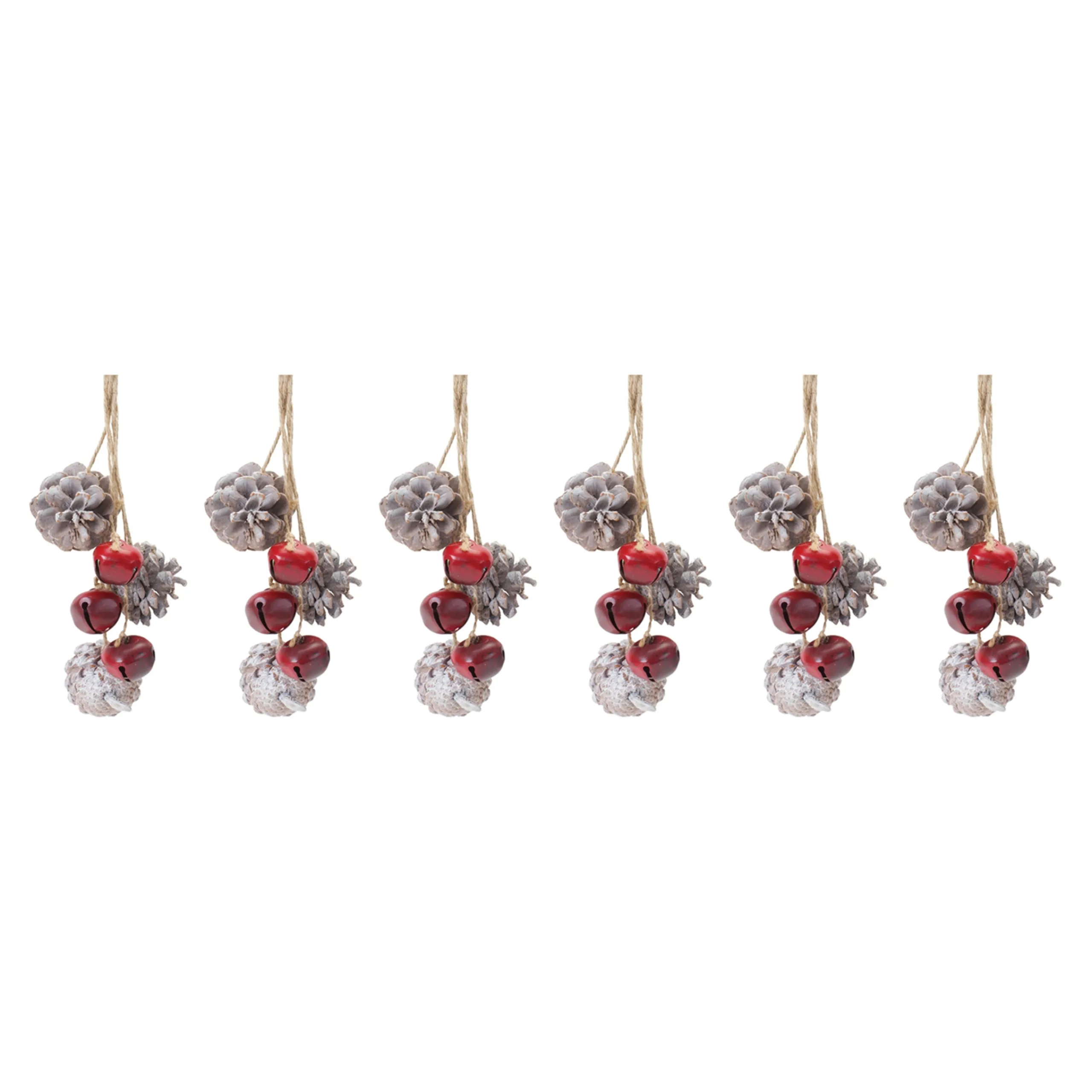 Melrose Bells & Jingle Buddies>Set Of 6 Red Bell And Pine Cone Christmas Ornaments 15″