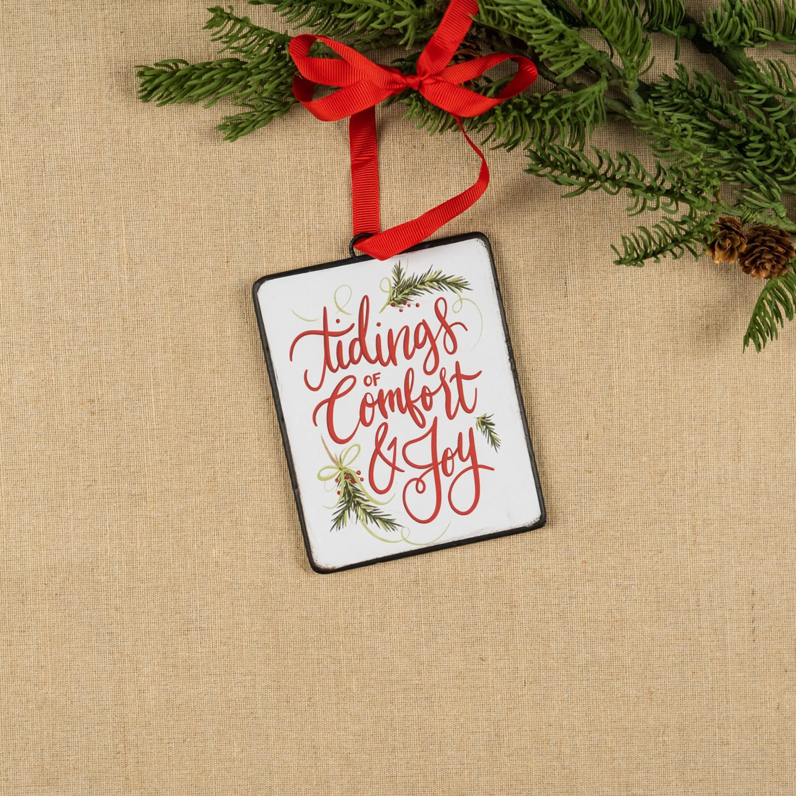 Ornament Reads “Joy To The World” And “Tidings Of Comfort And Joy”