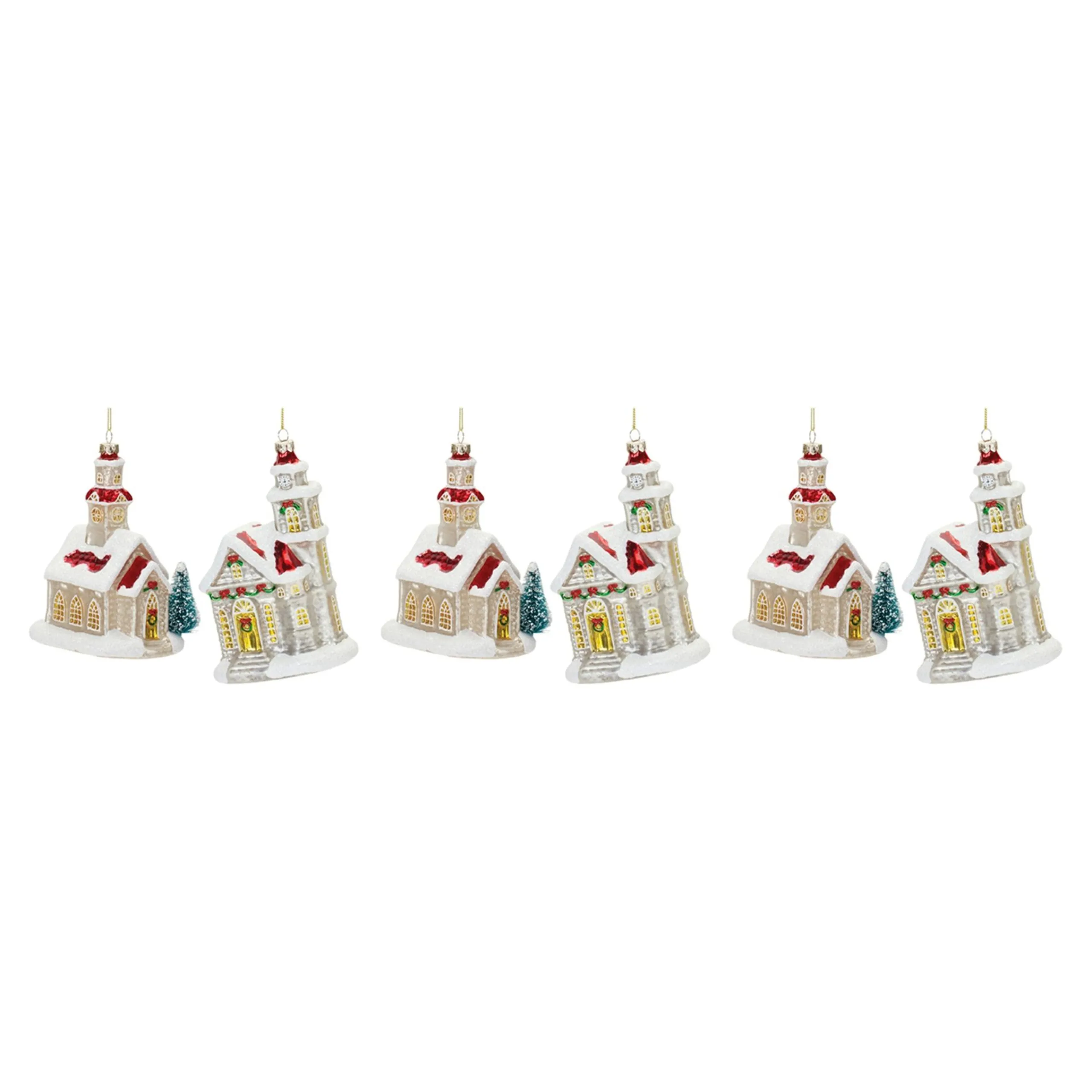 Melrose Nativity & Religious>Set Of 6 Glittered Glass Church Christmas Ornaments 6.25″