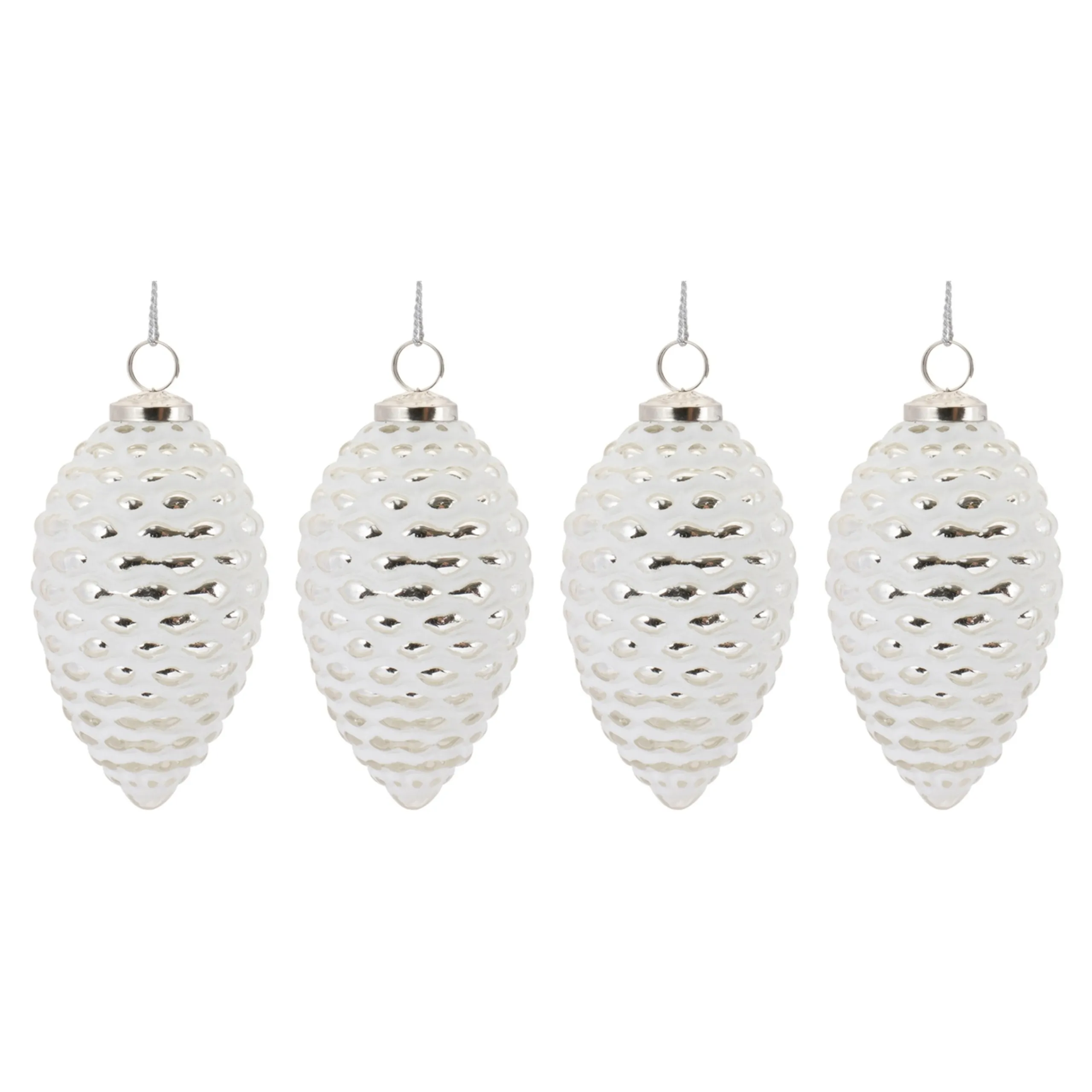 Elevate Your Christmas Tree And Holiday Decor With This Exquisite Set Of Frosted Glass Pinecone Ornaments. Their Wintry And Chic Tones, Combined With The Frosted Design, Create A Captivating Display. The Delicate Silver String Hanger Ensures Their Enduring Beauty For Seasons To Come. Whether Adorning Your Home Or Given As A Cherished Gift, These 4 Pieces Are Guaranteed To Bring Smiles And Add A Touch Of Elegance To Your Festive Ambiance.