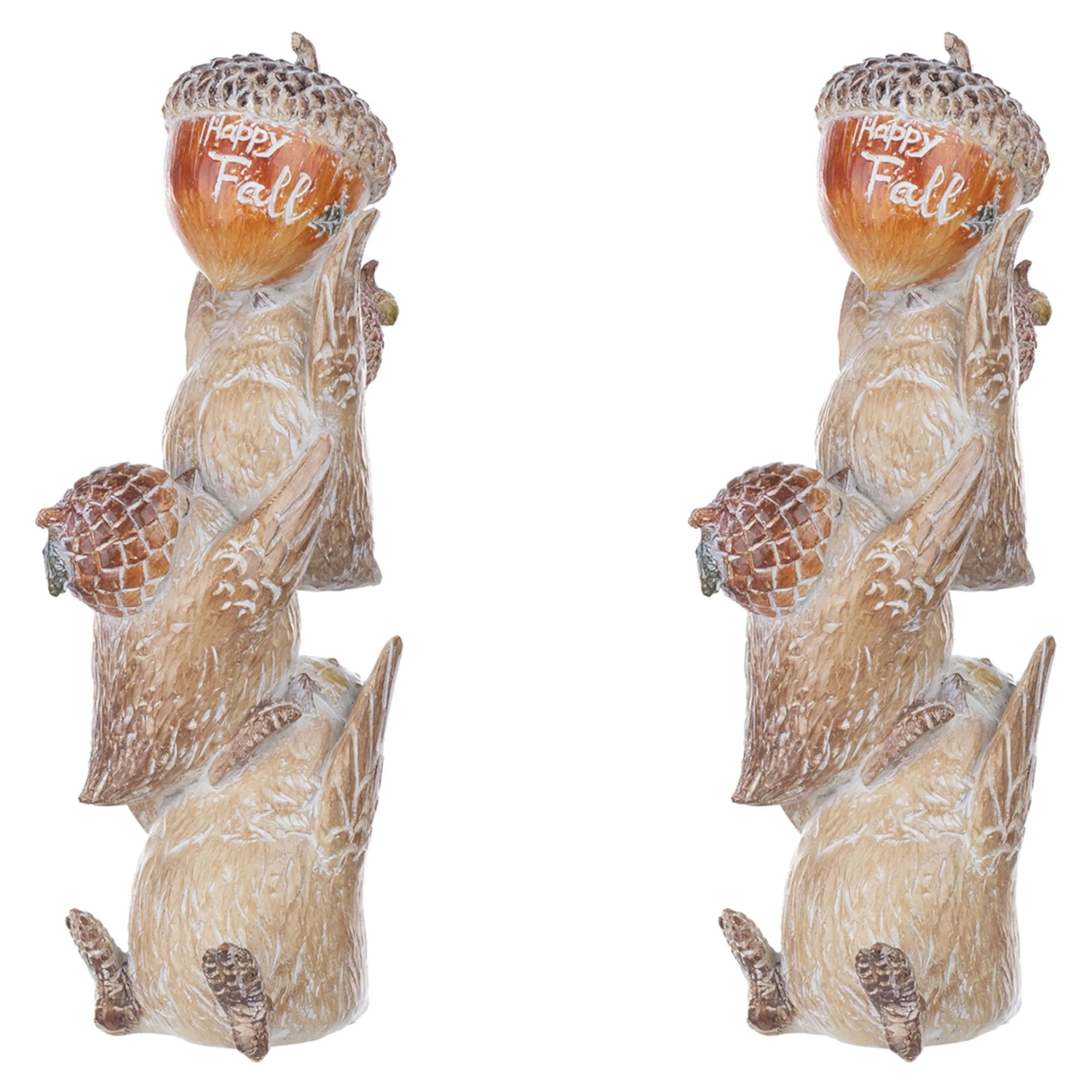 Melrose Set Of 2 Stacking Bird “Happy Fall” Tabletop Figurines 9″