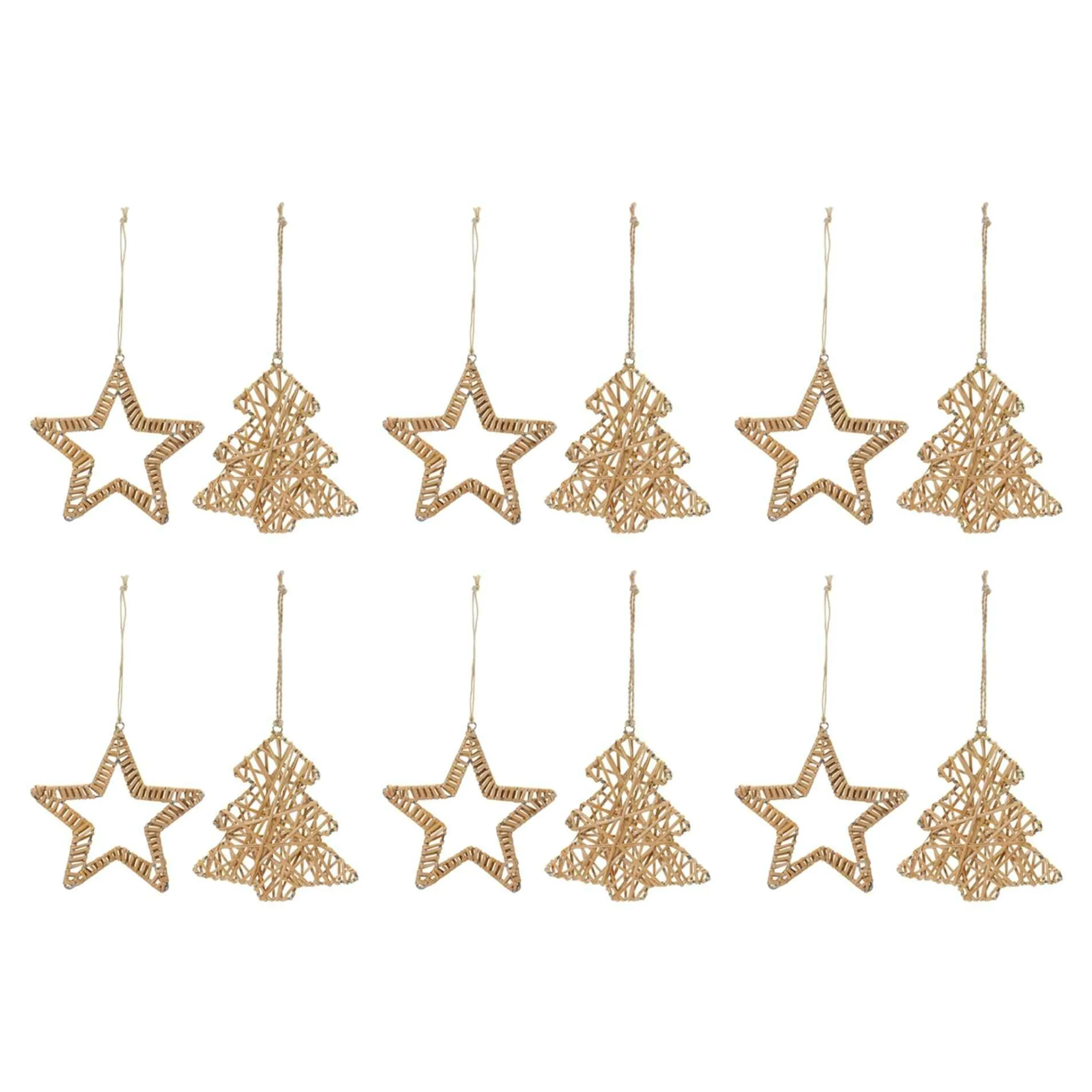 Melrose Stars>Club Pack Of 12 Brown Woven Rattan Star And Tree Christmas Ornaments 6″