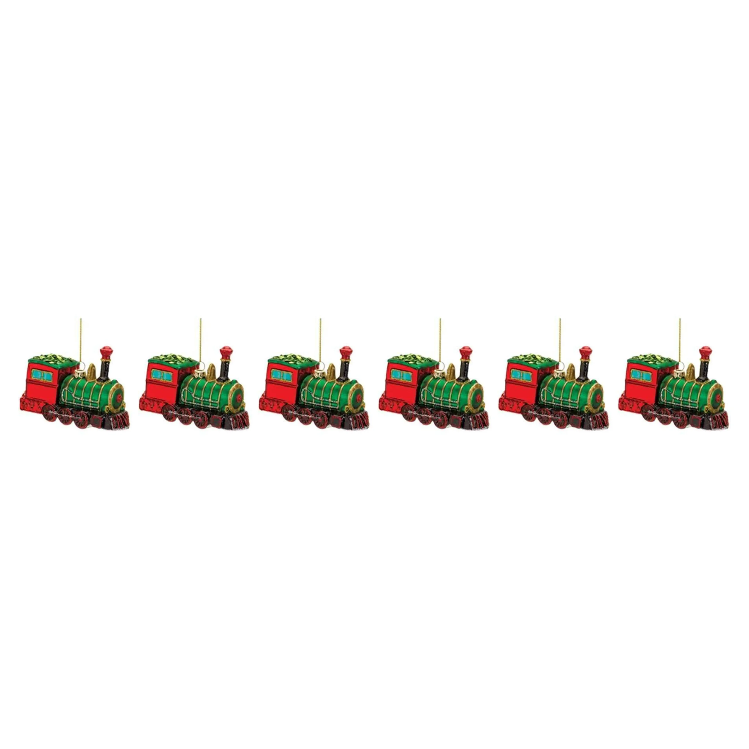 Melrose Transportation>Set Of 6 Green And Red Glittered Glass Train Christmas Ornaments 4.25″